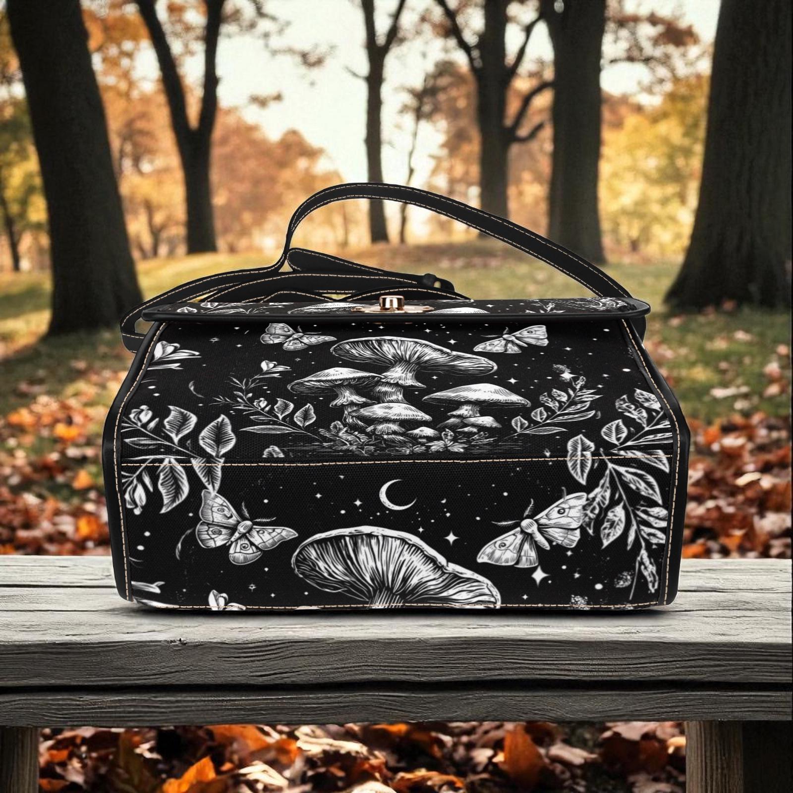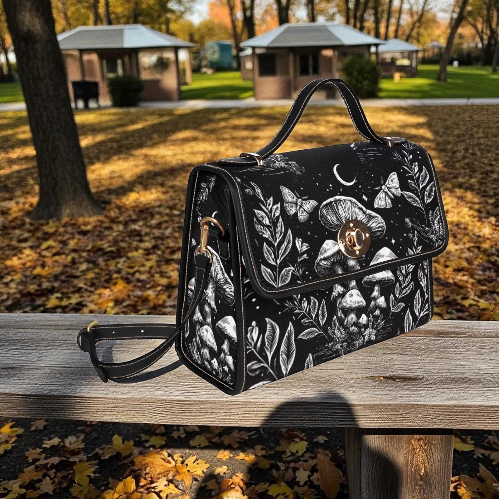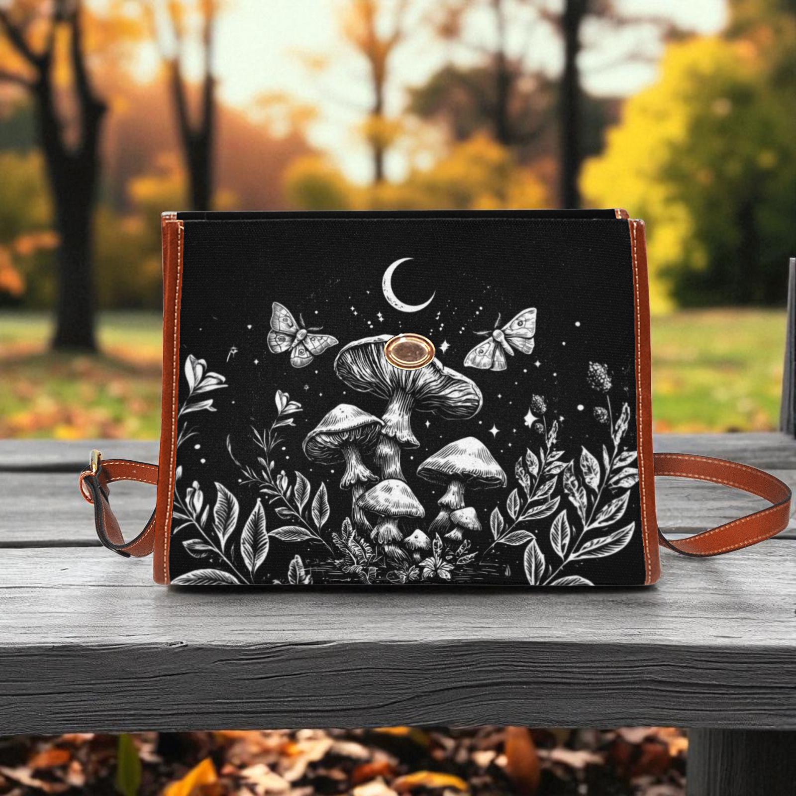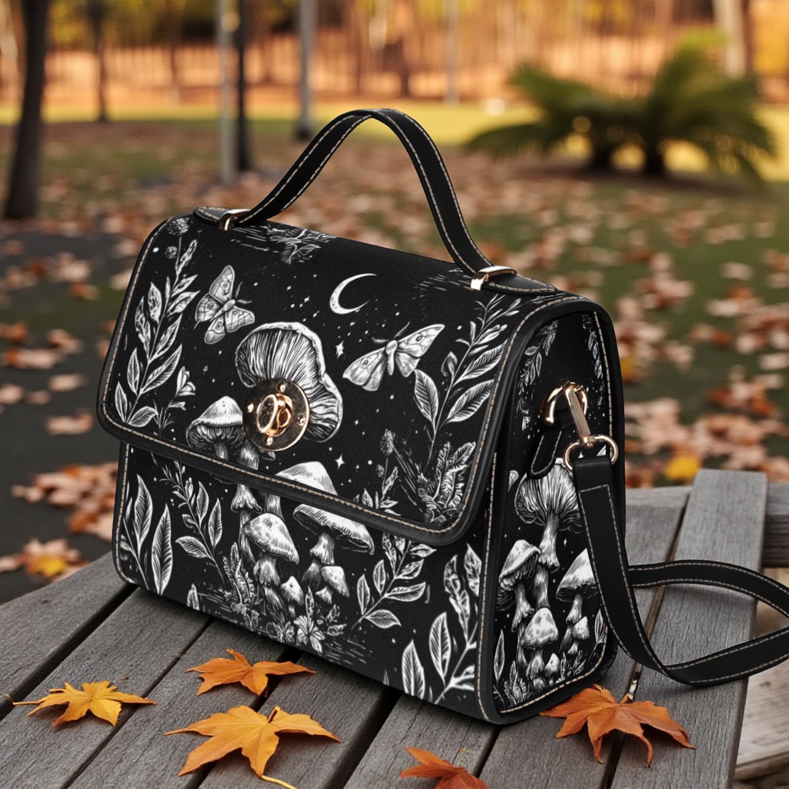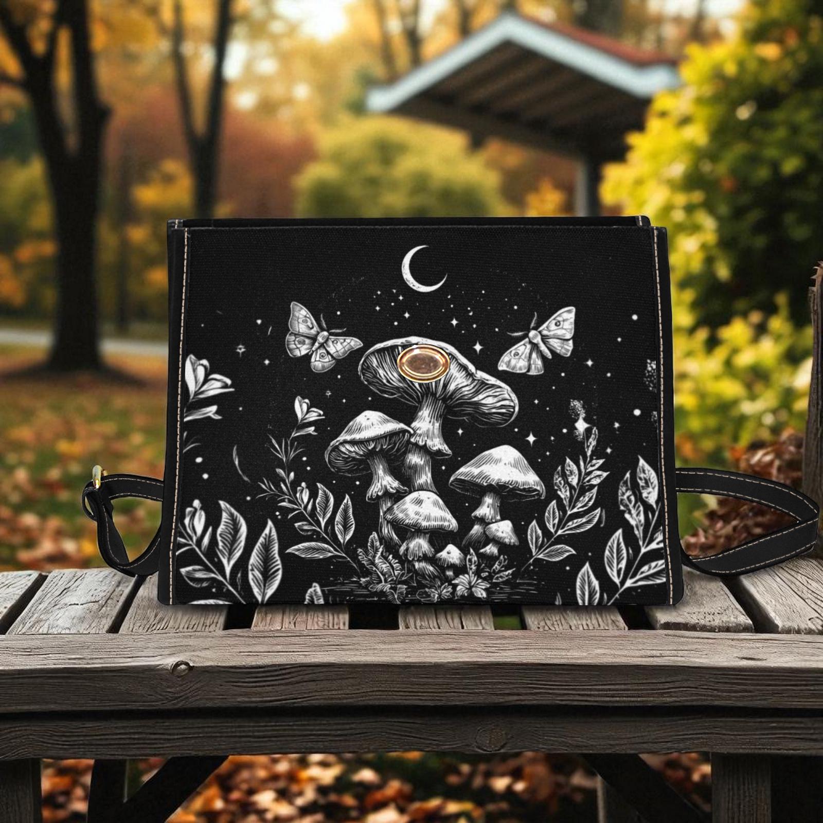 Crescent Moon Ferns Mushroom Cross Body Purse, Witch Canvas Satchel bag, Cute womens Shoulder Bag hand bag boho gift Cottagecore mushroom bag
