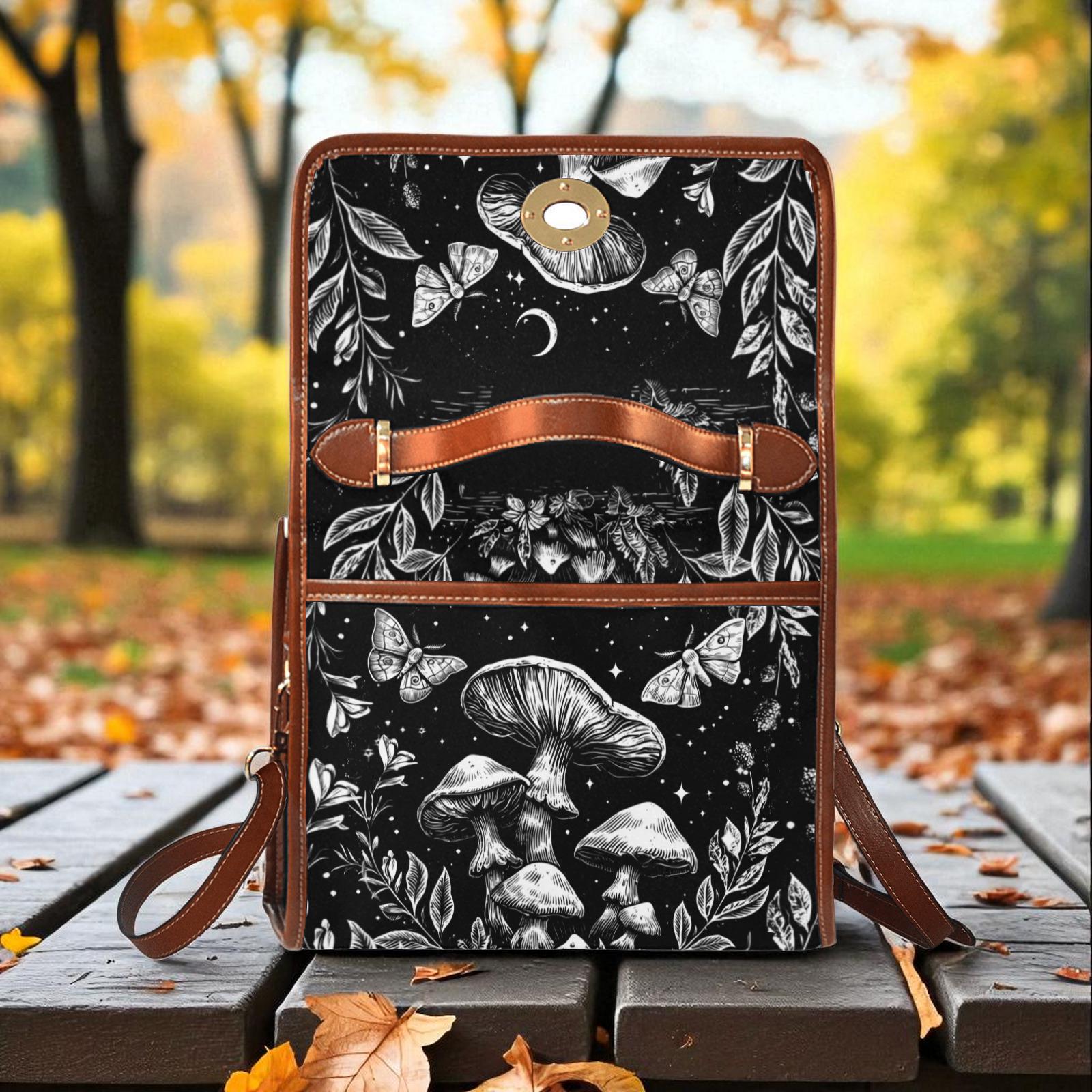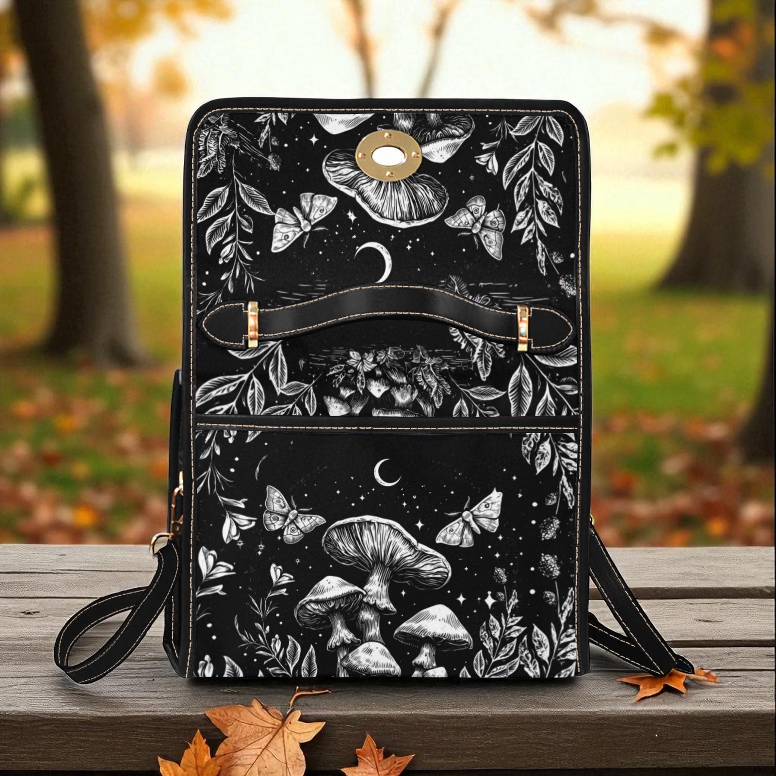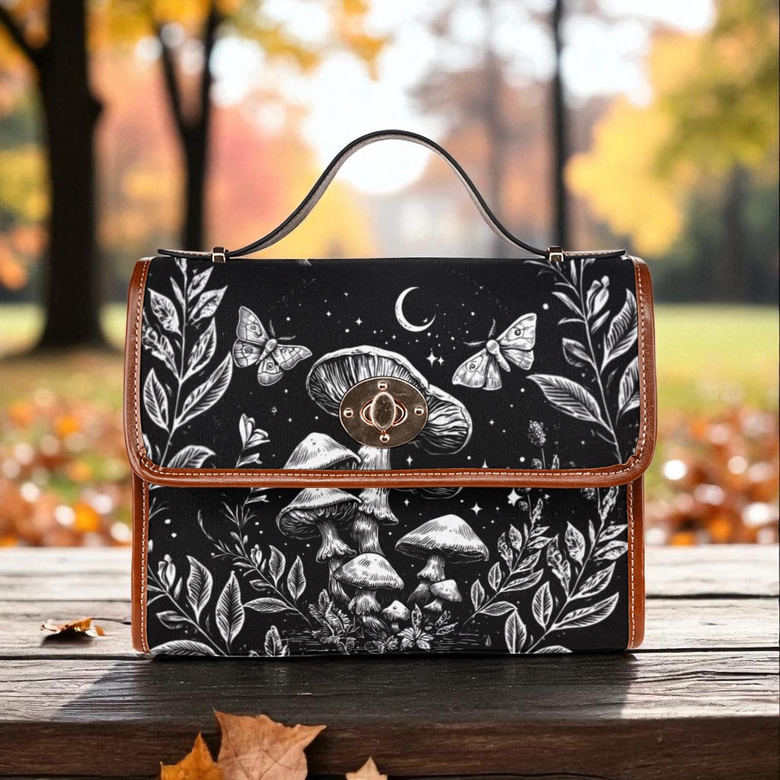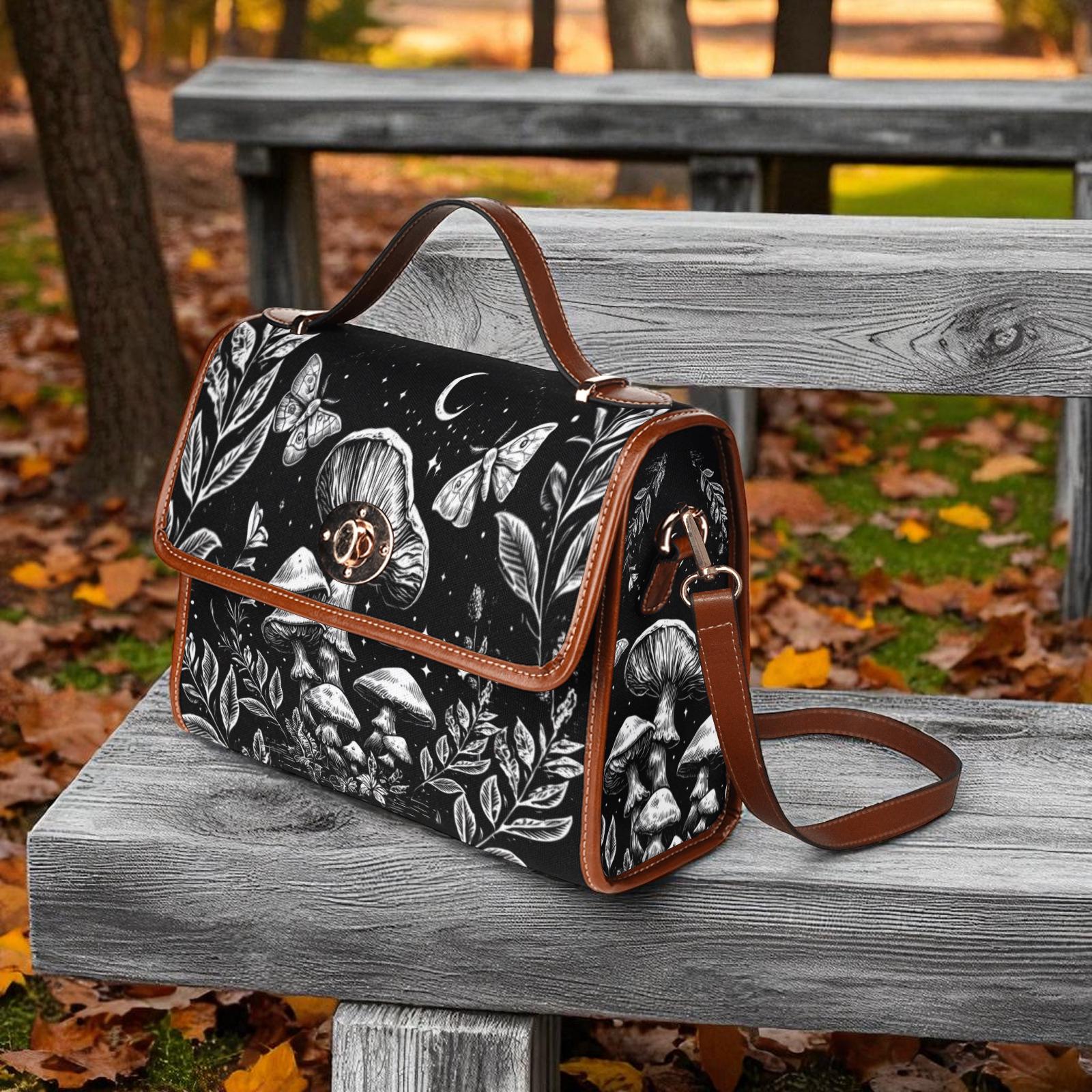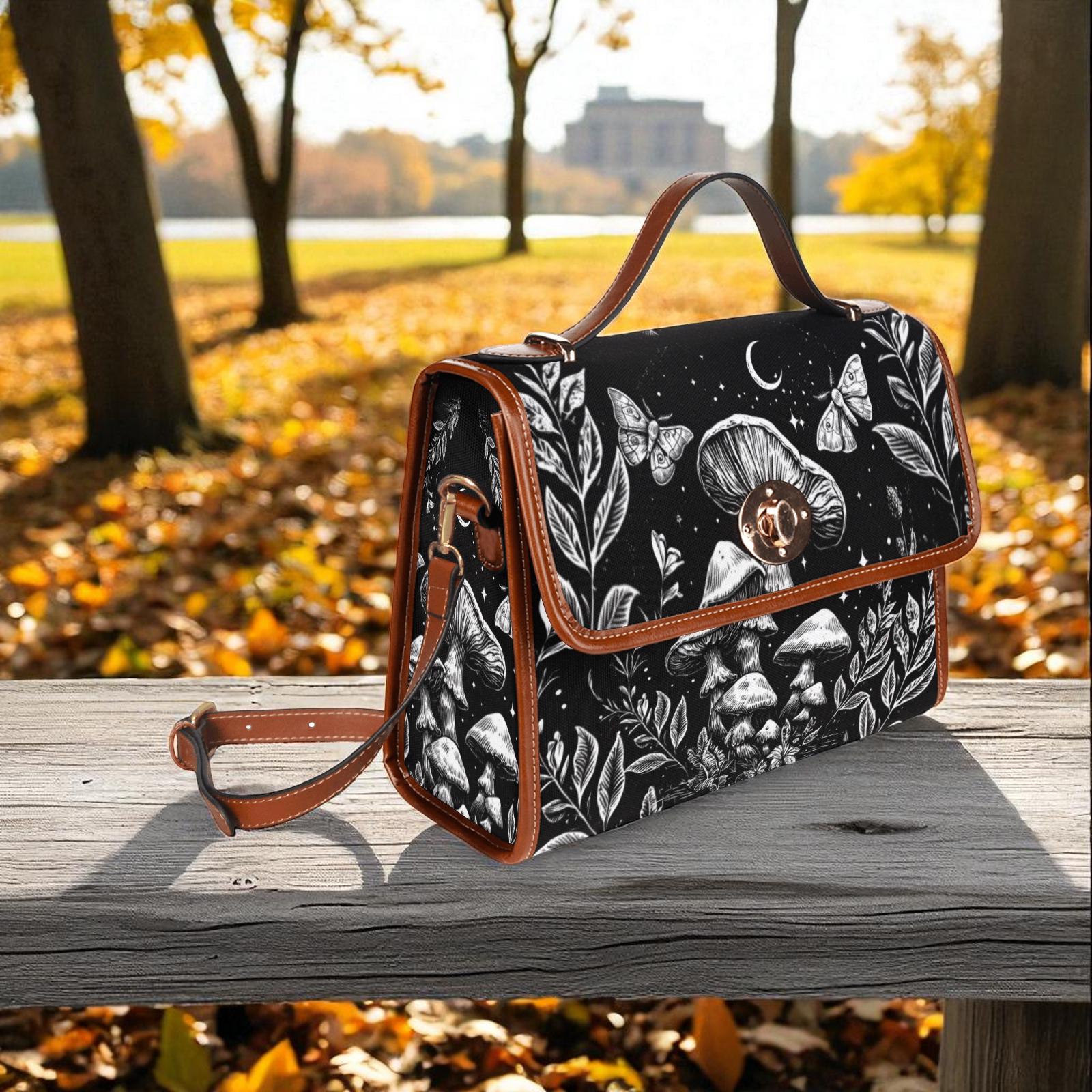 Crescent Moon Ferns Mushroom Cross Body Purse, Witch Canvas Satchel bag, Cute womens Shoulder Bag hand bag boho gift Cottagecore mushroom bag