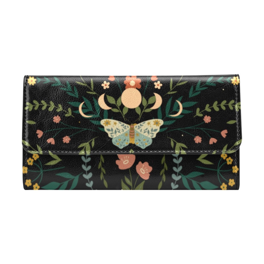 Cottagecore Floral Moon Phases Trifold wallet, Nature Purse Vegan PU Leather wallet, kawaii witch Boho women Wallet, cute Long wallet purse