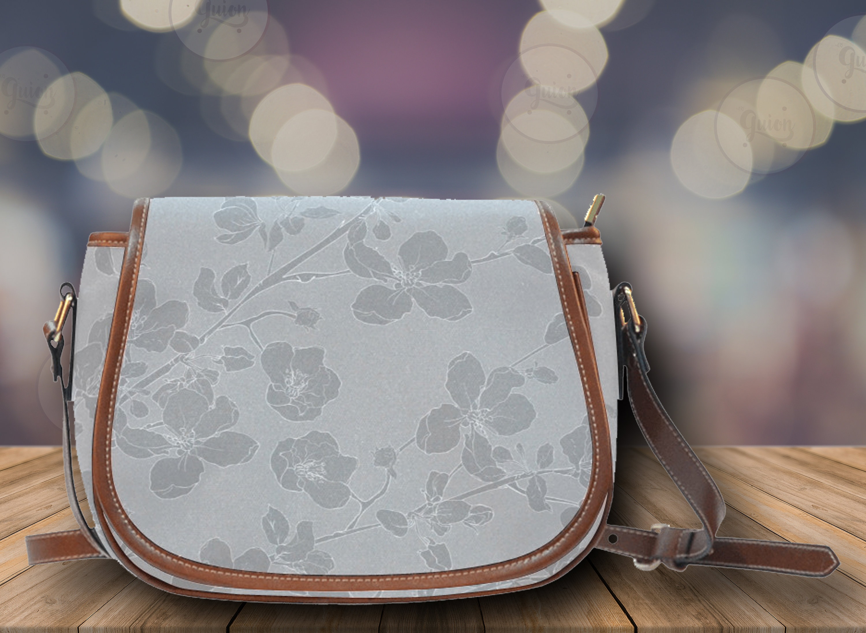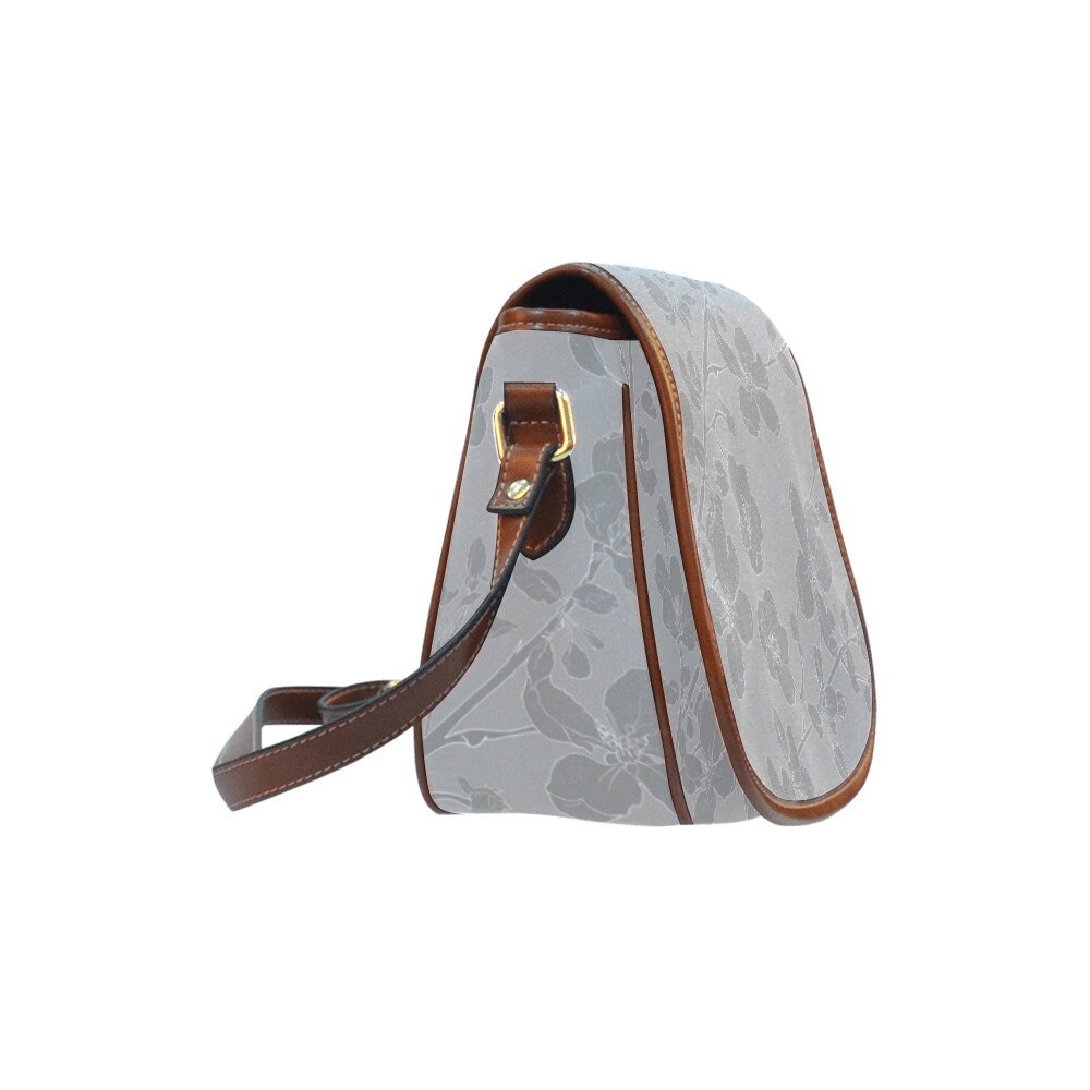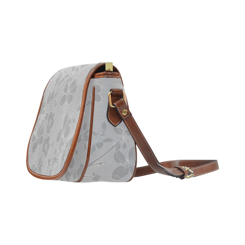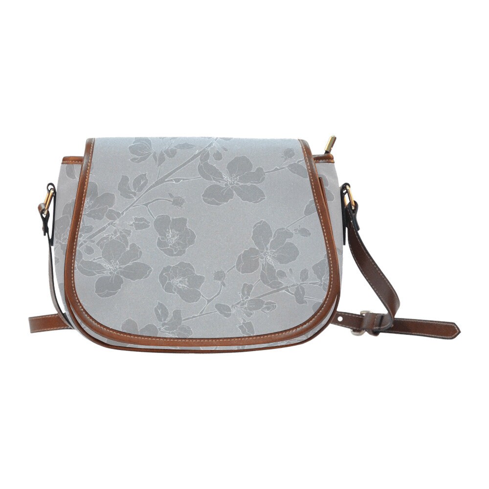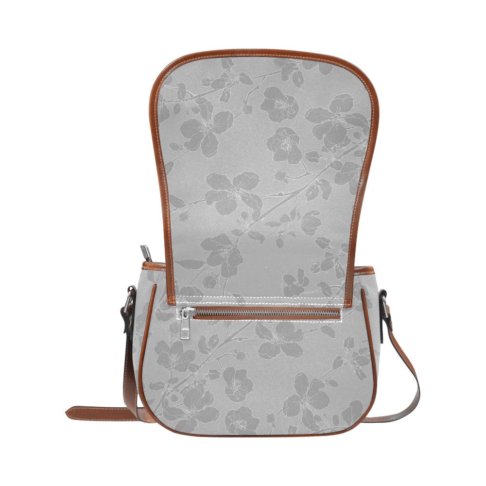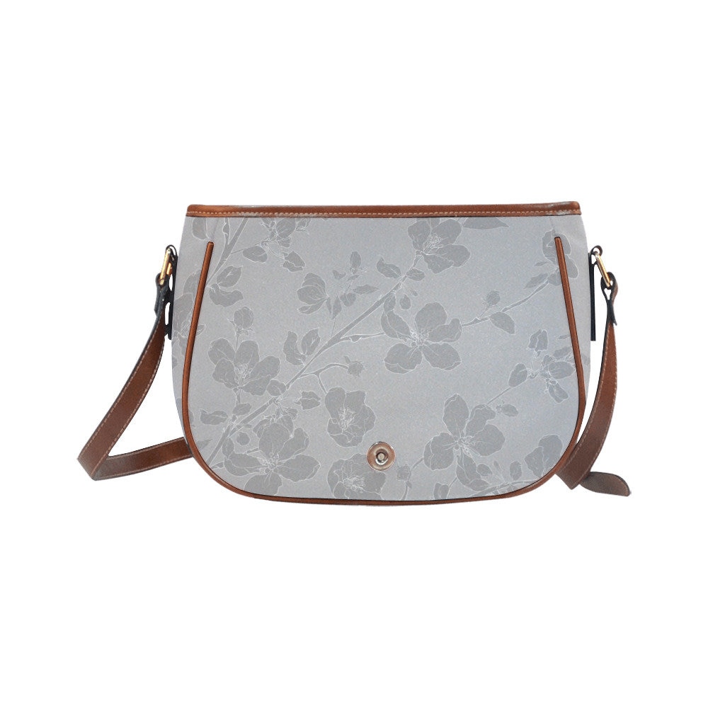 Cottagecore Gray Boho floral Vegan leather saddle bag, gray floral Cottagecore crossed body purse women, boho floral bag, hippies boho gift