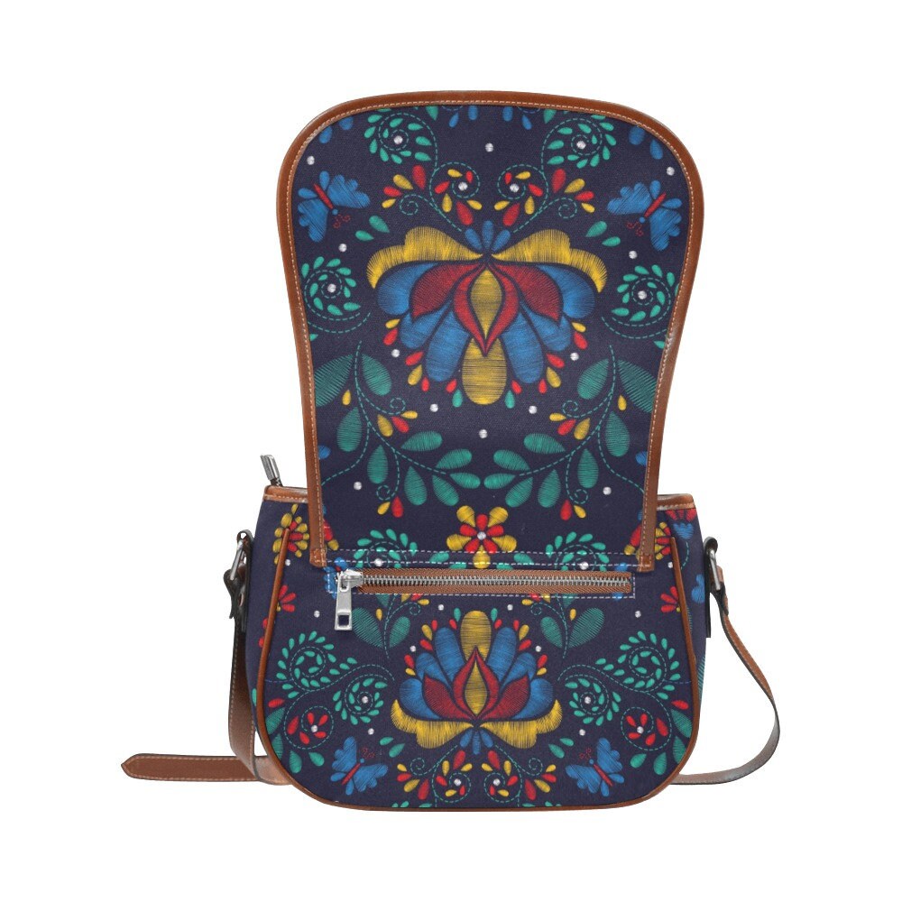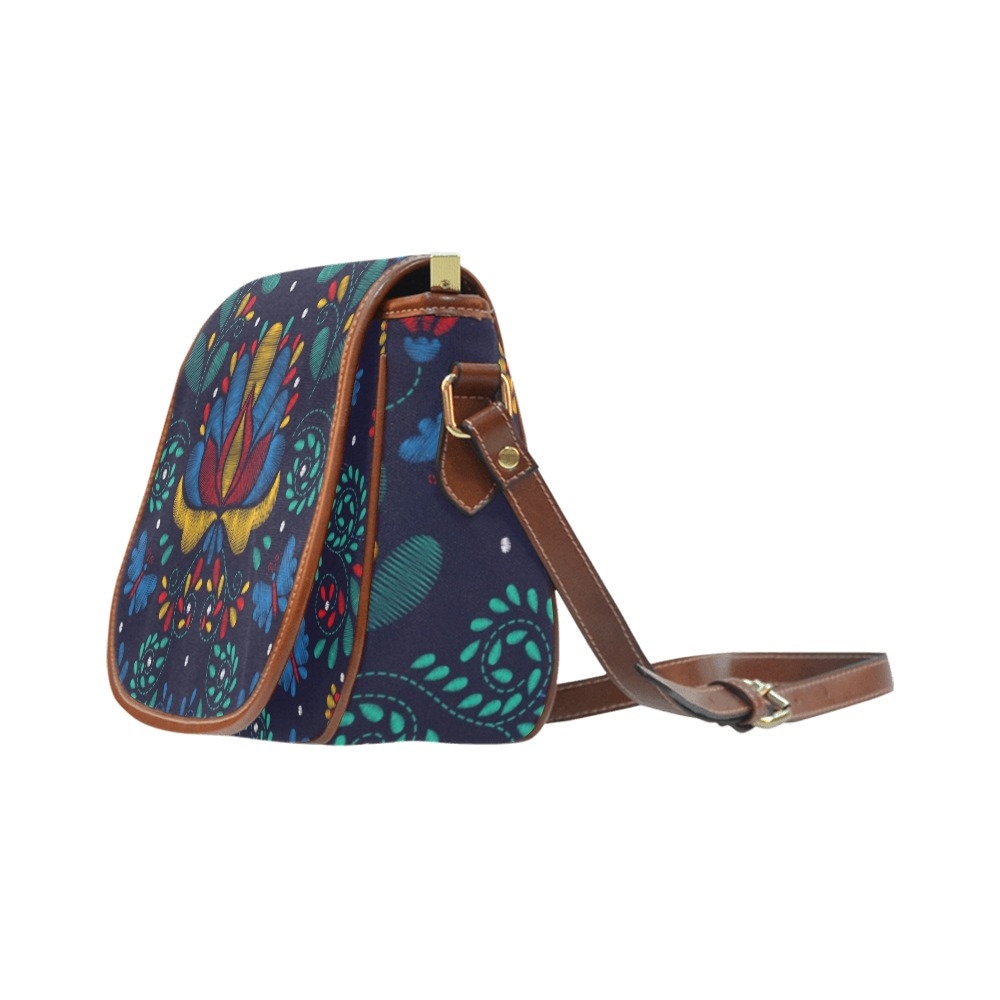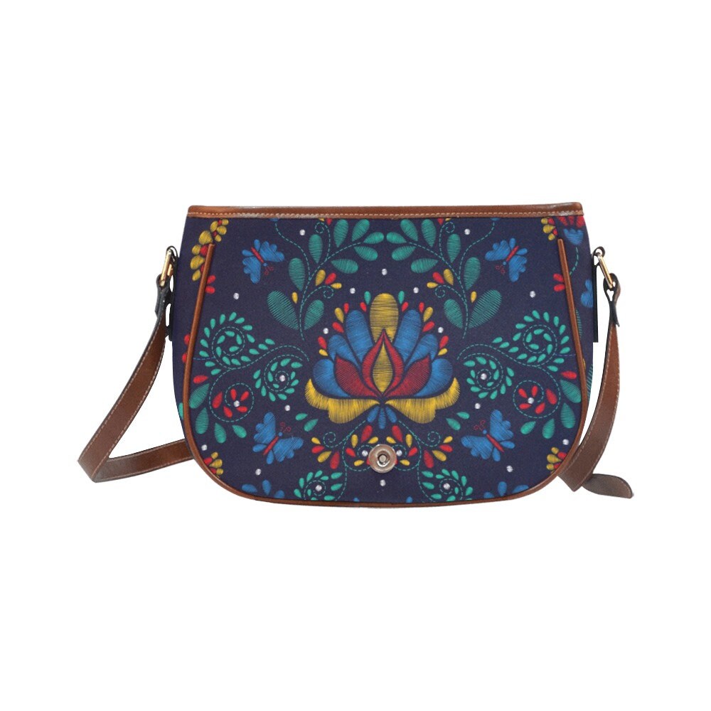 Cottagecore Blue Floral Vegan leather saddle bag, Cute handbag, Cute crossed body purse women, gift for mom, Cottagecore hippies boho gift
