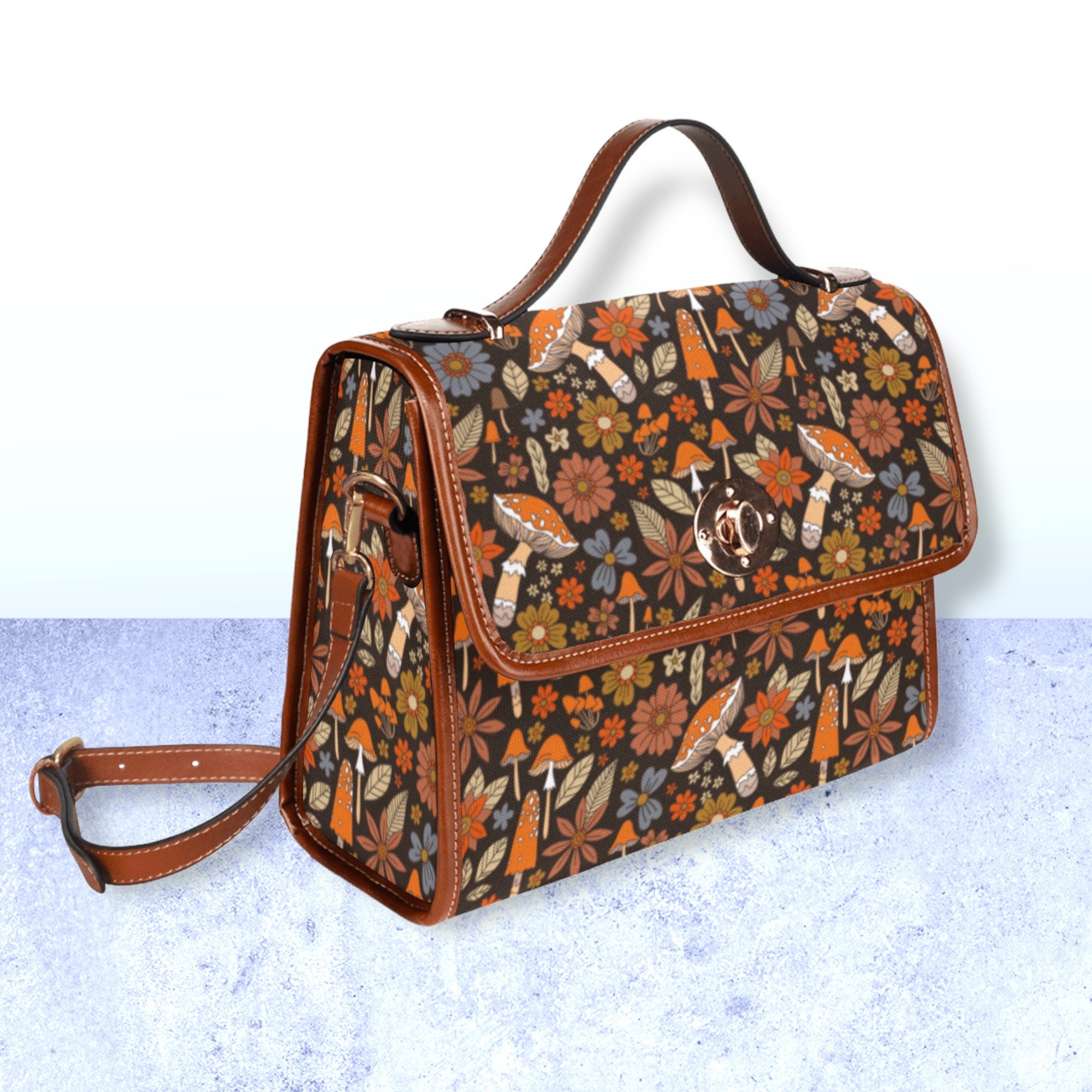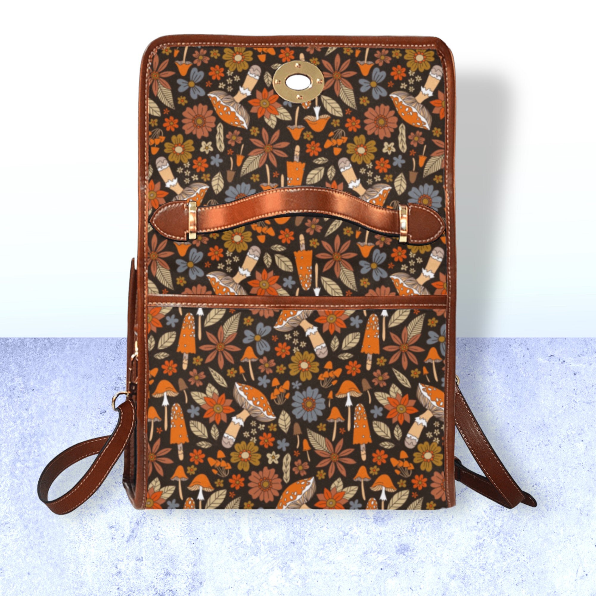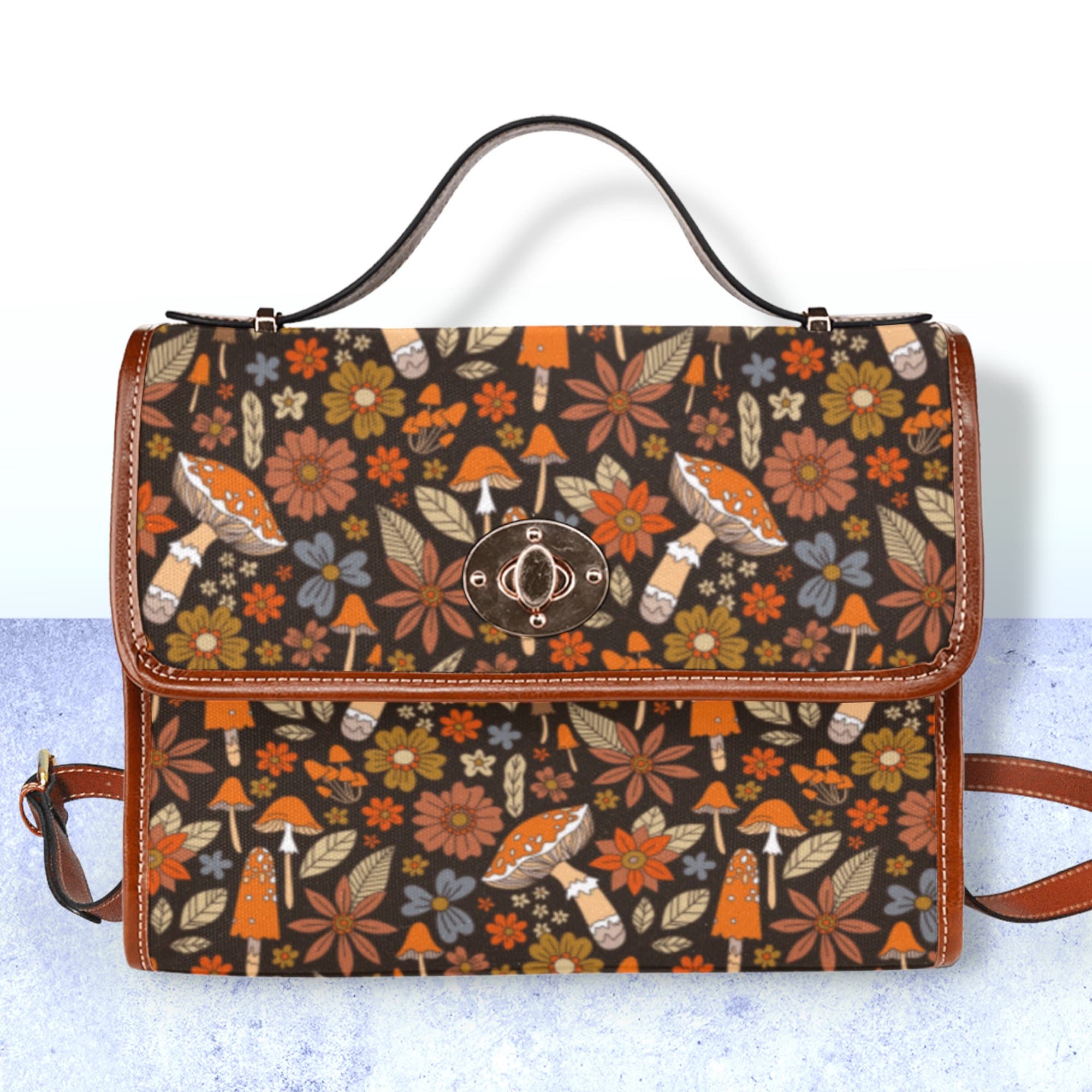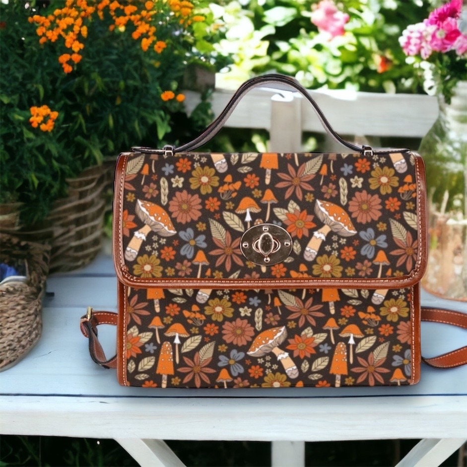 Cottagecore Hippies Daisy floral Canvas Satchel bag, Cute women boho crossed body purse, cute vegan leather strap hand bag, hippies boho gift