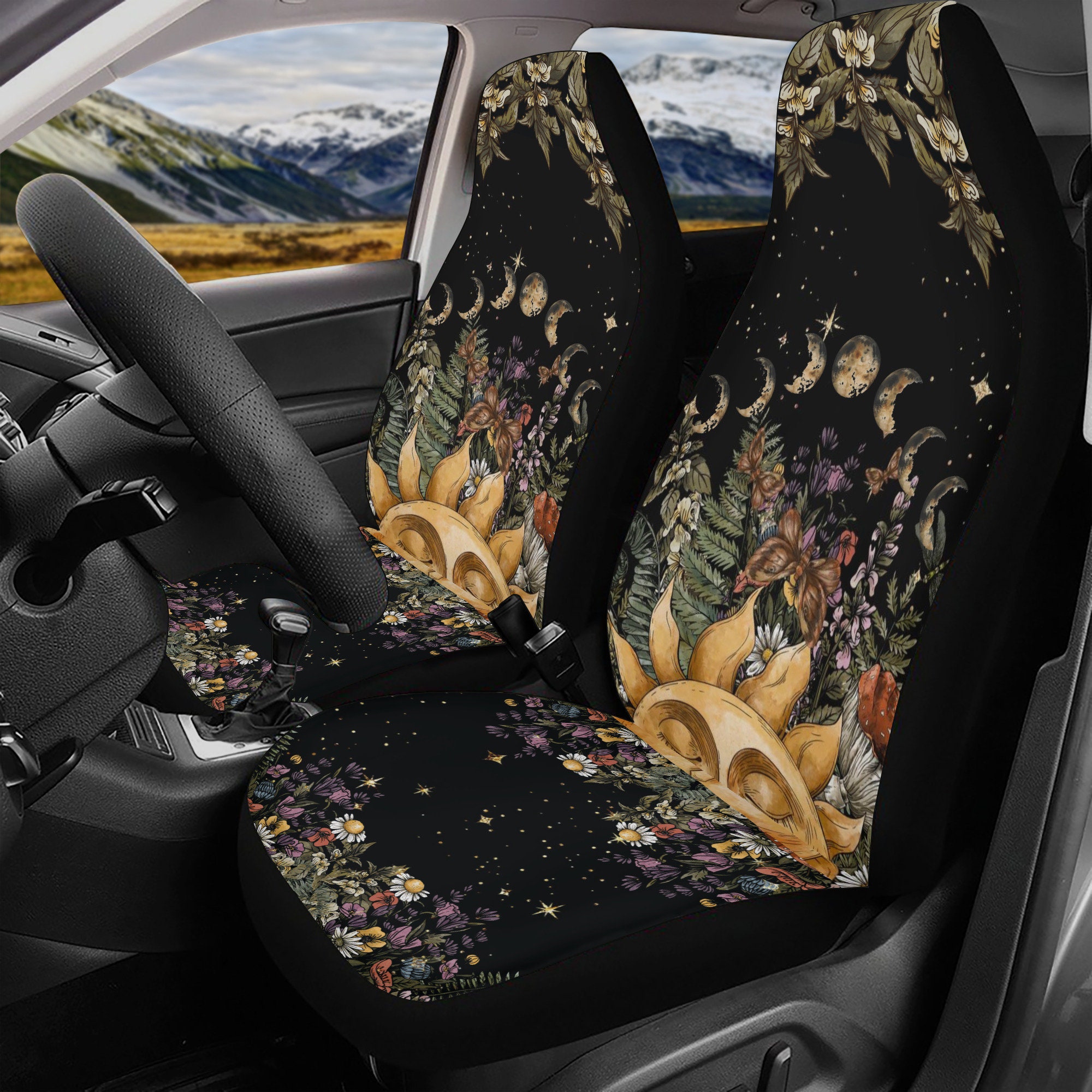 Witch Mystical Sun Car Seat Cover, moon phase Seat cover, Mystical witch seatbelt cover, cottagecore moon steering wheel cover witch decor