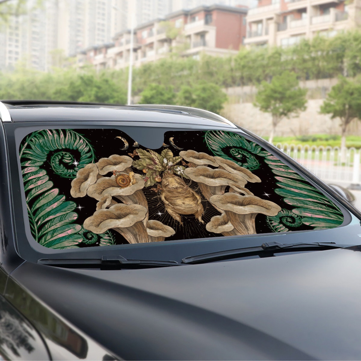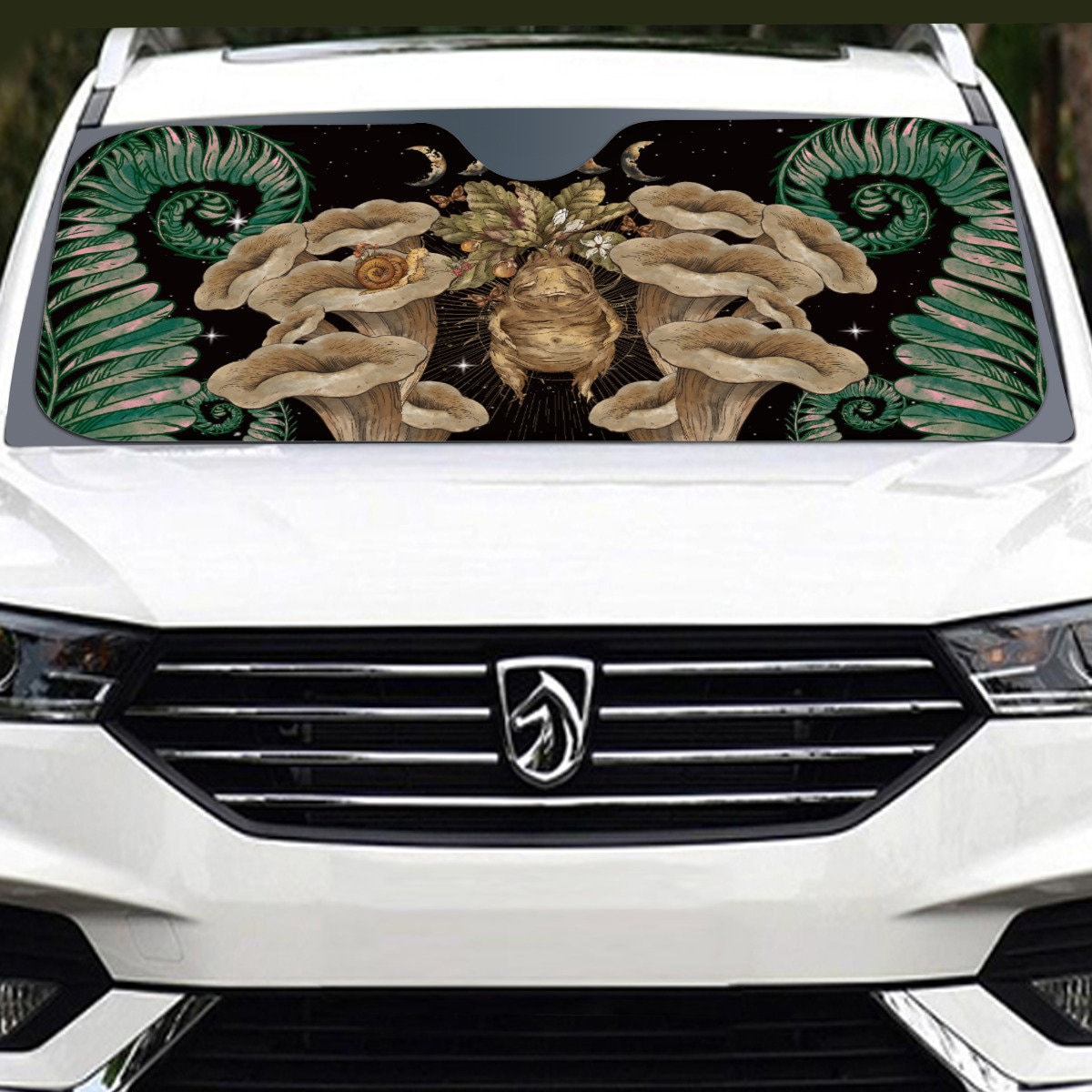 Dark Cottagecore Forest witch Car sunshade for windshield, Mushroom mandrake Window Sun Blocker, magic car accessories Auto Decor Screen