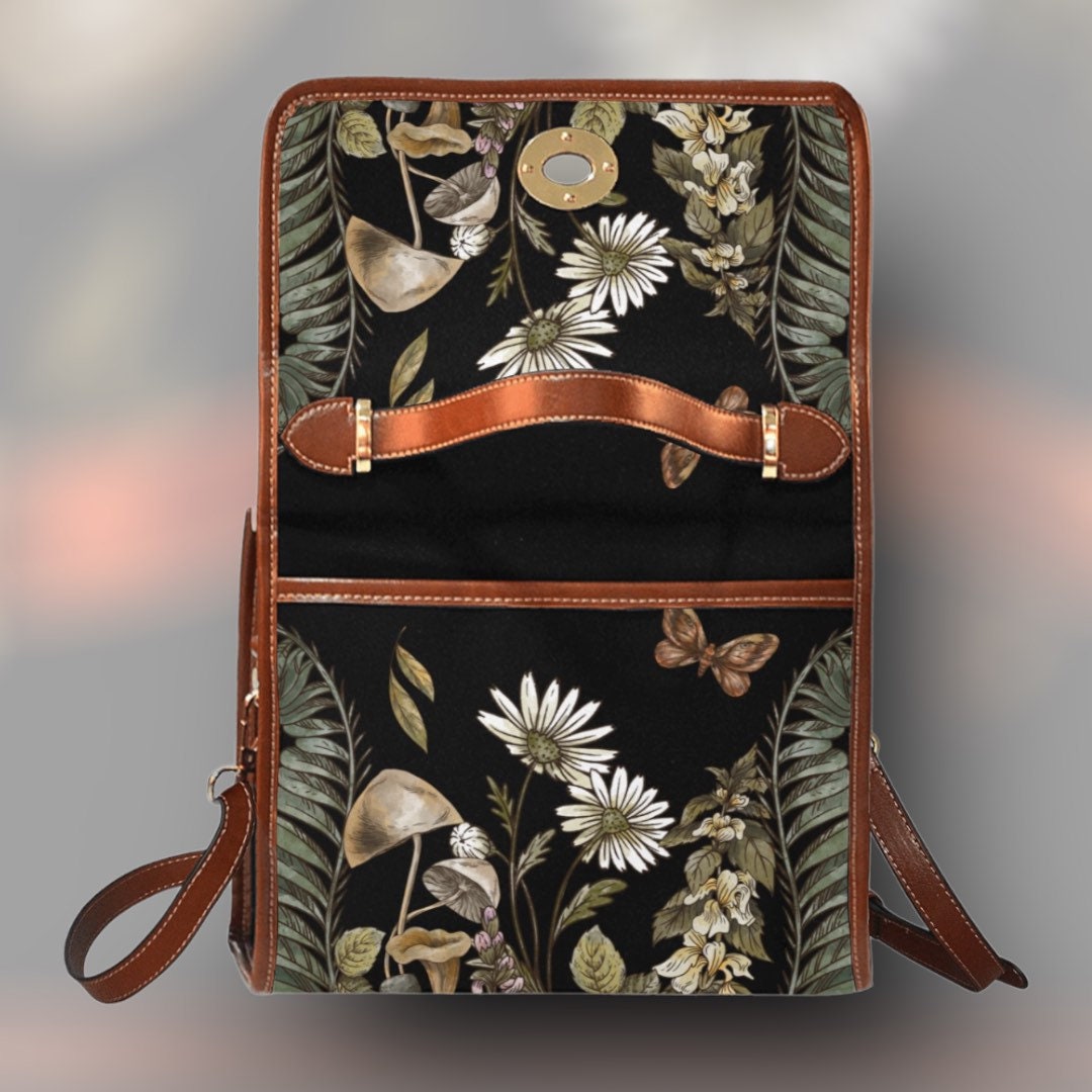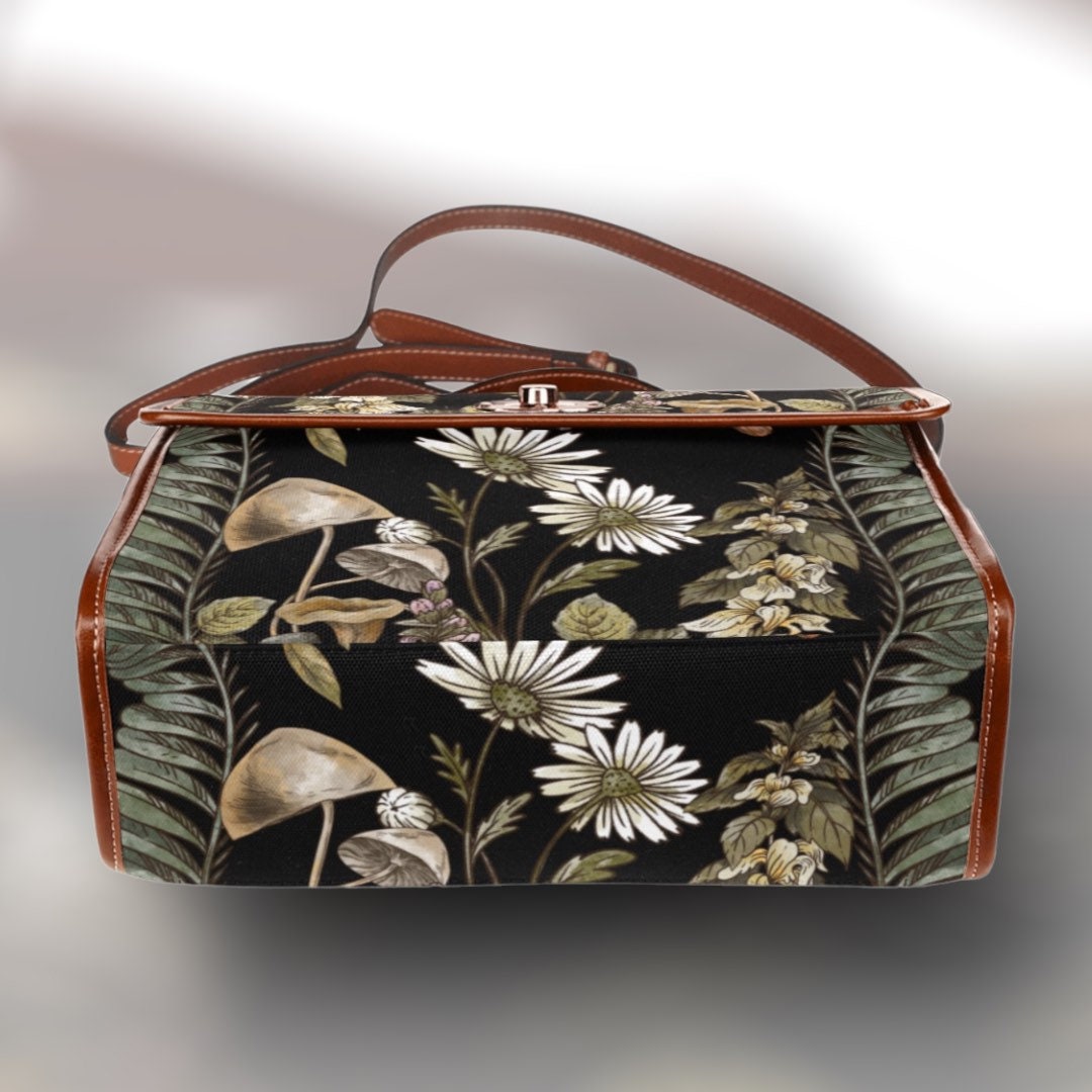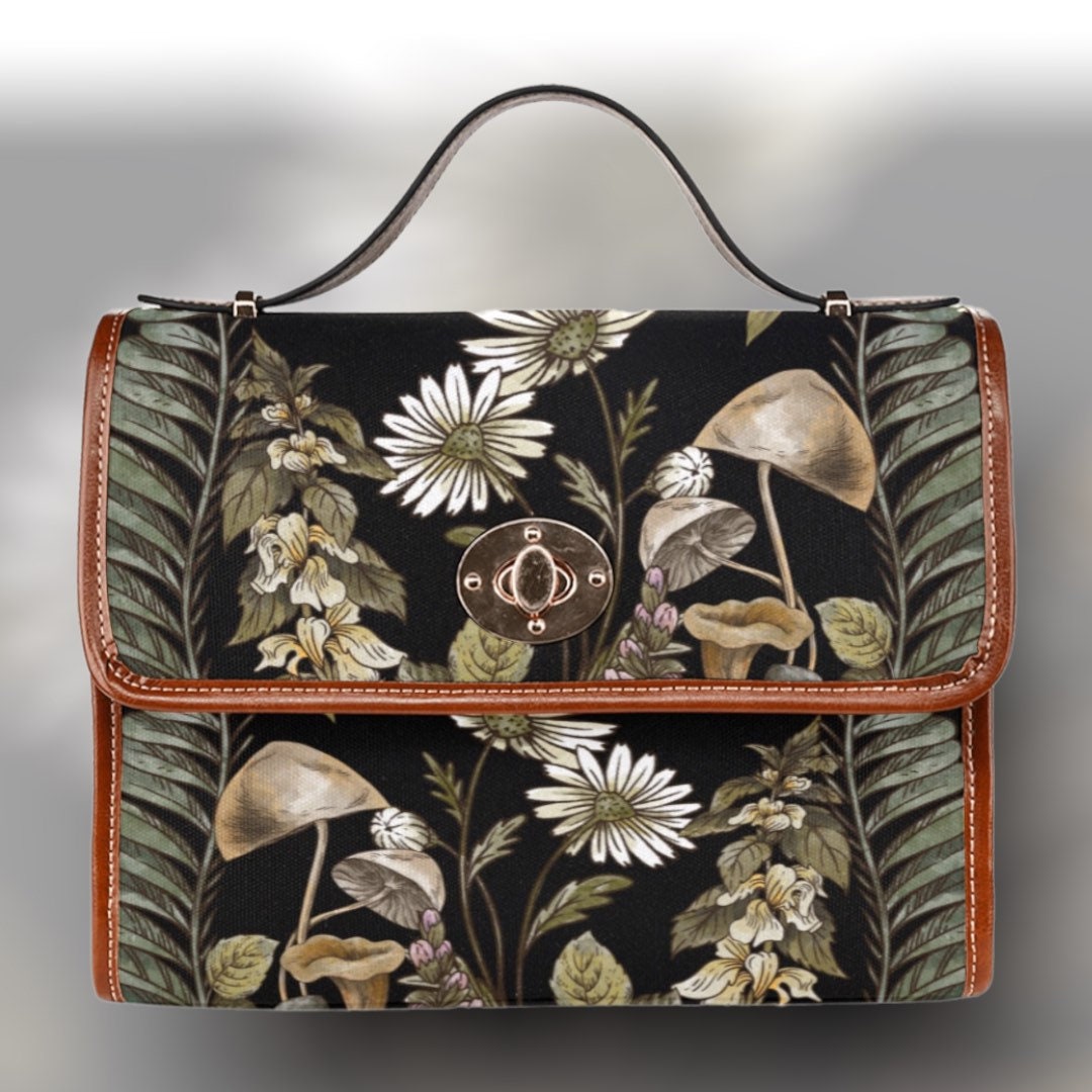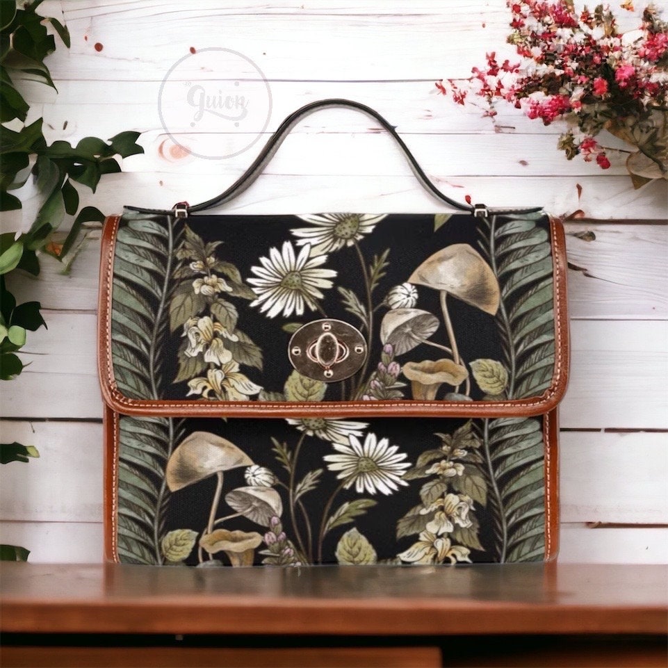 Black kawaii witch Forest Cottagecore Canvas Satchel bag, witchy bag for women, cute vegan leather strap hand bag boho bag hippies boho gift