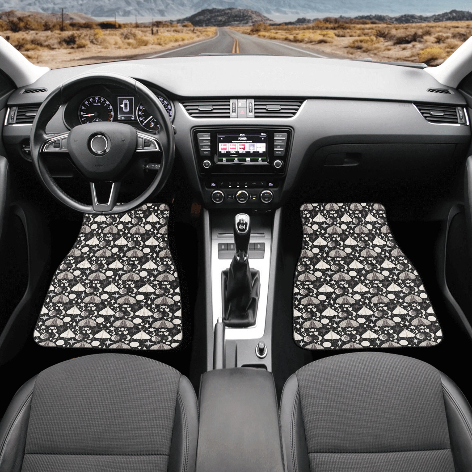 Black Gray Kawaii Goth mystical element car floor mats, cute cute spooky car interior decor, car accessories goth moth moon phases