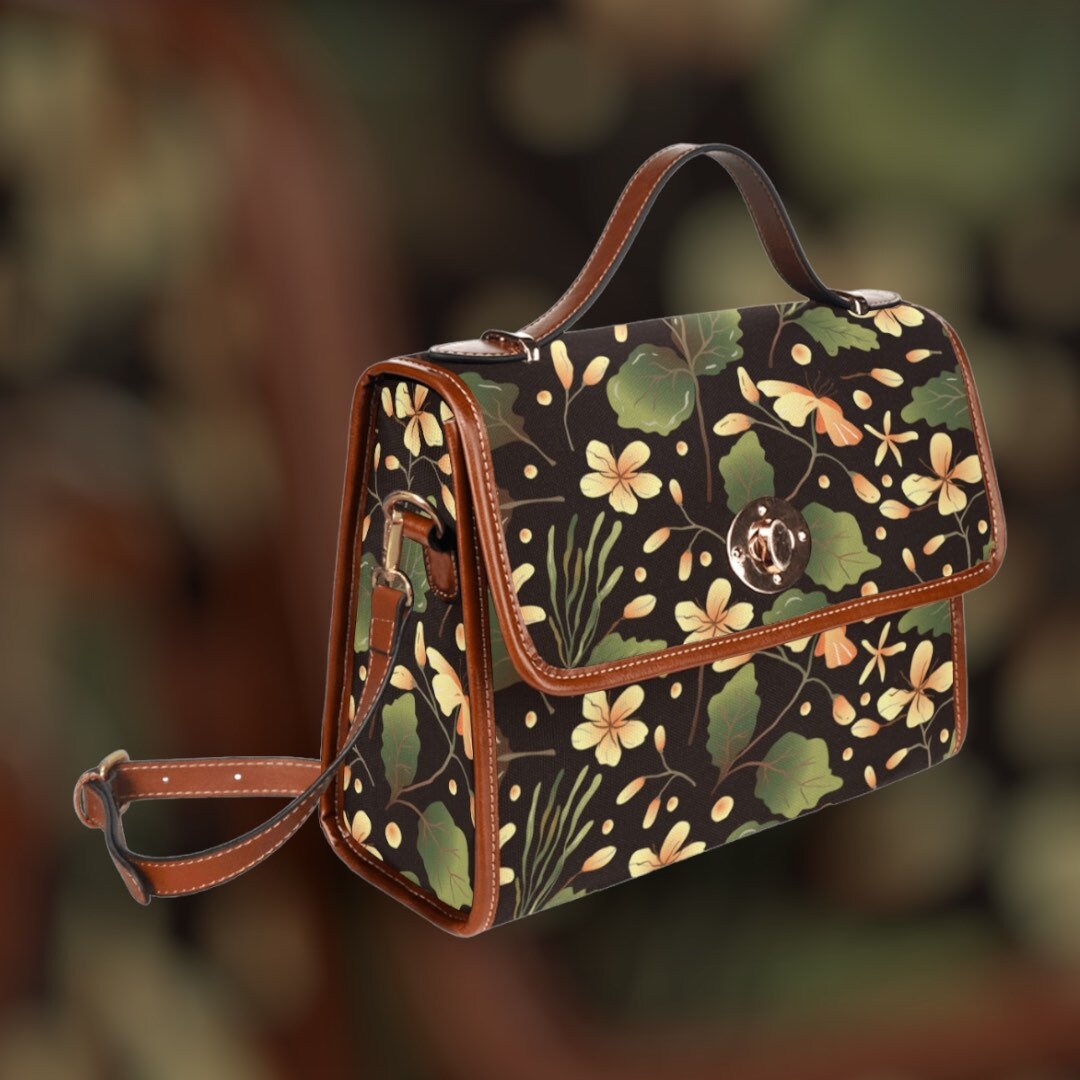 Cottagecore Forest Canvas Satchel bag, Cute women mushroom crossed body purse, cute vegan leather strap hand bag goth bag, hippies boho gift