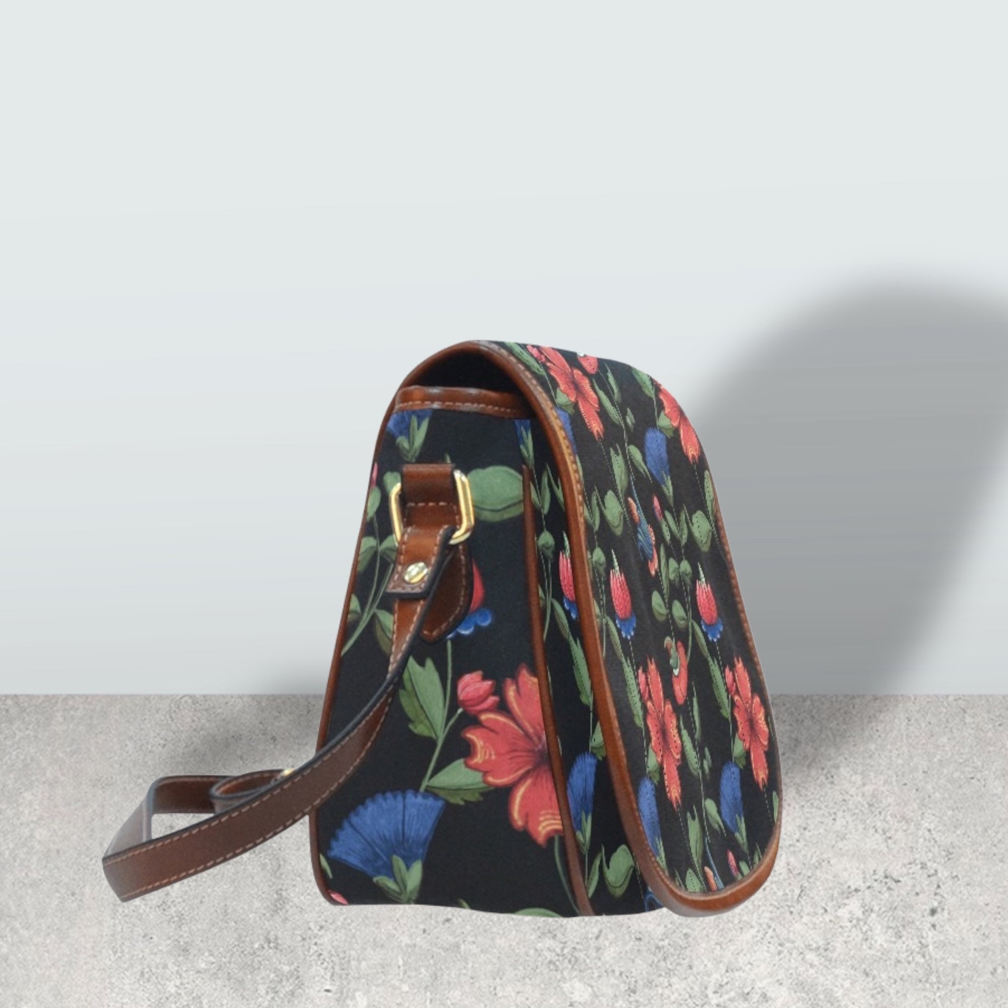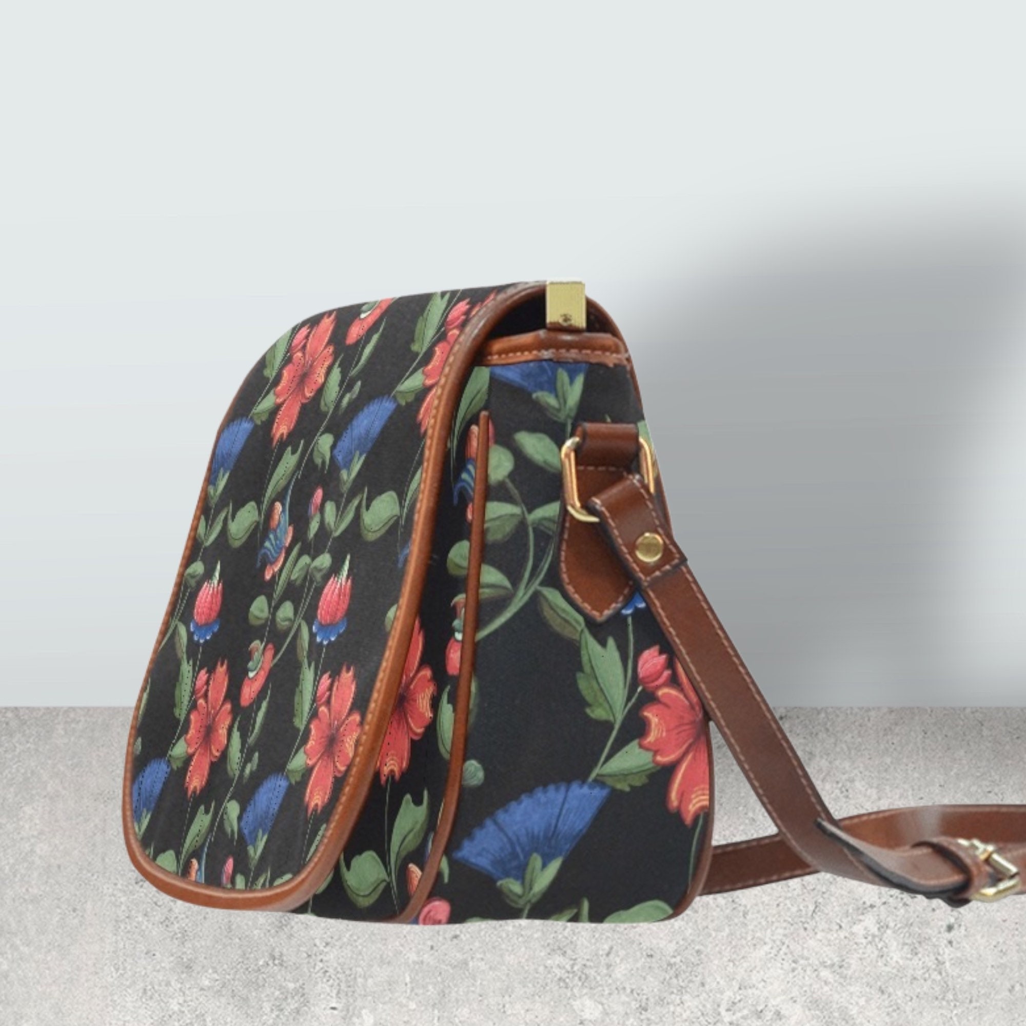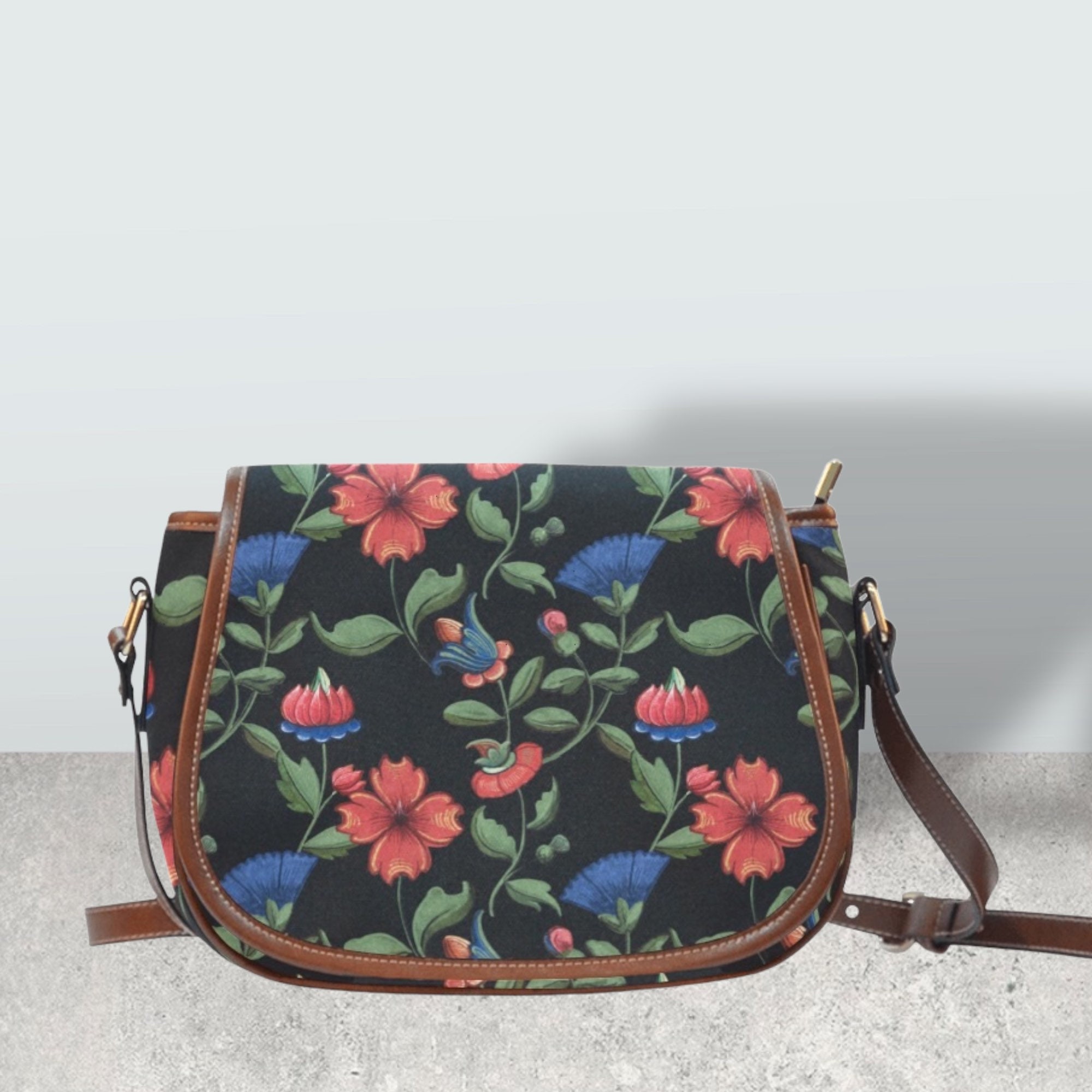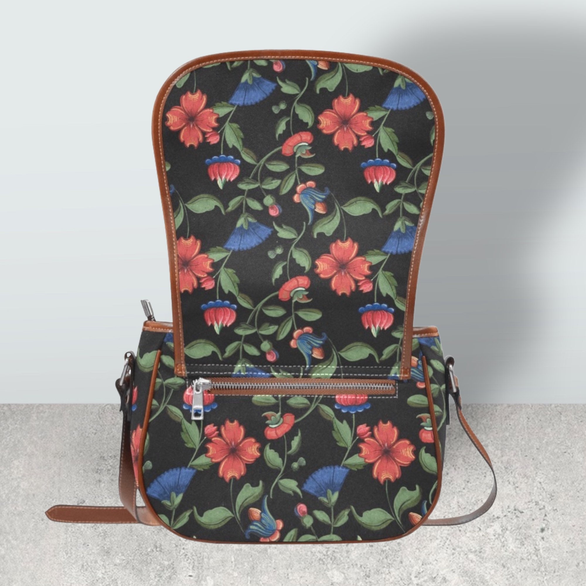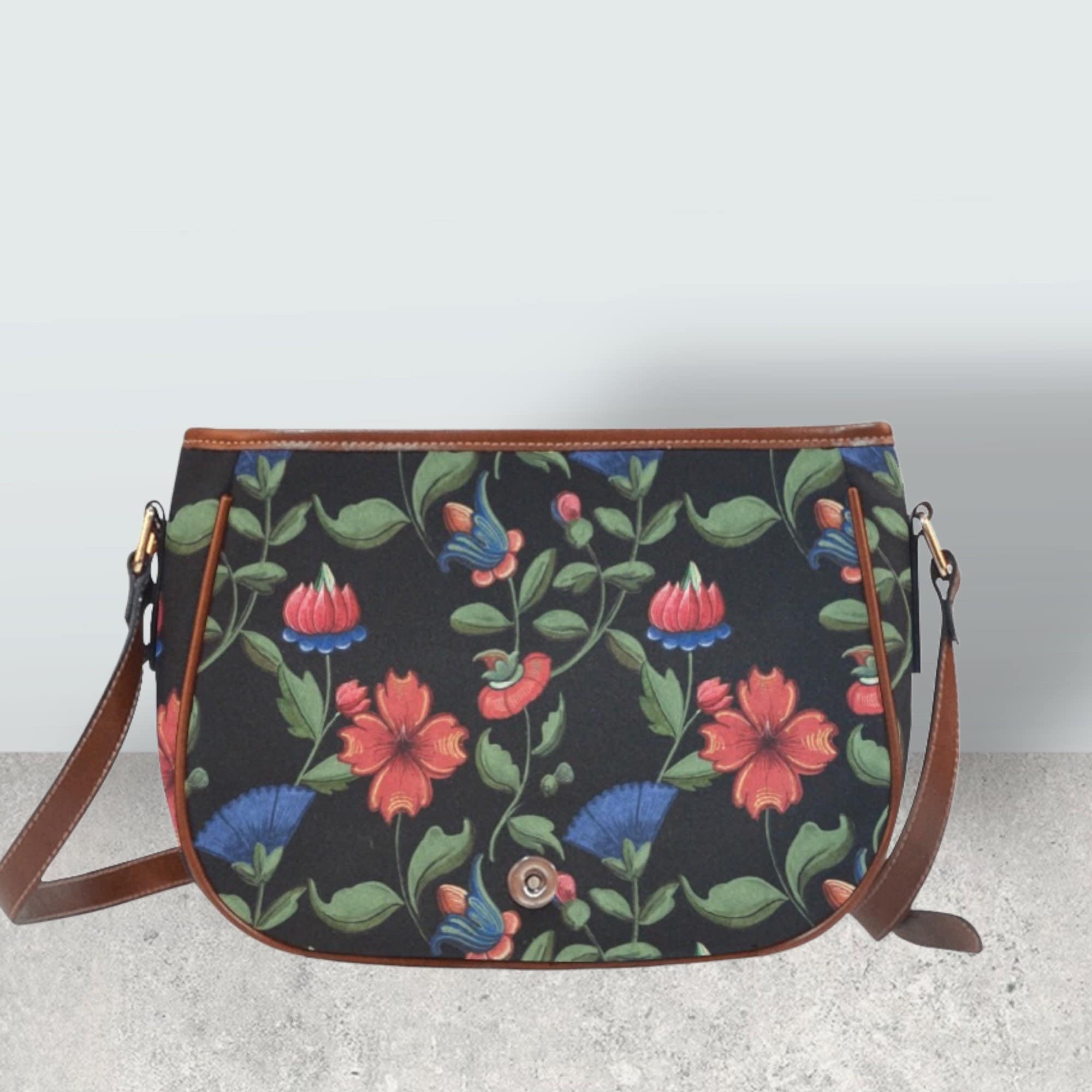Cottagecore Dark Floral Witchy Vegan leather saddle bag, Witchy mystical floral crossed body purse women, witch goth bag, hippies boho gift