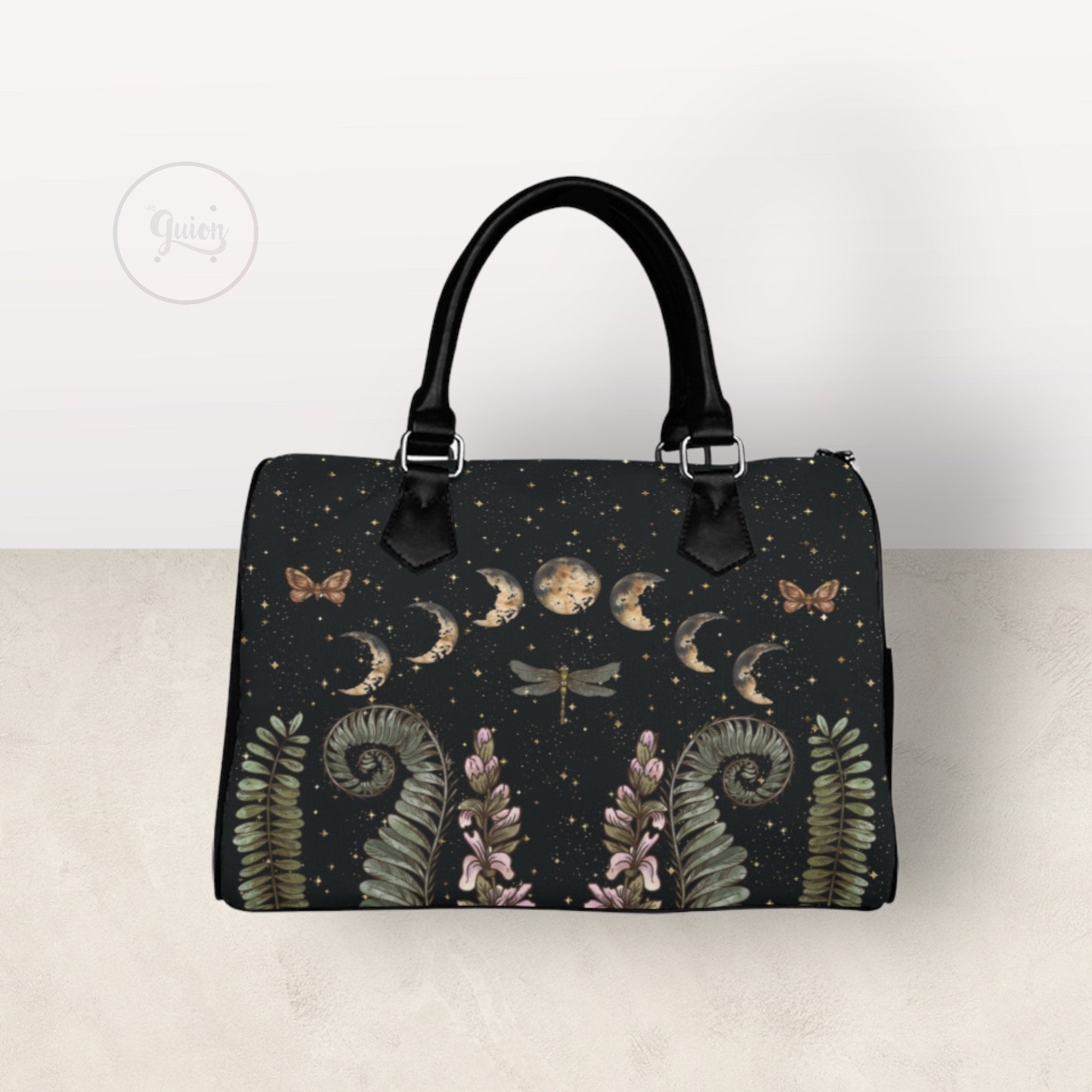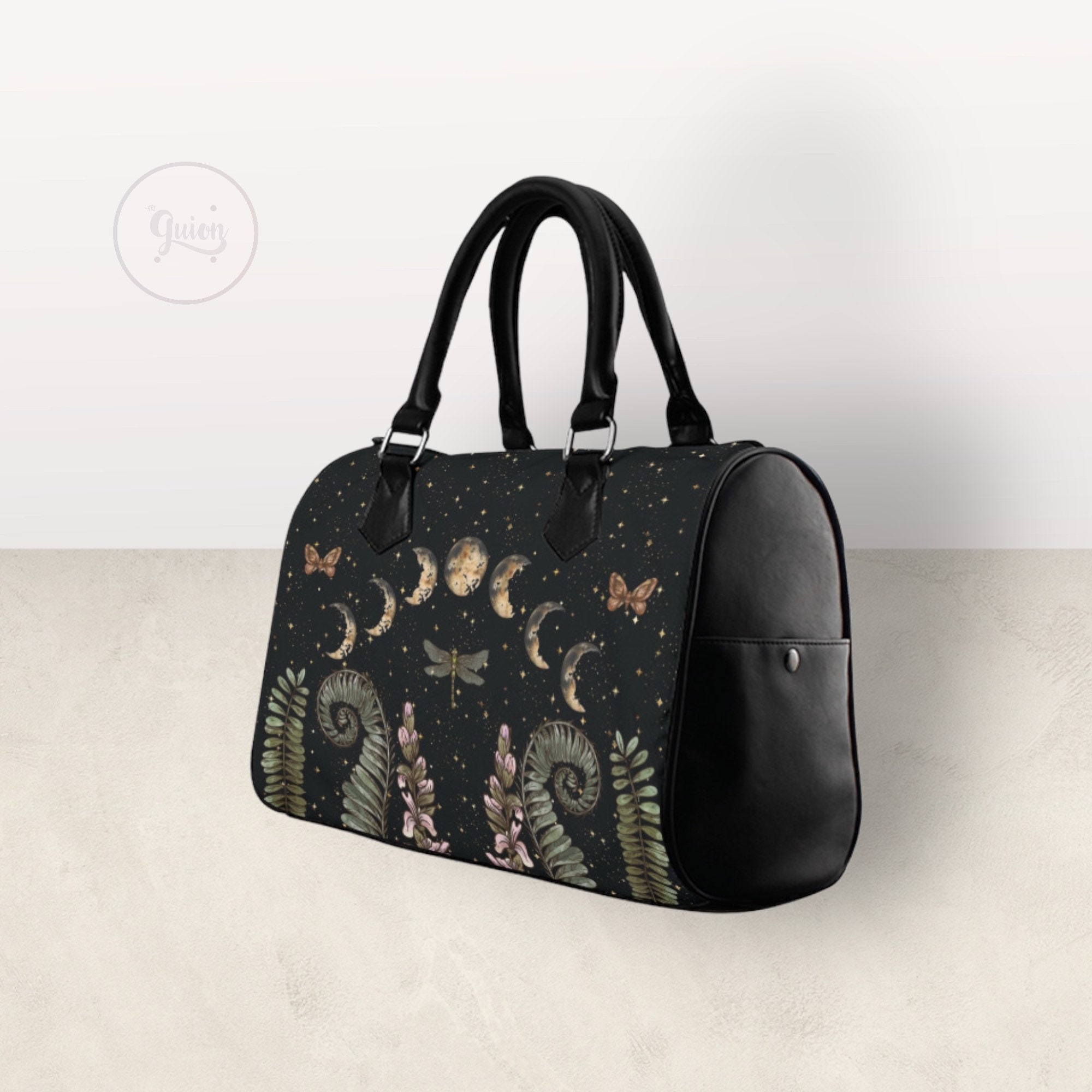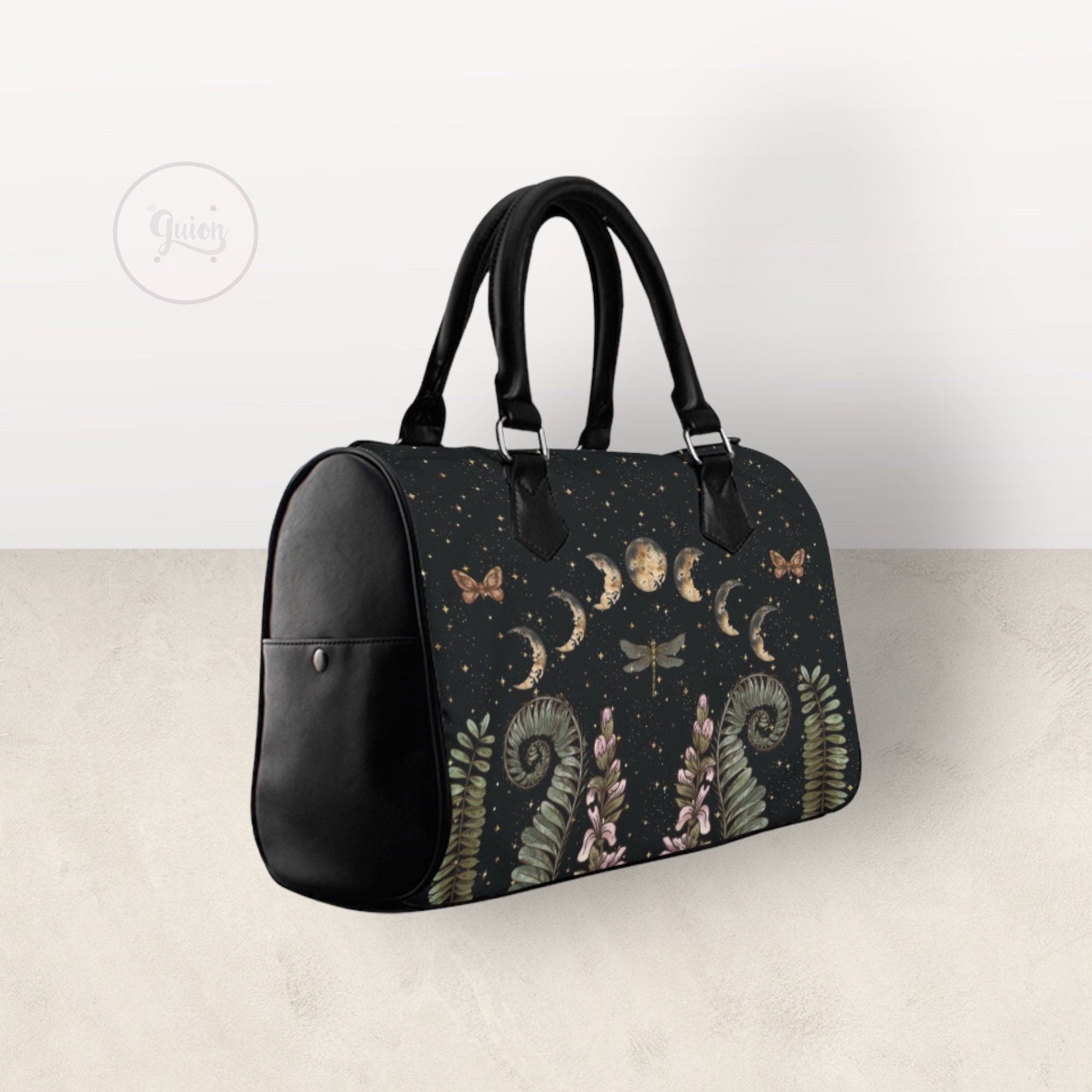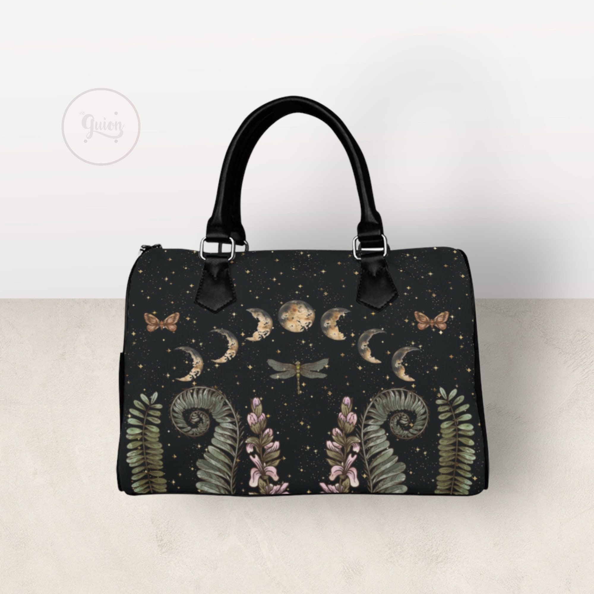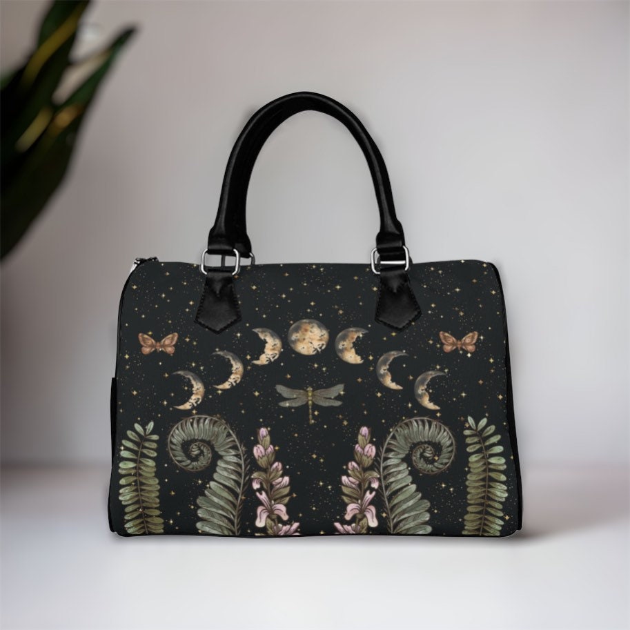 Cottagecore Moon Phases Forest Top Handle Vegan leather nature handbag, Witchy vegan leather purse women, goth bag, hippies boho gift