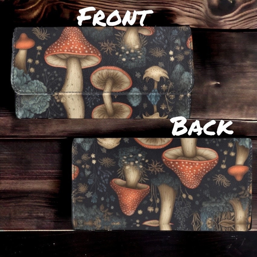 Cottagecore Mushroom boho witch satchel bag, mushroomcore Dark academia Black Vegan leather trim handbag, Gothic womens purse satchel bag