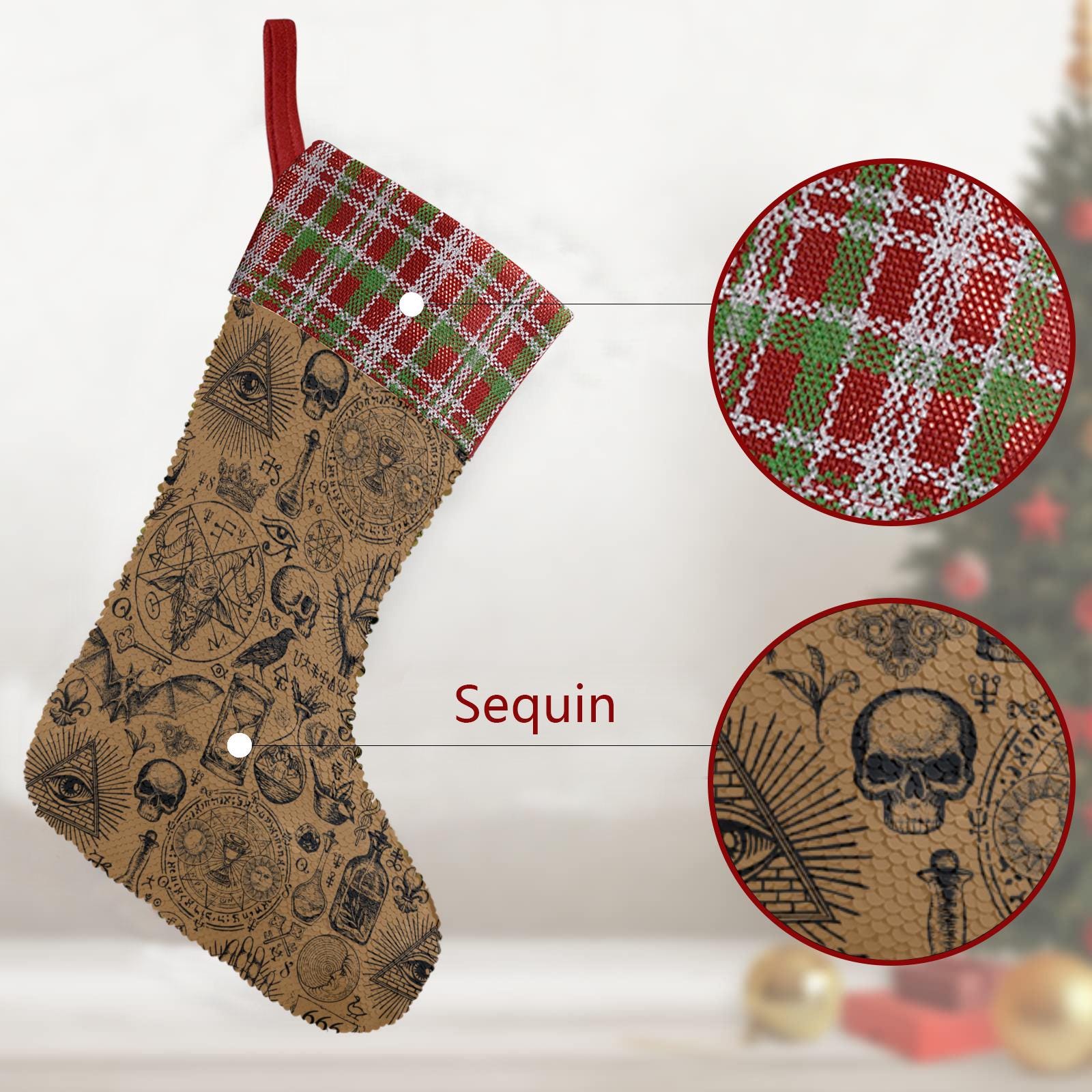 Wicca Gothiccore Sequin Stocking, Perfect for stuffing Santa's Gifts, Fireplace hang, Christmas gift decor, Witchy Holliday stuffer