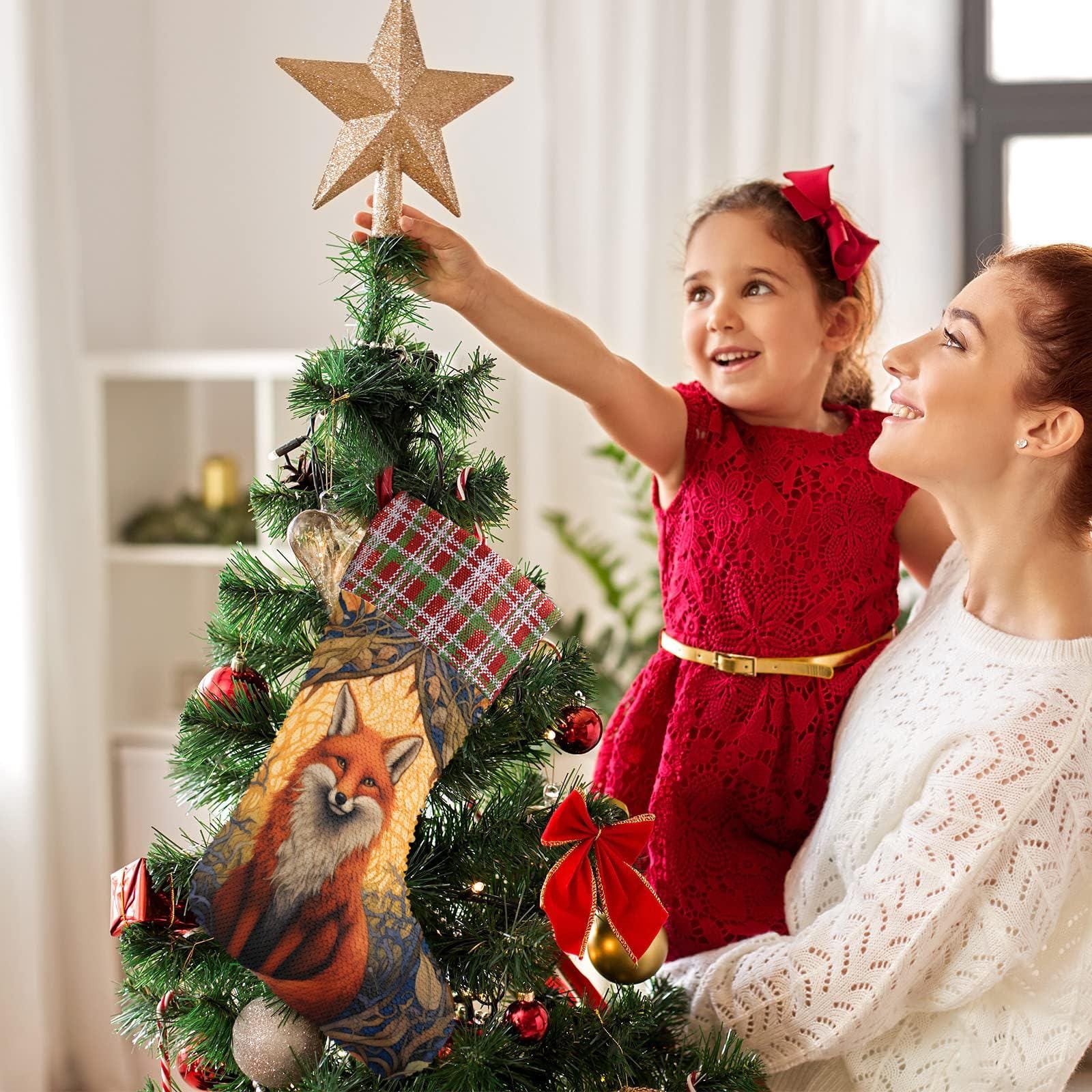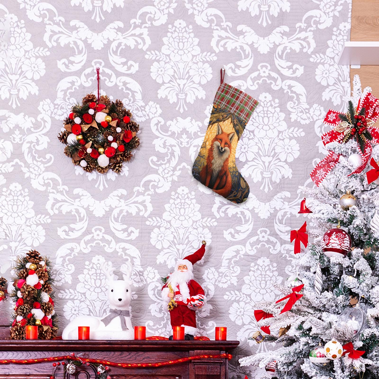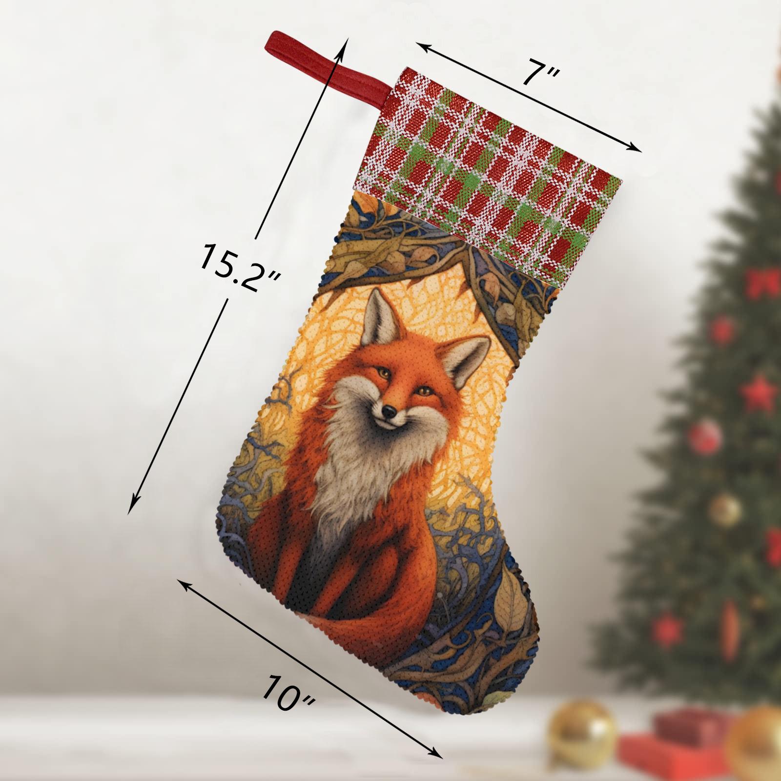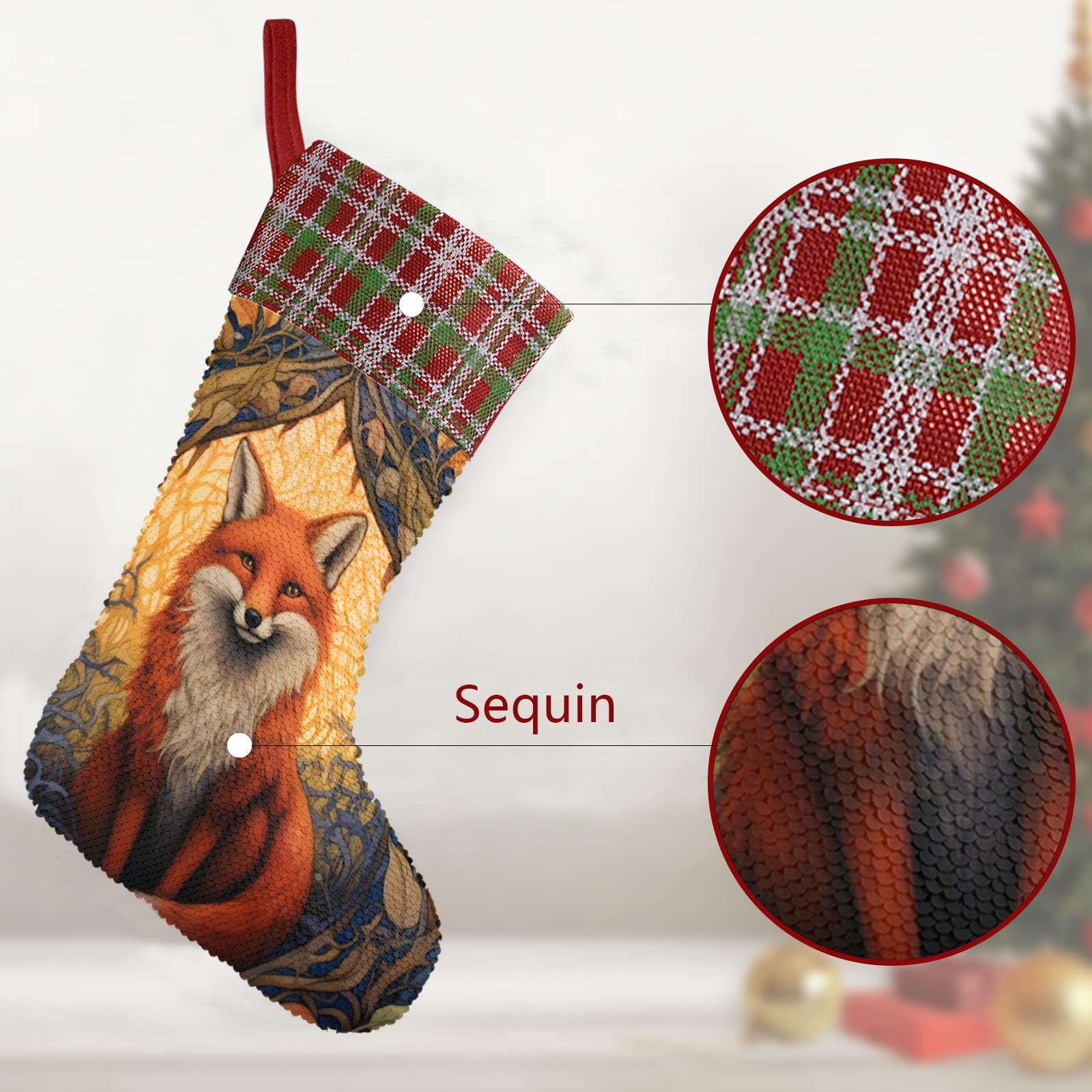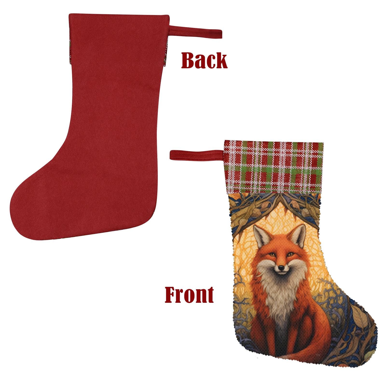 Whimsical Forest Fox Sequin Stocking, Perfect for stuffing Santa's Gifts and Fireplace Decor, Fox lover's Christmas gift, Holliday gift idea