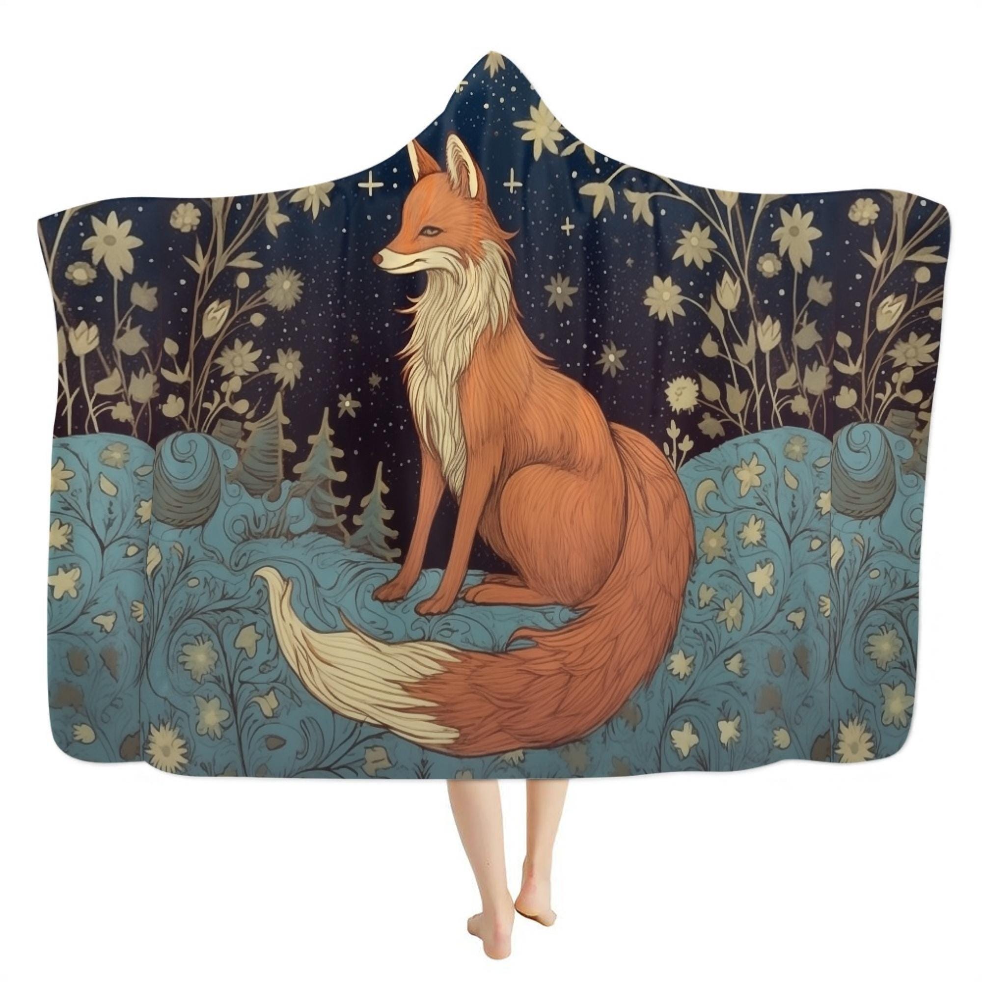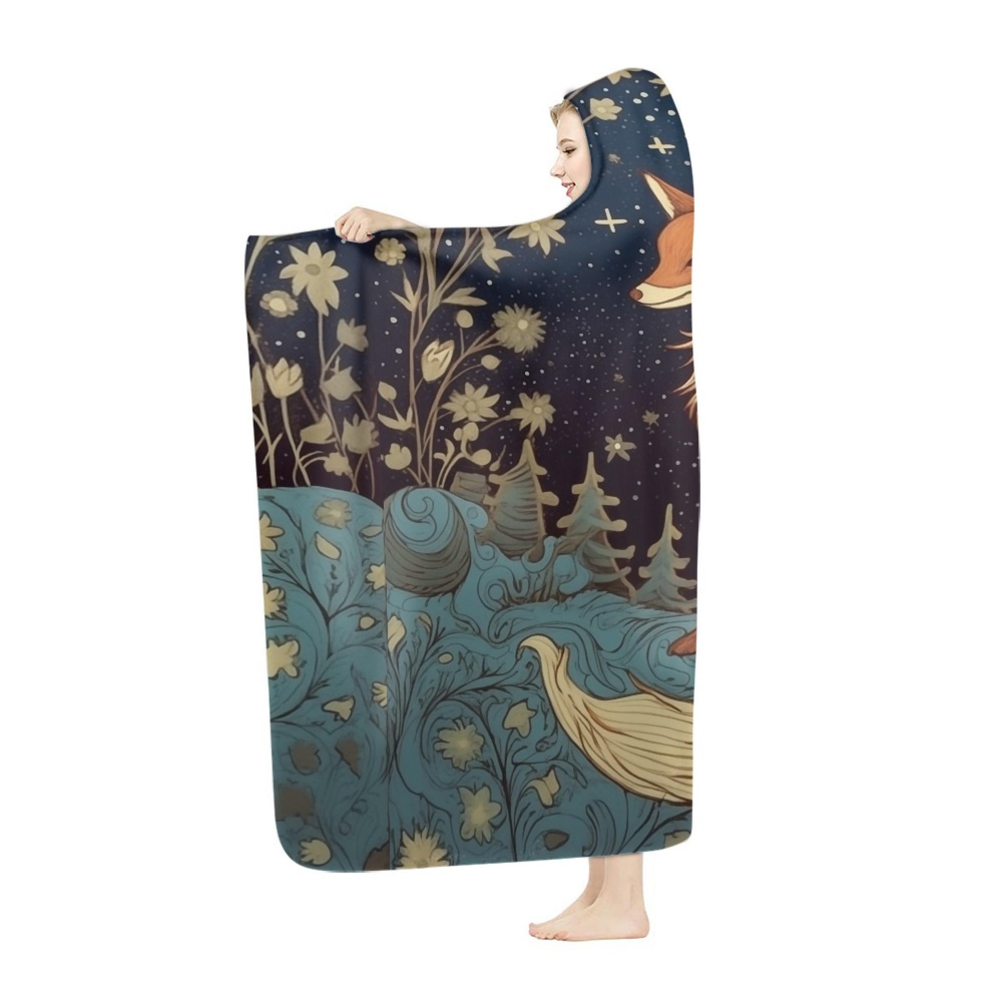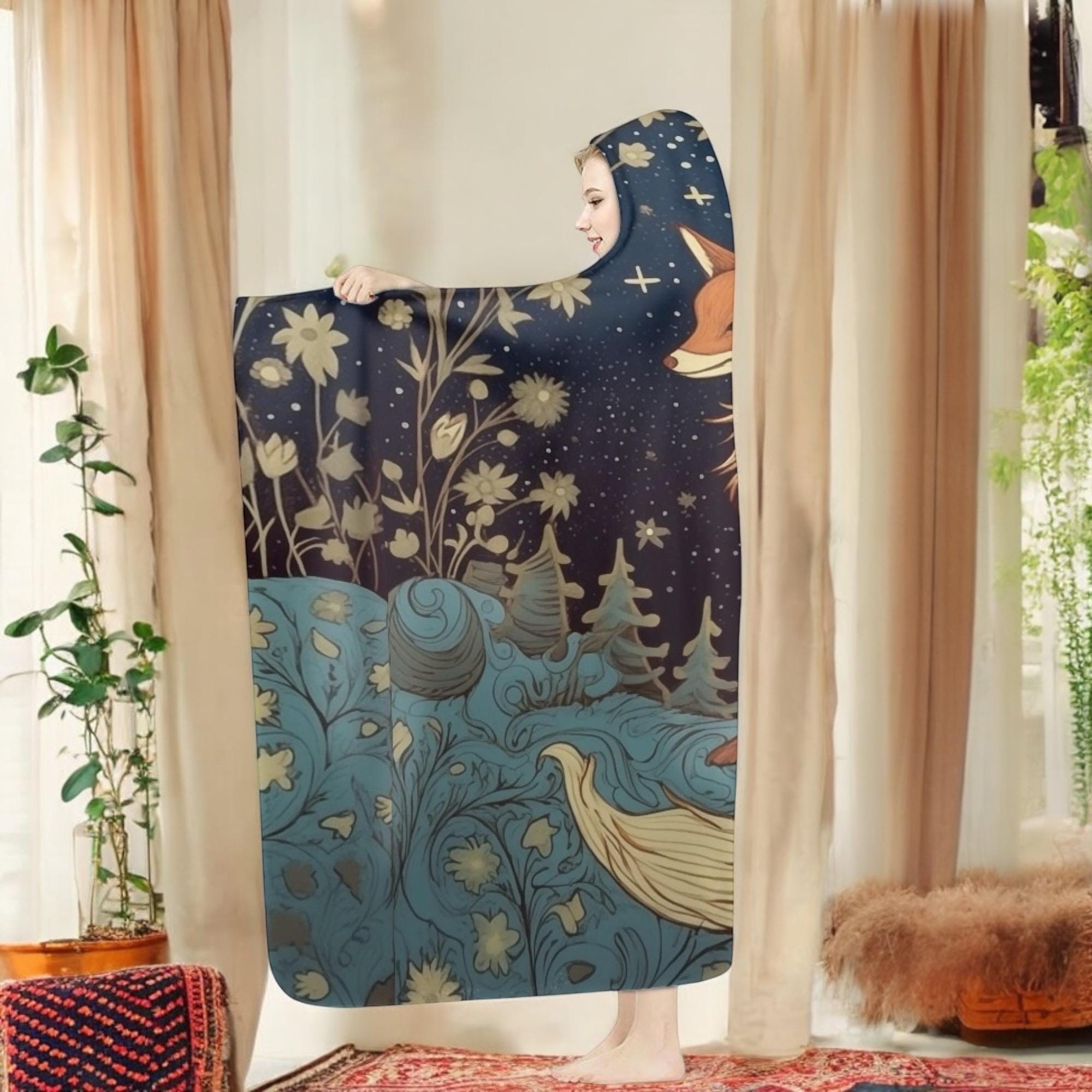 Cottagecore Fox in Starry Night hooded blanket, Boho Witch cozy blanket throw, Fairycore Boho hooded cloak, Goblincore Blanket hippies gift