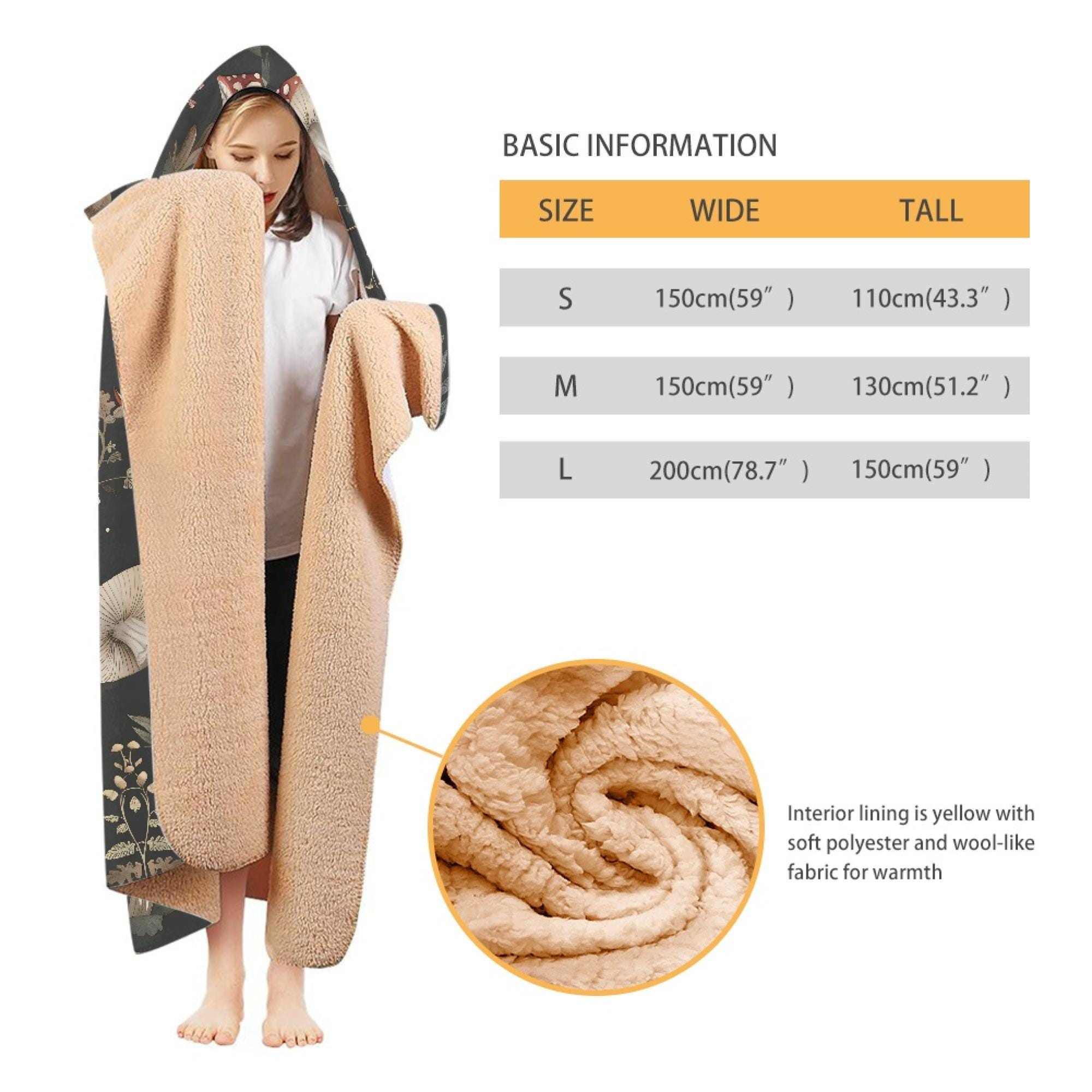 Cute rabbits in forest hooded blanket, Wildflower Witchy cozy blanket throw, Fairycore Boho hooded cloak Cape Blanket, boho hippies gift