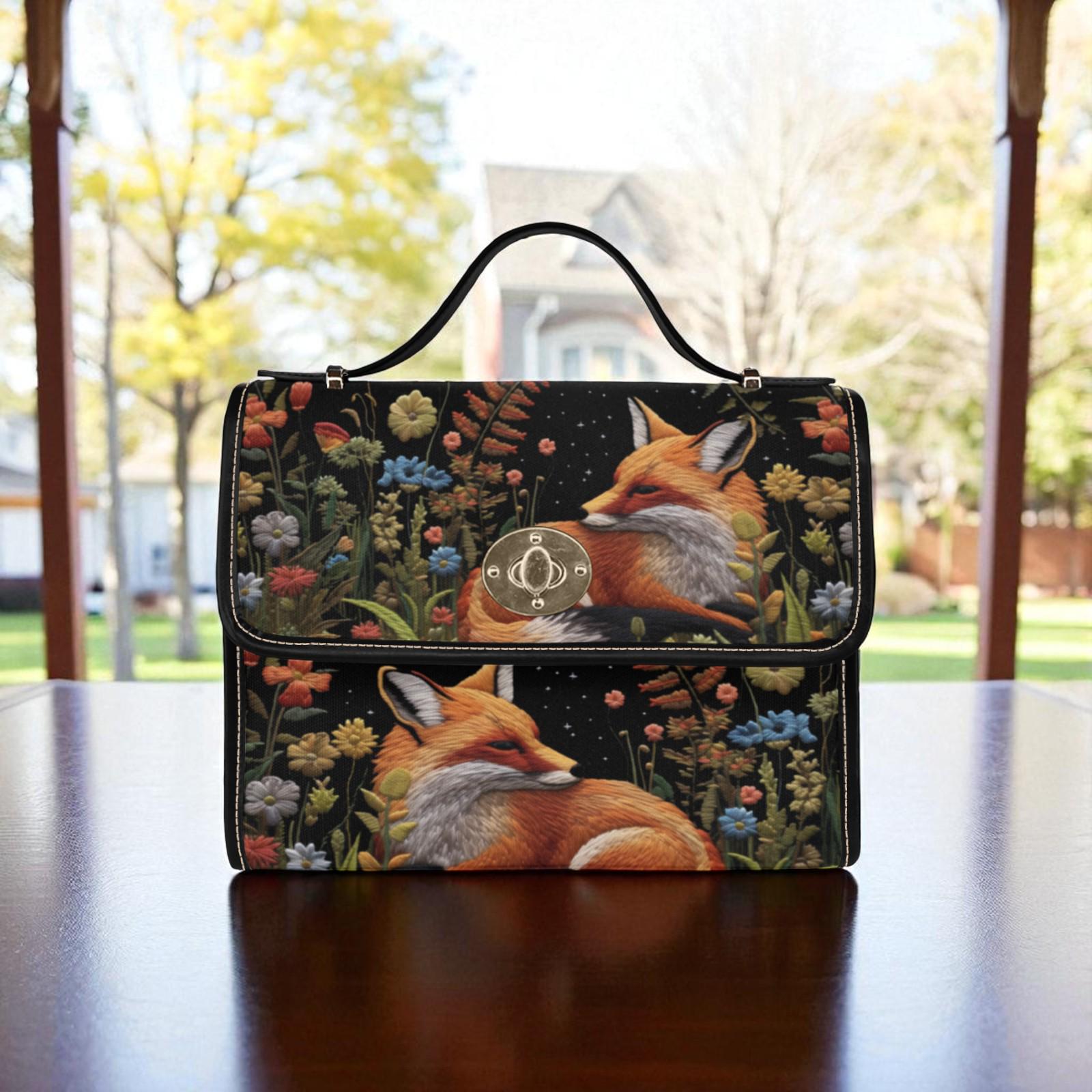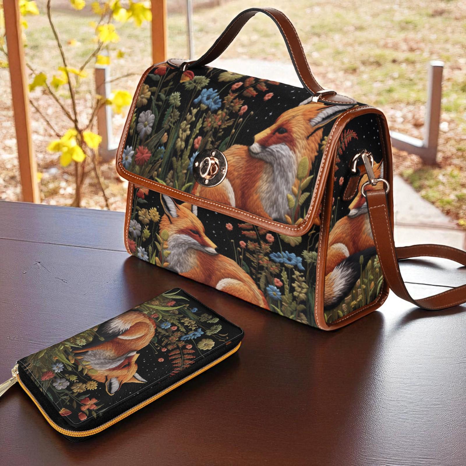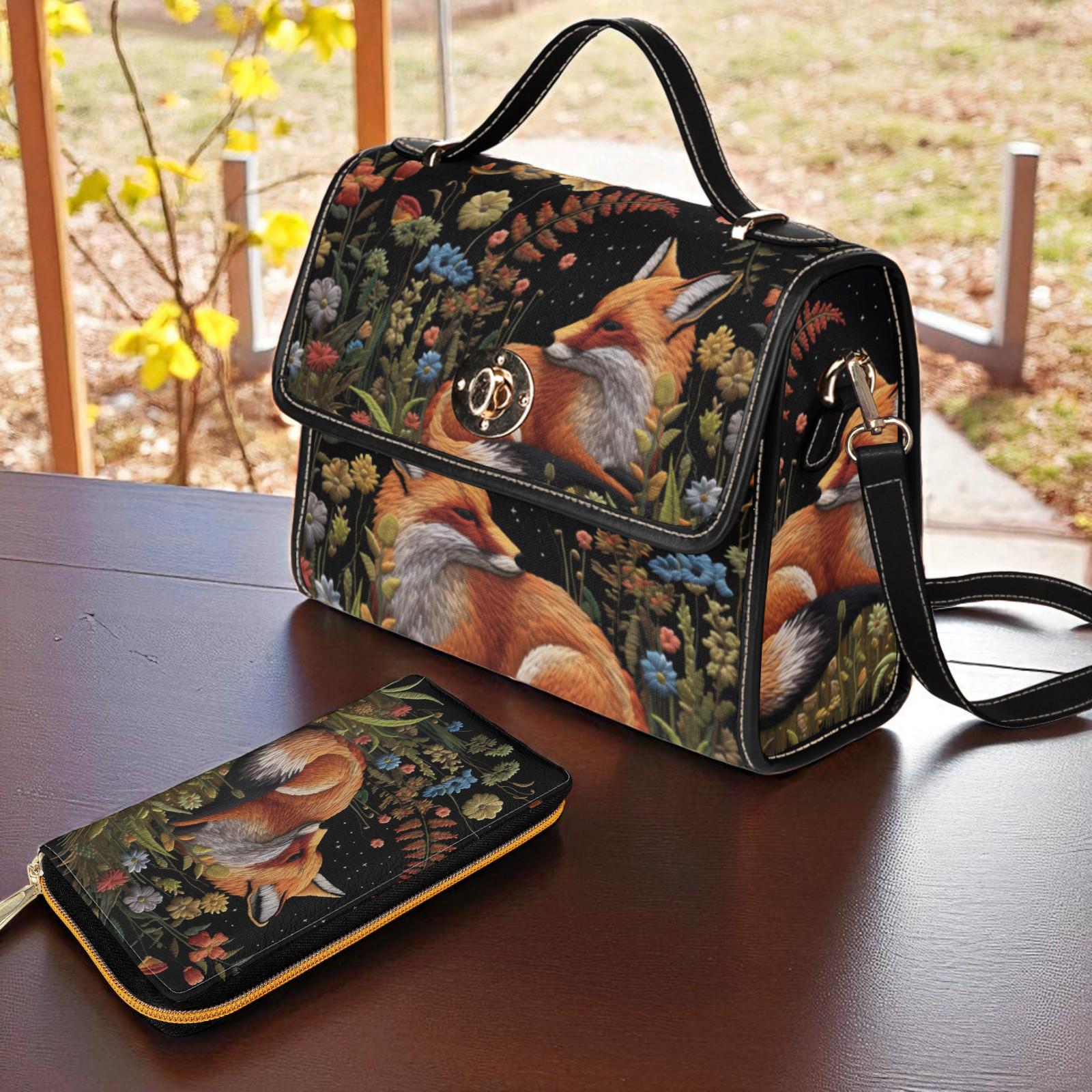 Boho Faux-Embroidered Fox Handbag & Wallet, Boho Cottagecore Witchy Fox Purse, Naturecore Fox Floral HandBag, Dark Forestcore Fox Wallet