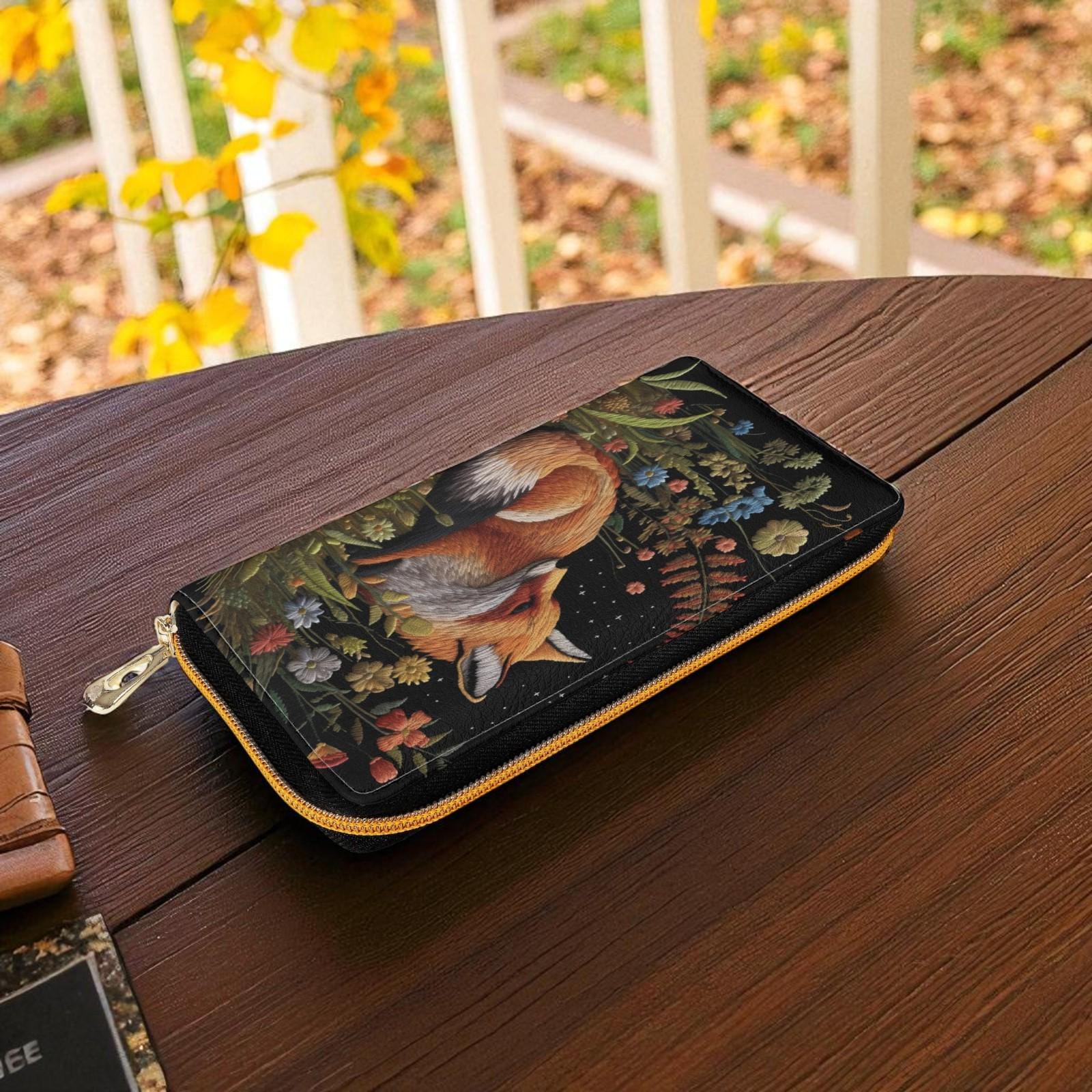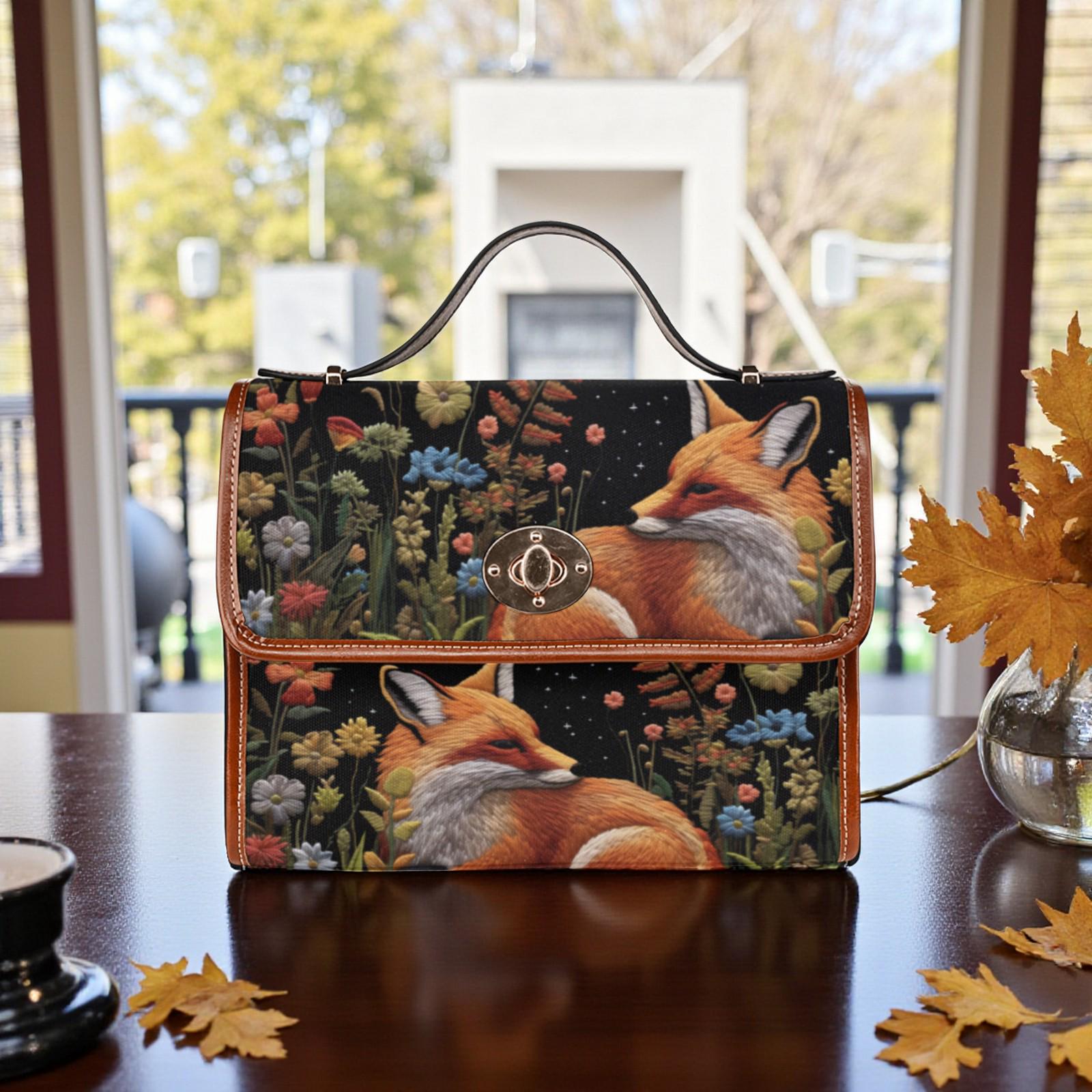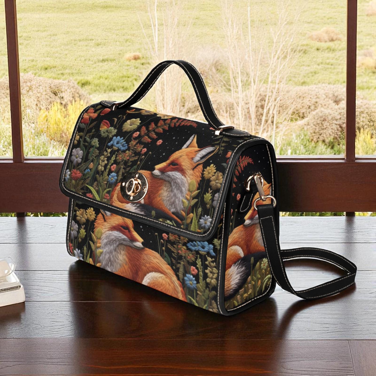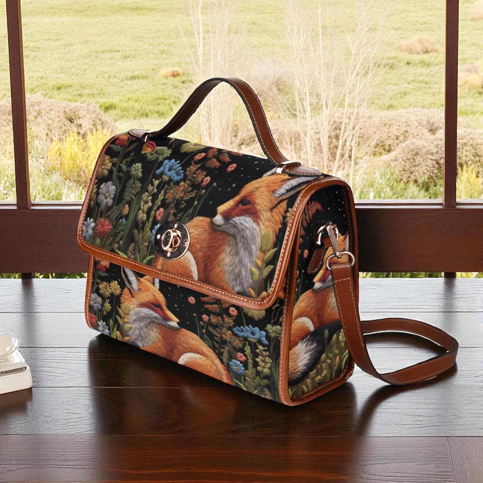 Boho Faux-Embroidered Fox Handbag & Wallet, Boho Cottagecore Witchy Fox Purse, Naturecore Fox Floral HandBag, Dark Forestcore Fox Wallet