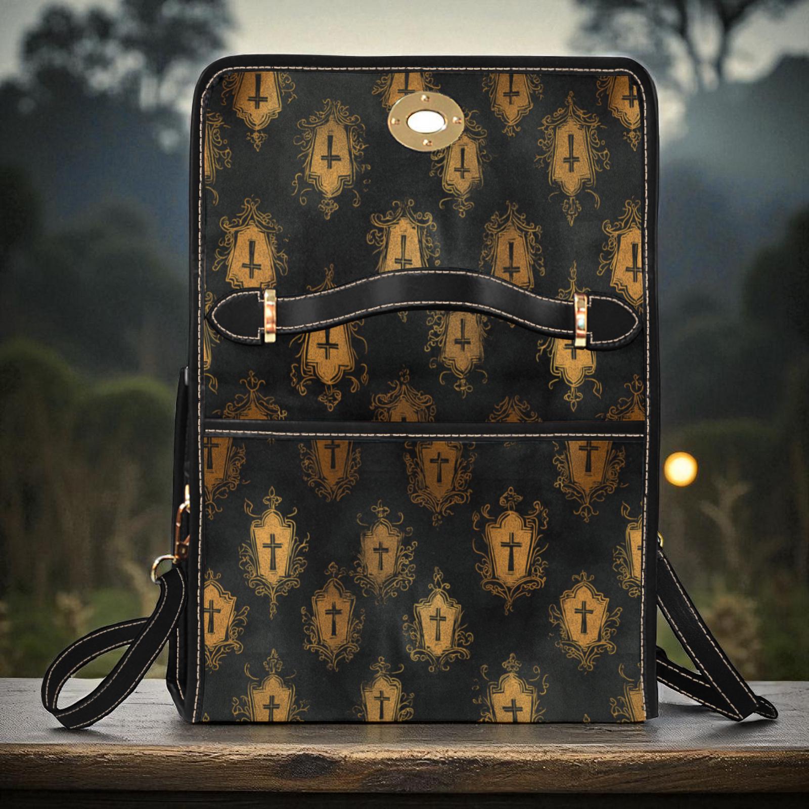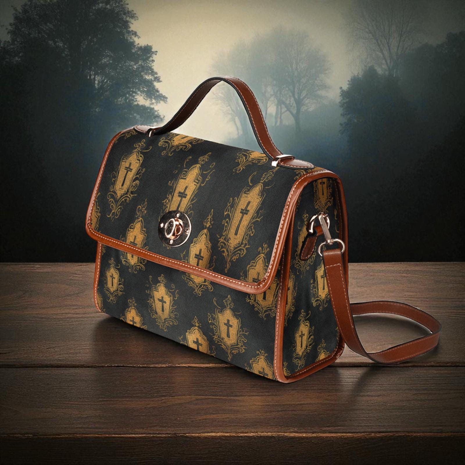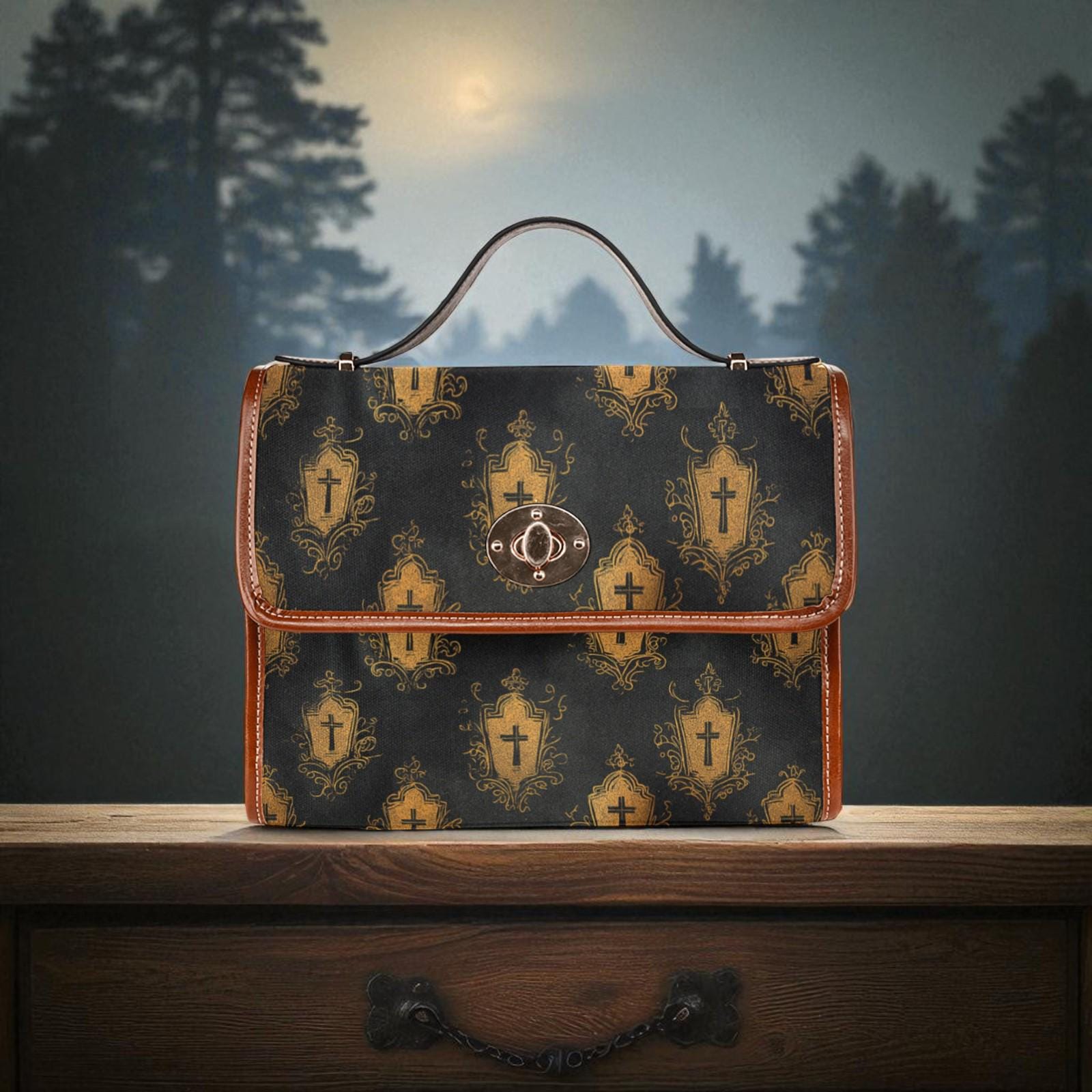 Dark Gothic Crosses Canvas Satchel Bag, Ghost Dark Academia Halloween Purse, PU Leather Top Handle Bag, Witchcore Bag, boho hippies gift