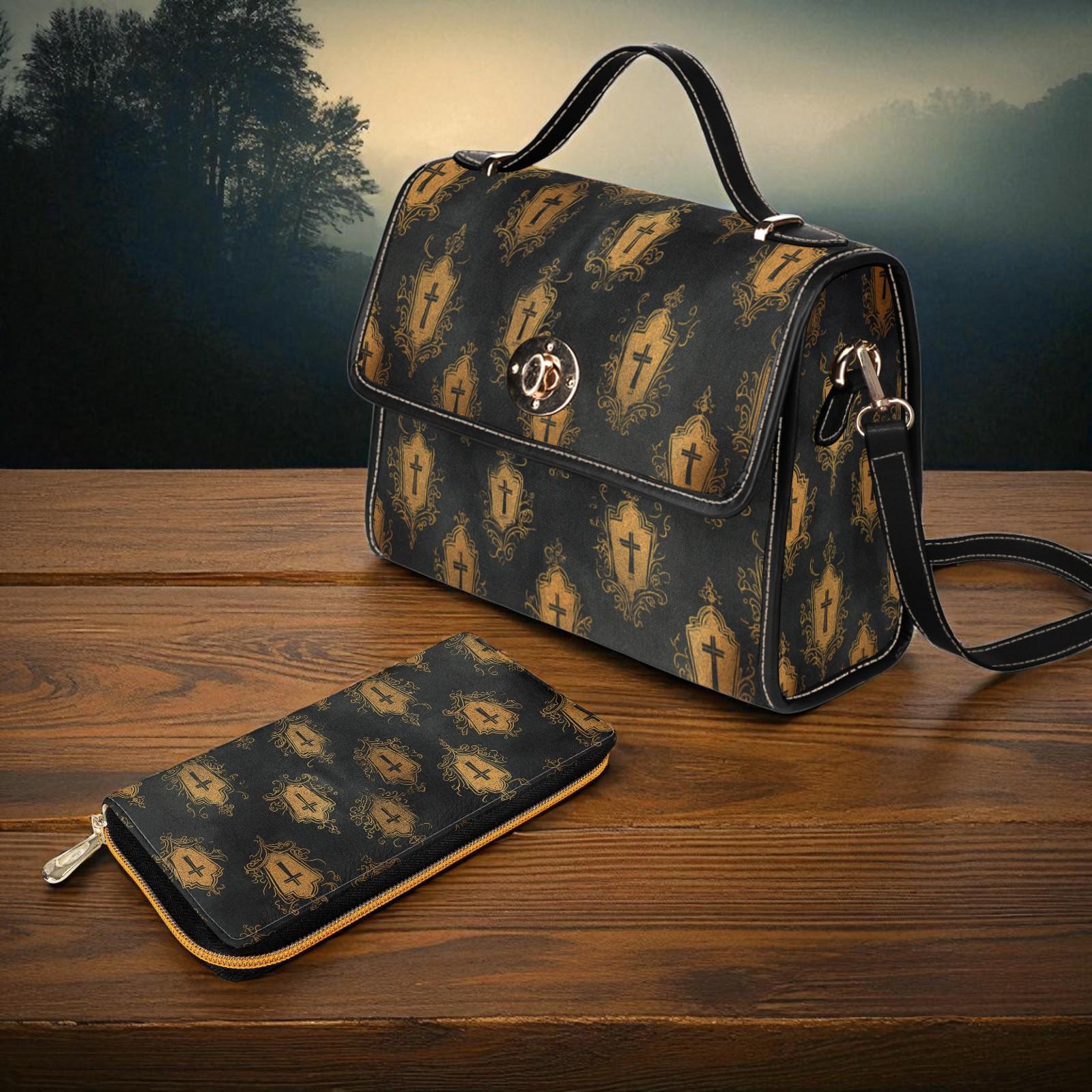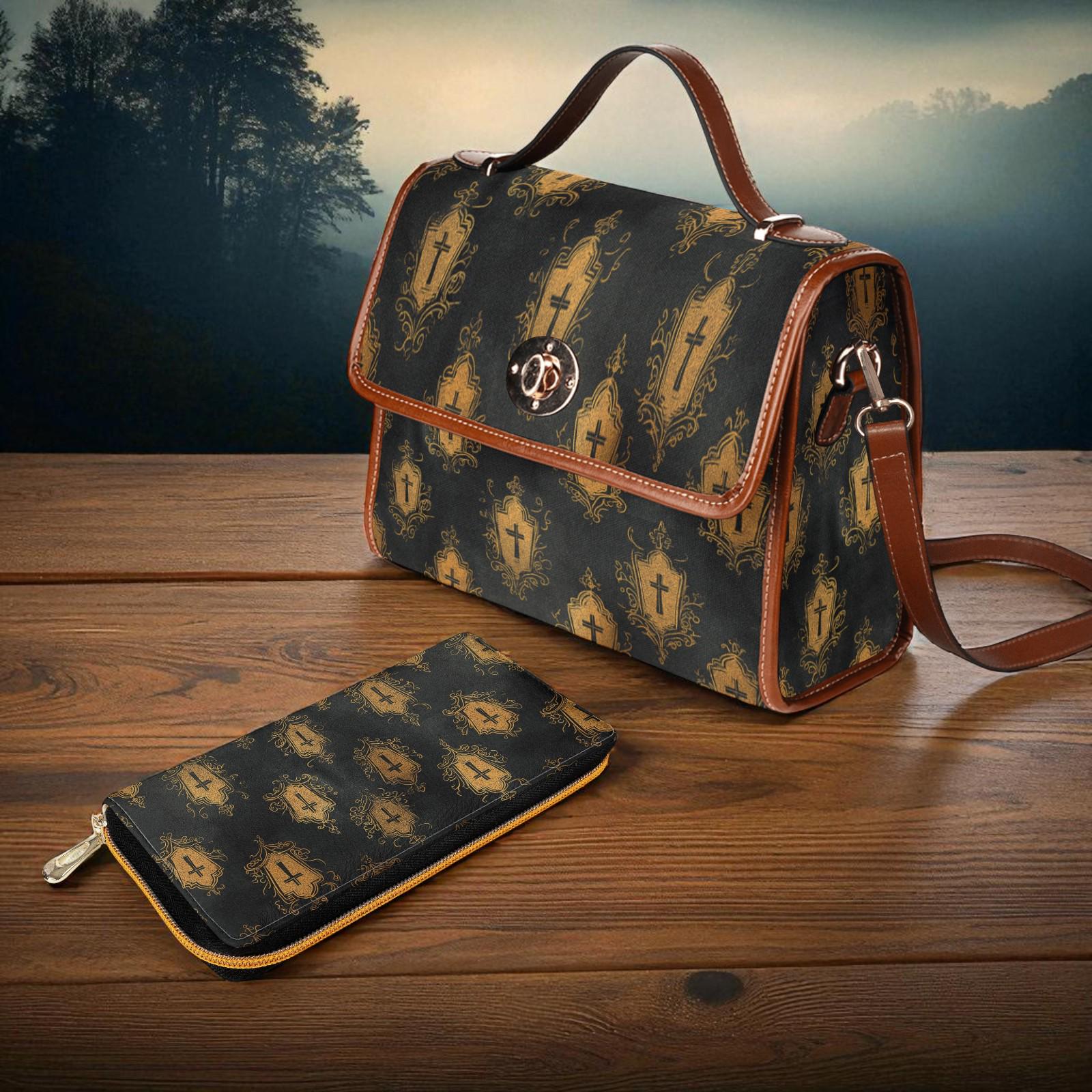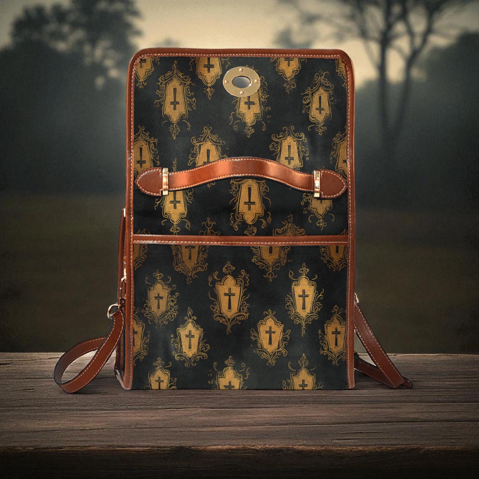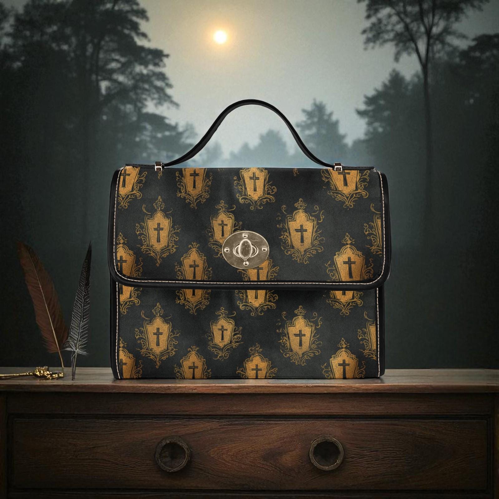 Dark Gothic Crosses Canvas Satchel Bag, Ghost Dark Academia Halloween Purse, PU Leather Top Handle Bag, Witchcore Bag, boho hippies gift