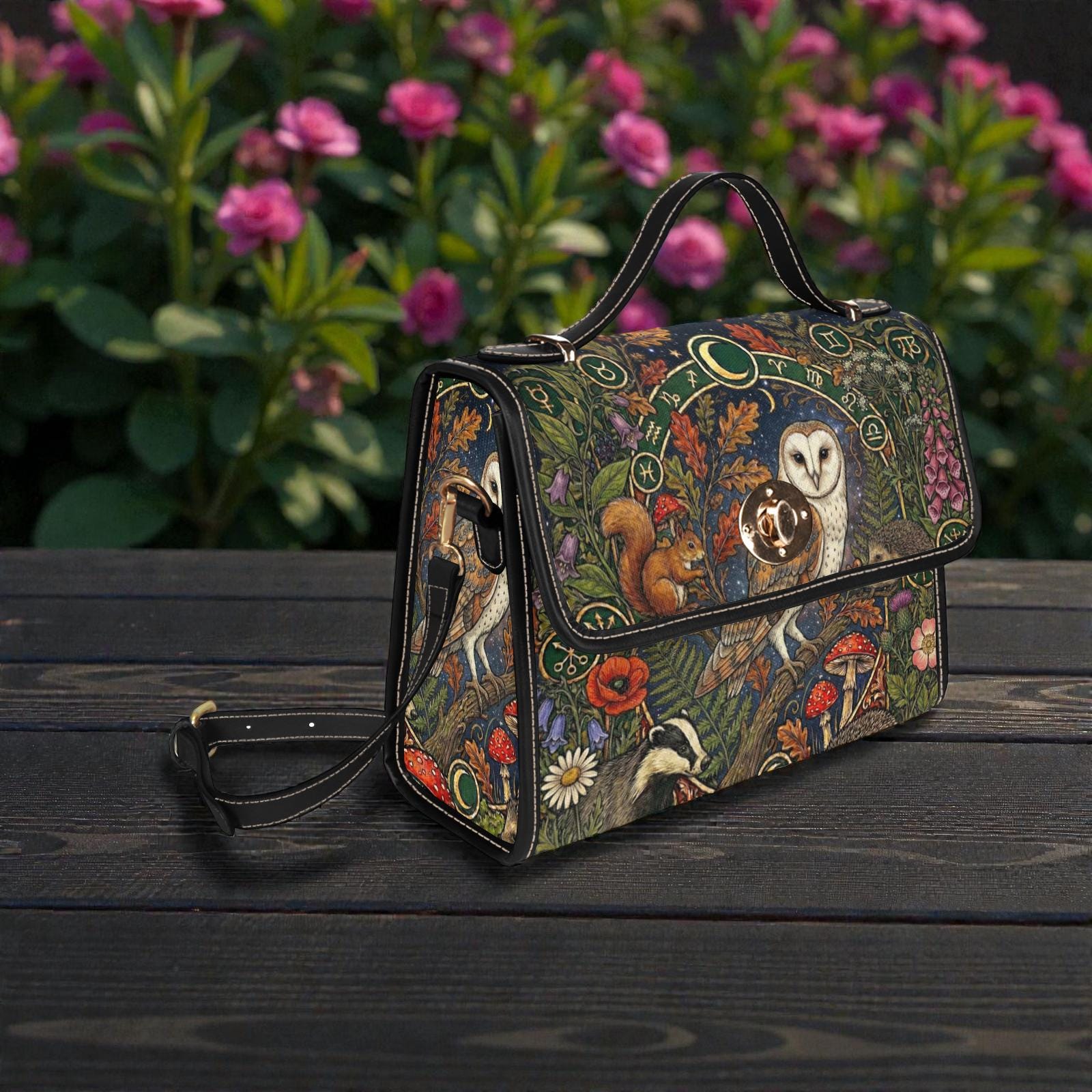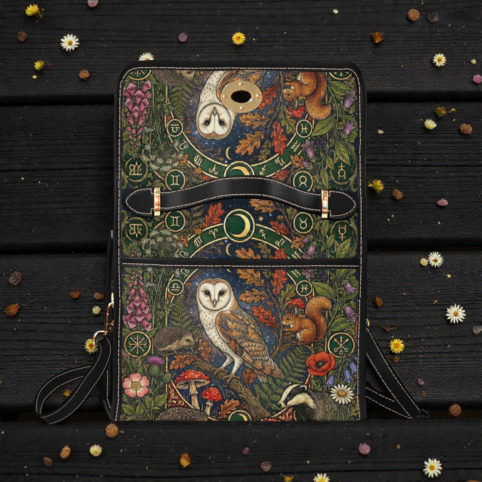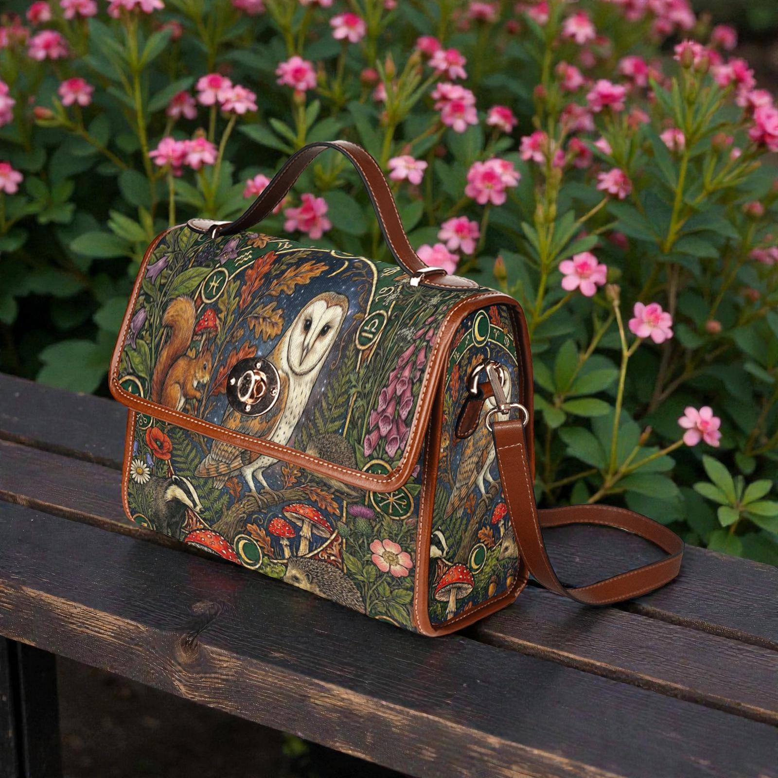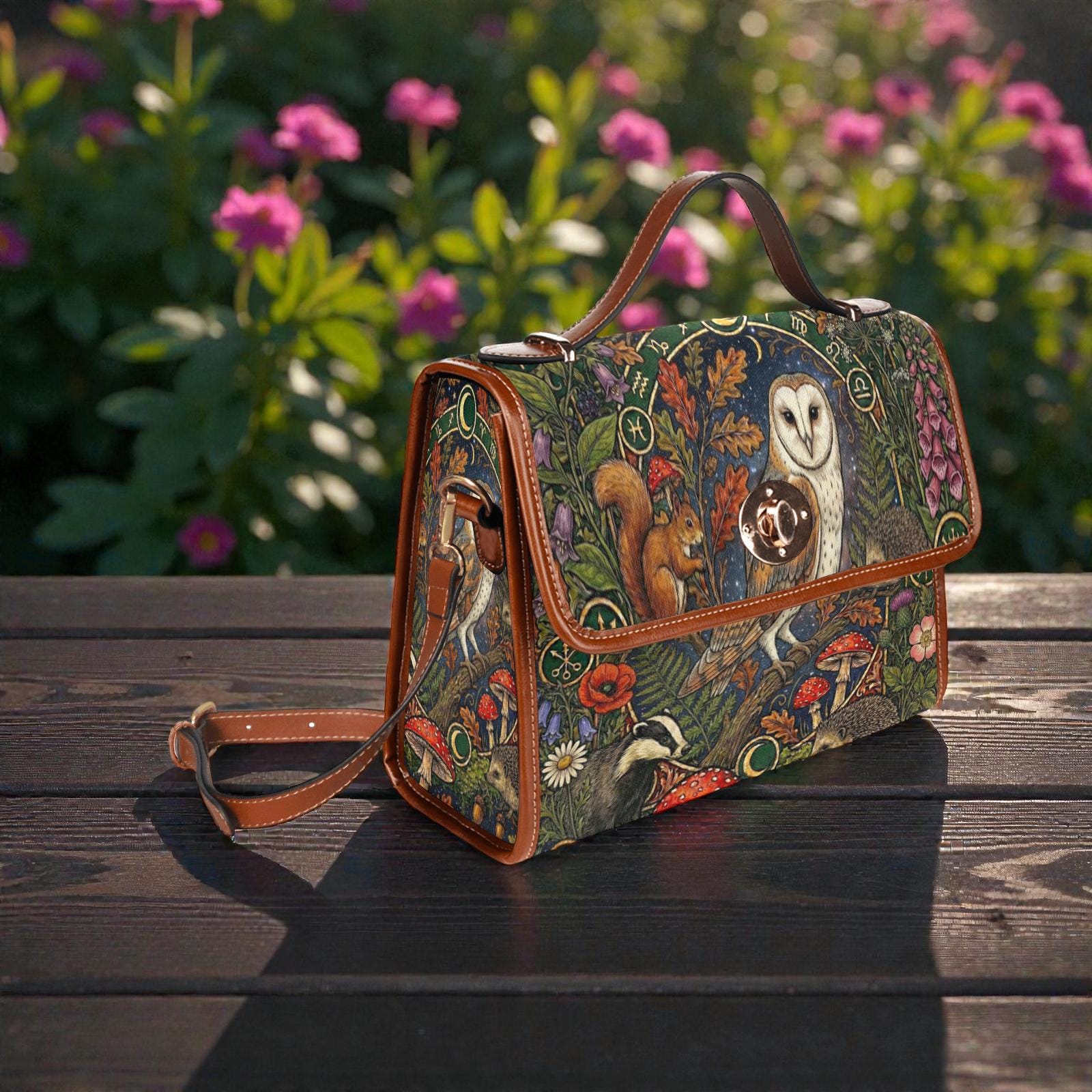 Mystic Owl Moon Canvas Satchel Bag, Cottagecore Astrology Handbag, Animal Woodland Crossbody Shoulder Bag, Boho hippies gift zipper wallet