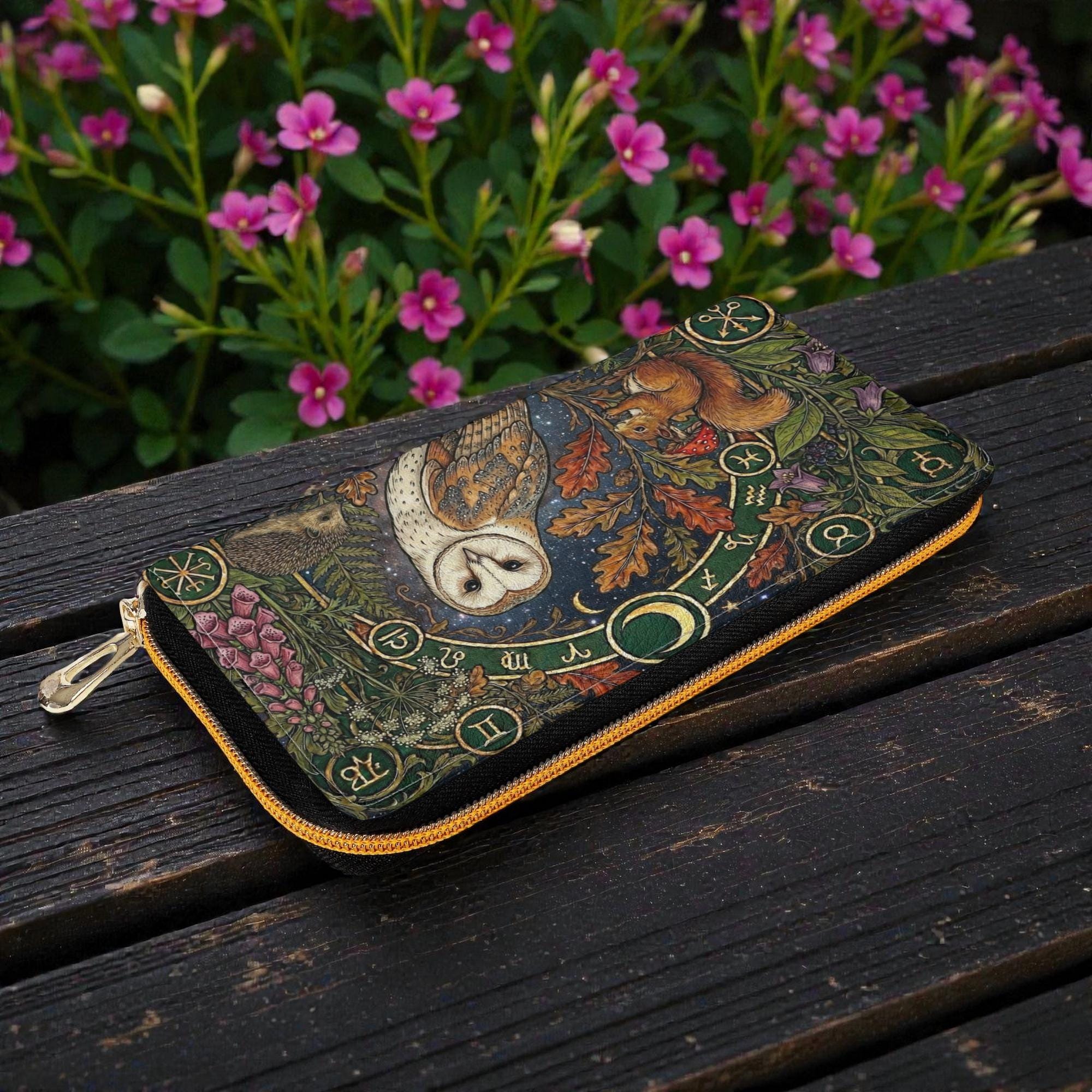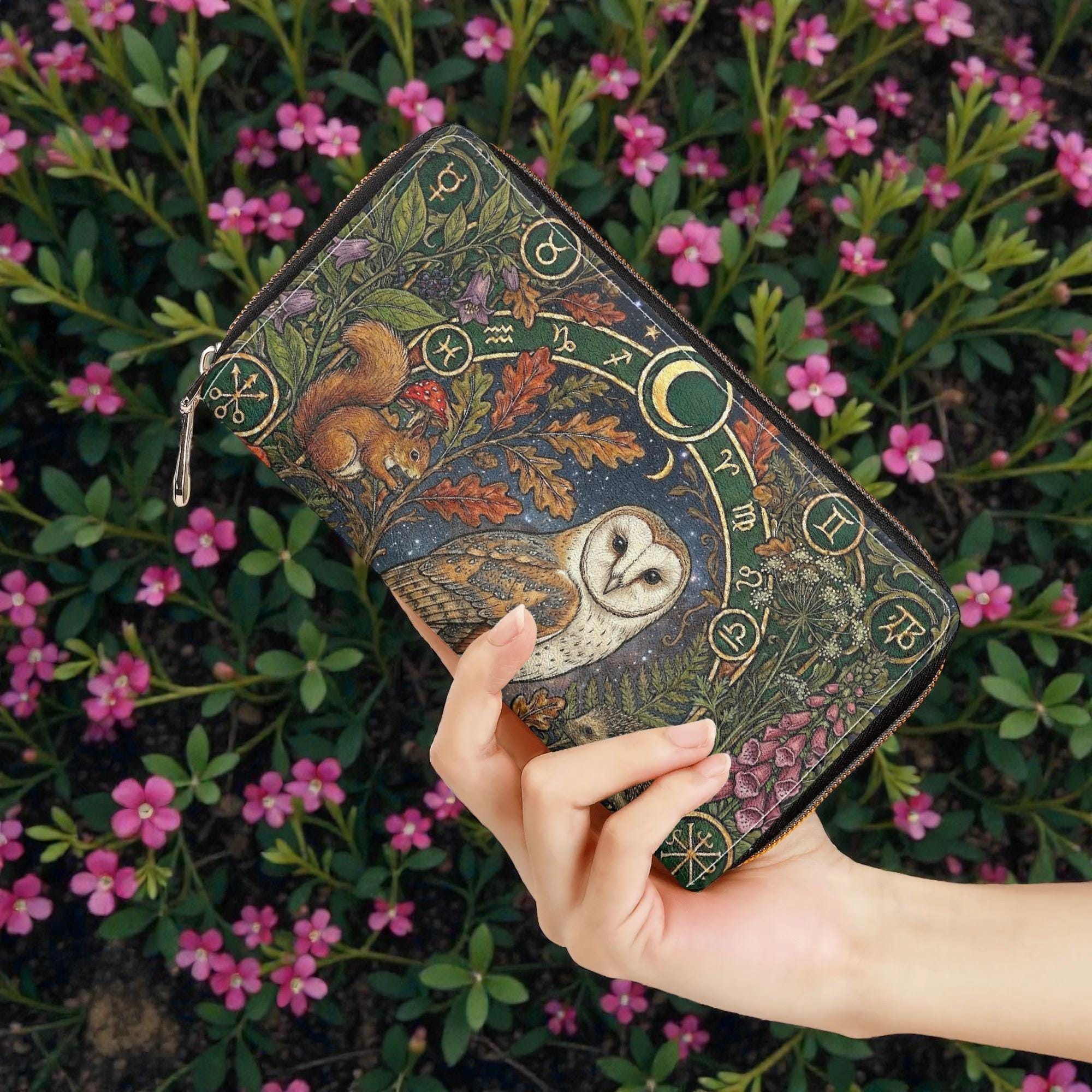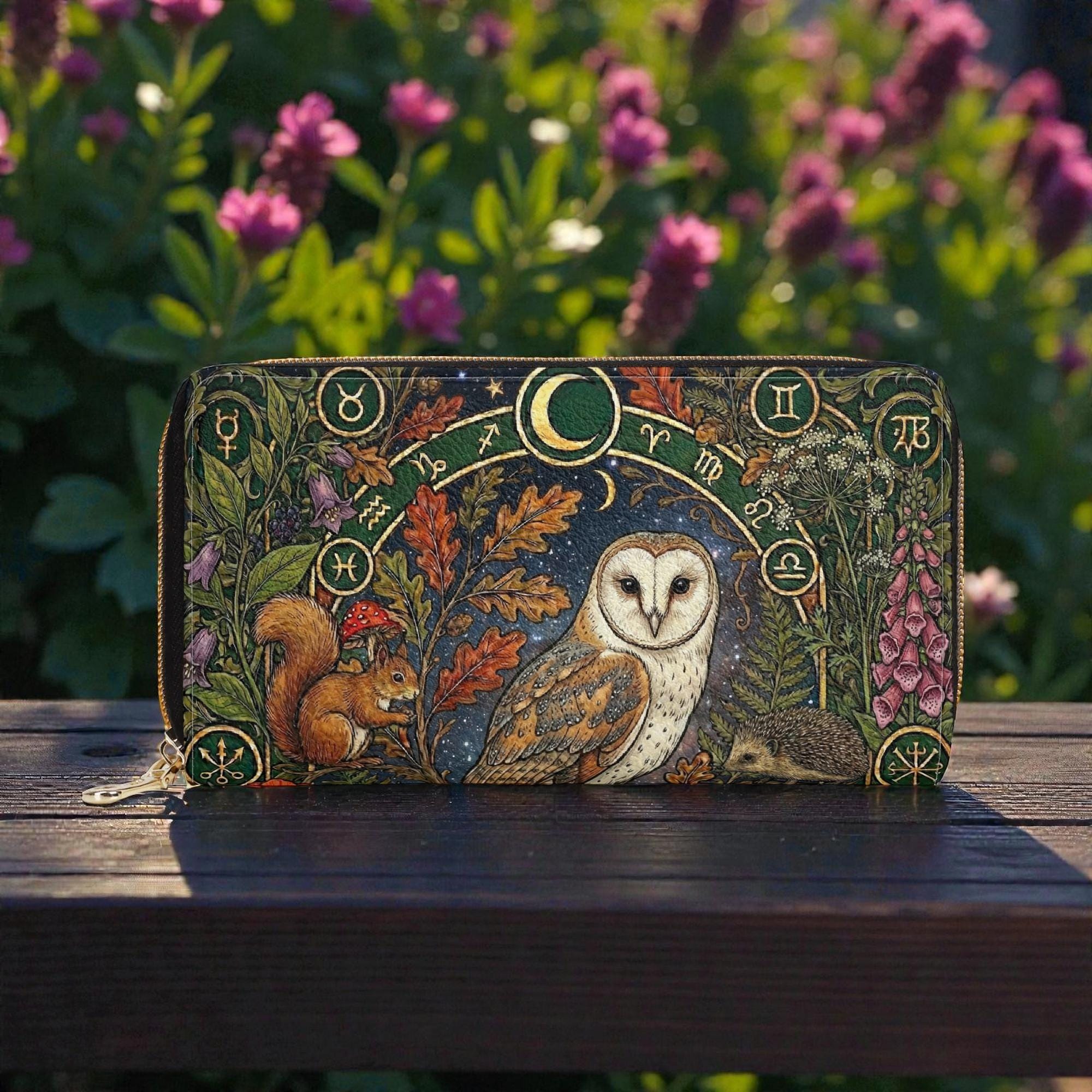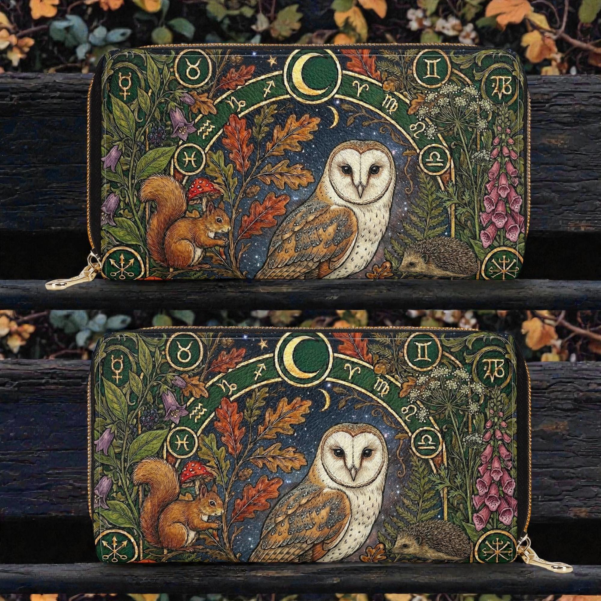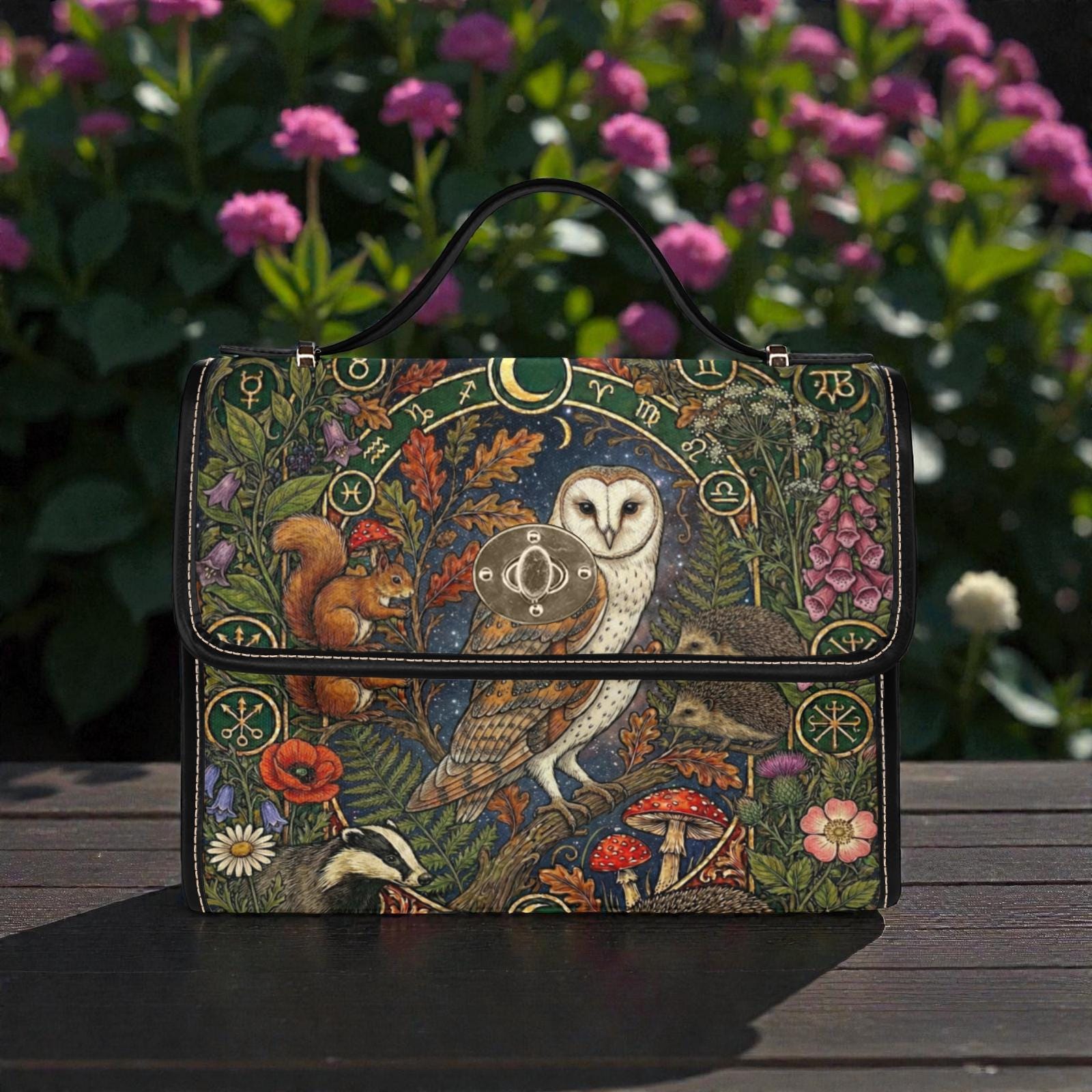 Mystic Owl Moon Canvas Satchel Bag, Cottagecore Astrology Handbag, Animal Woodland Crossbody Shoulder Bag, Boho hippies gift zipper wallet