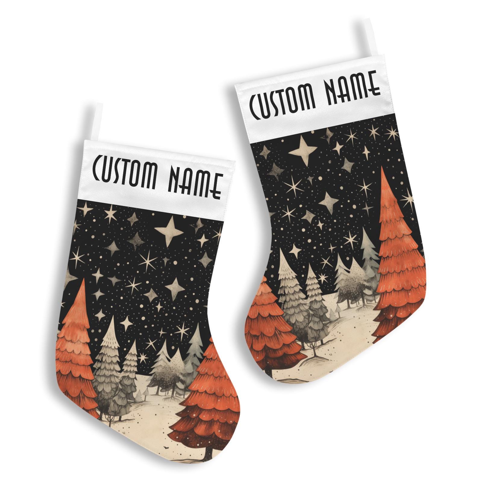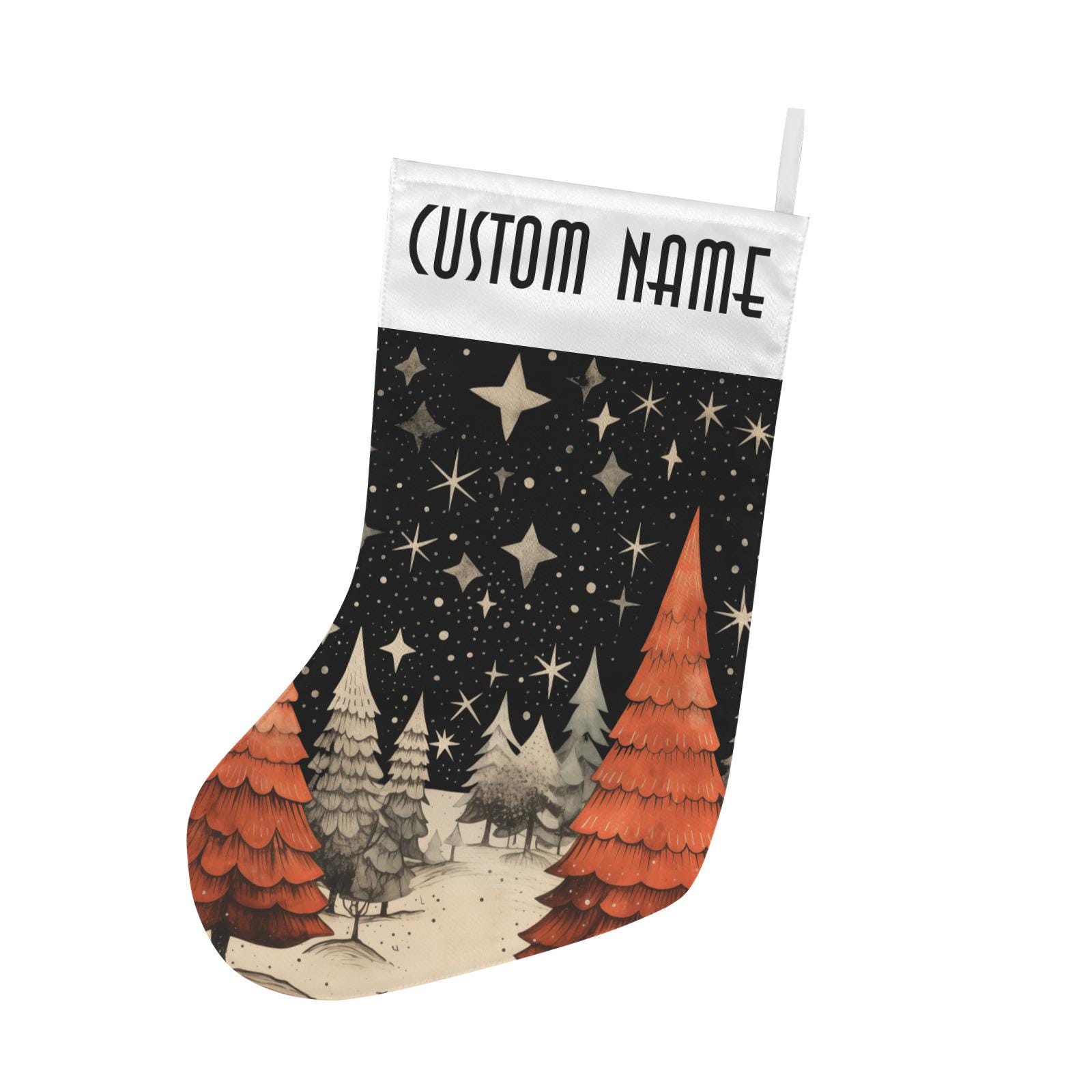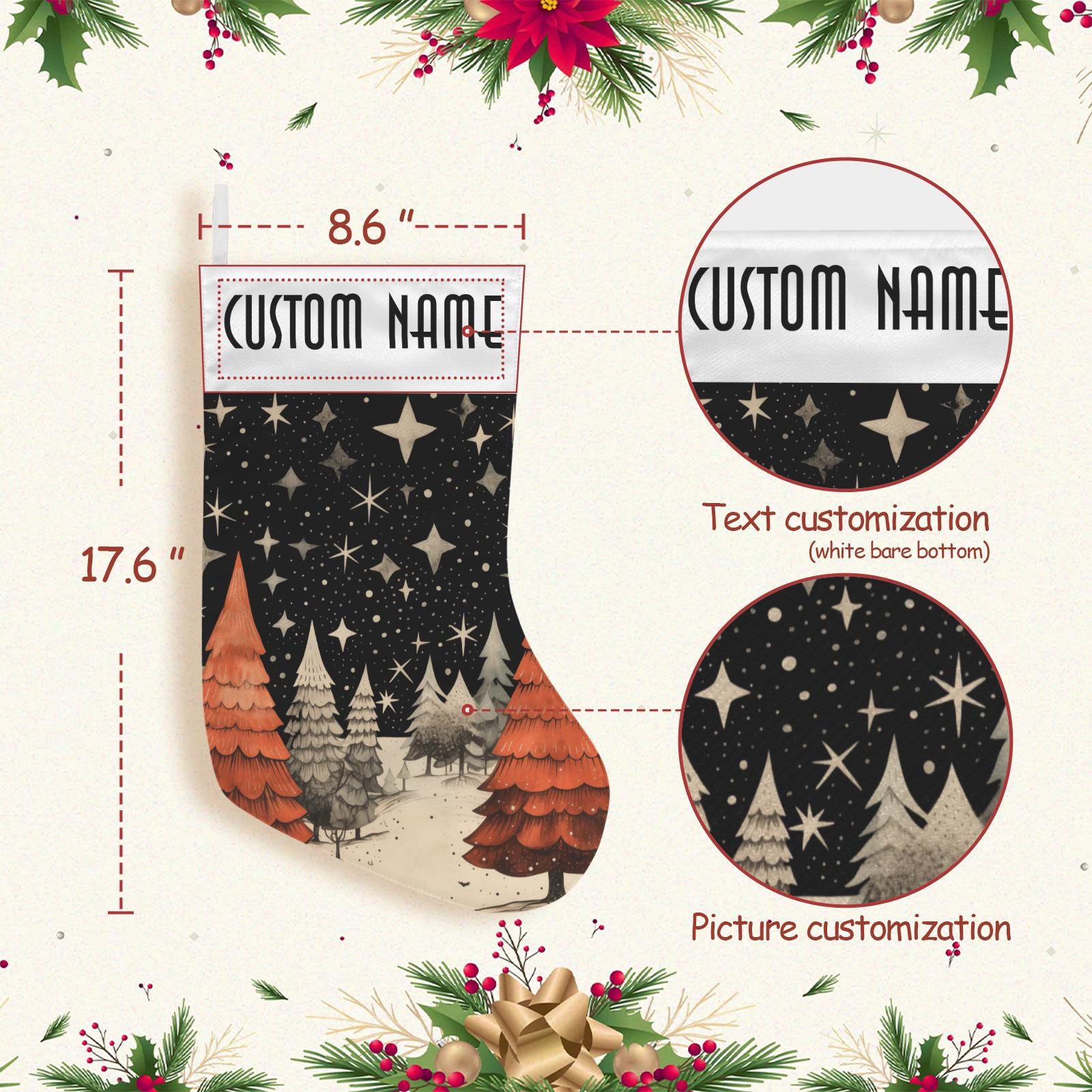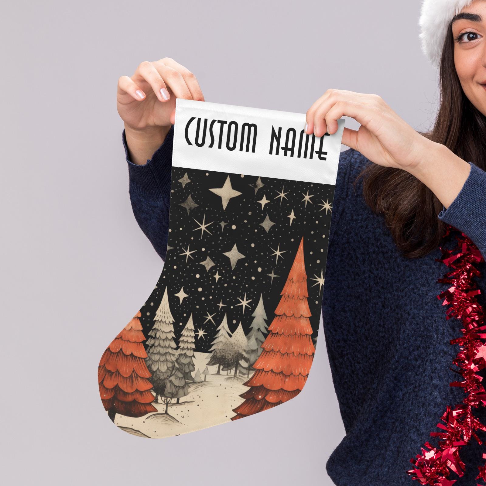 Starry Pine Forest Xmas Stocking, Cute Christmas Forest Custom Stuffer, Cottagecore Fairycore Christmas Stocking, dark academia witchy gift