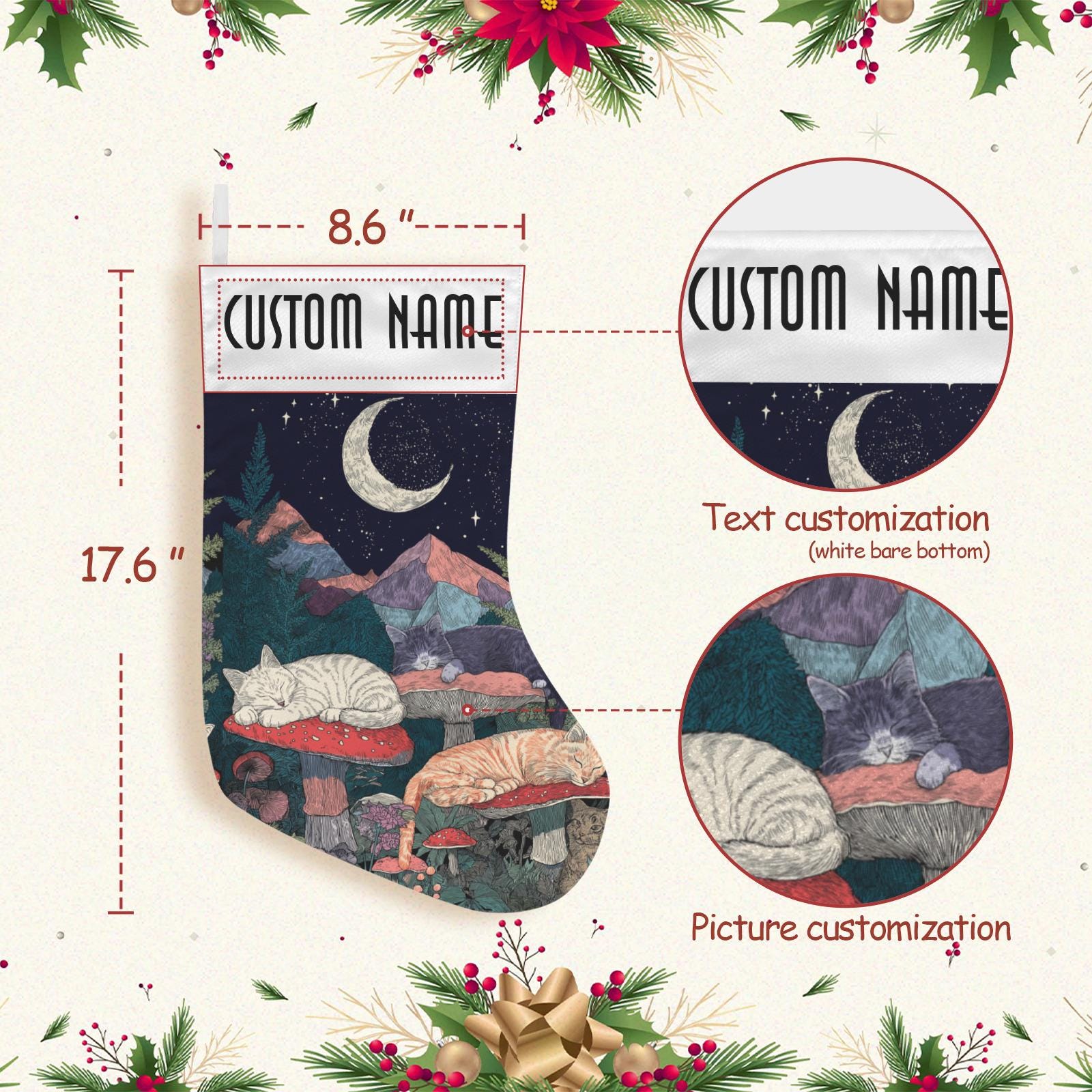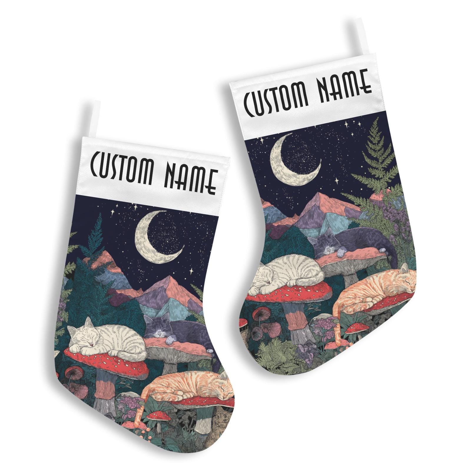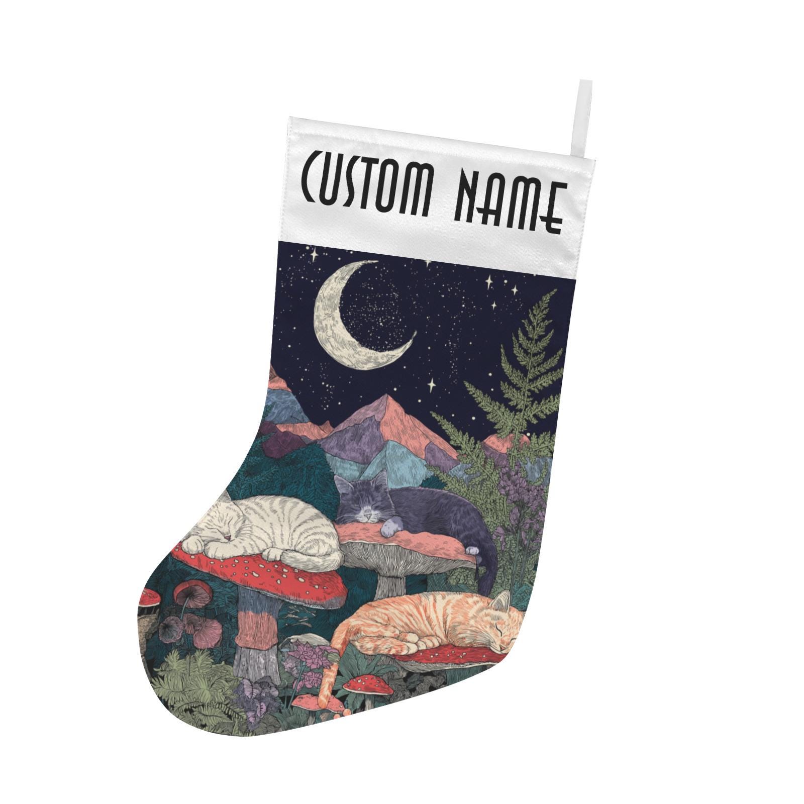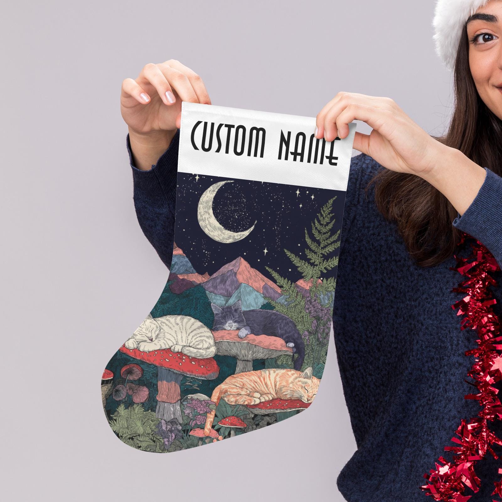 Custom Christmas Stocking, Mushroom Sleeping Cats Custom Stuffer, Cottagecore Fairy Christmas Stocking, dark academia witchy gift