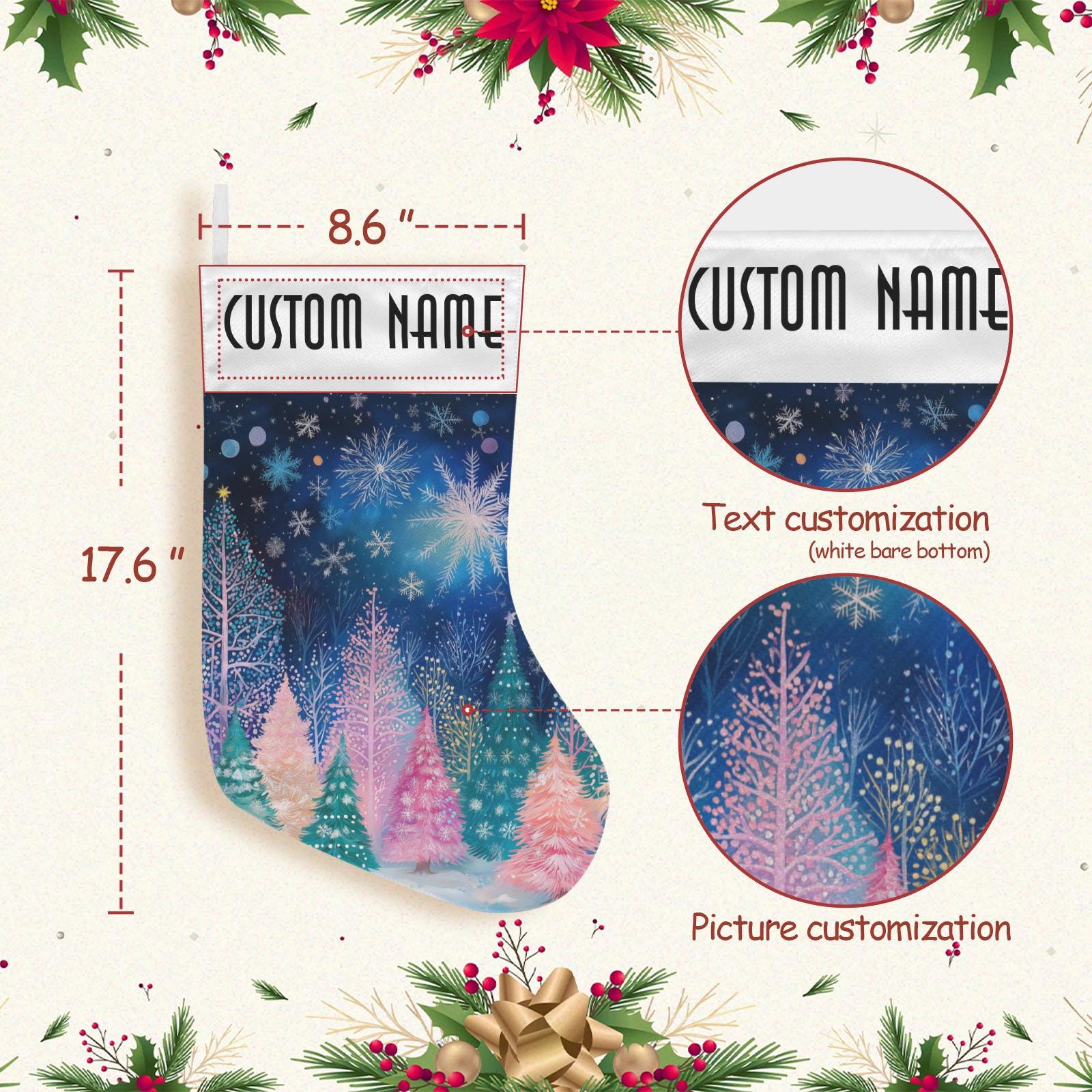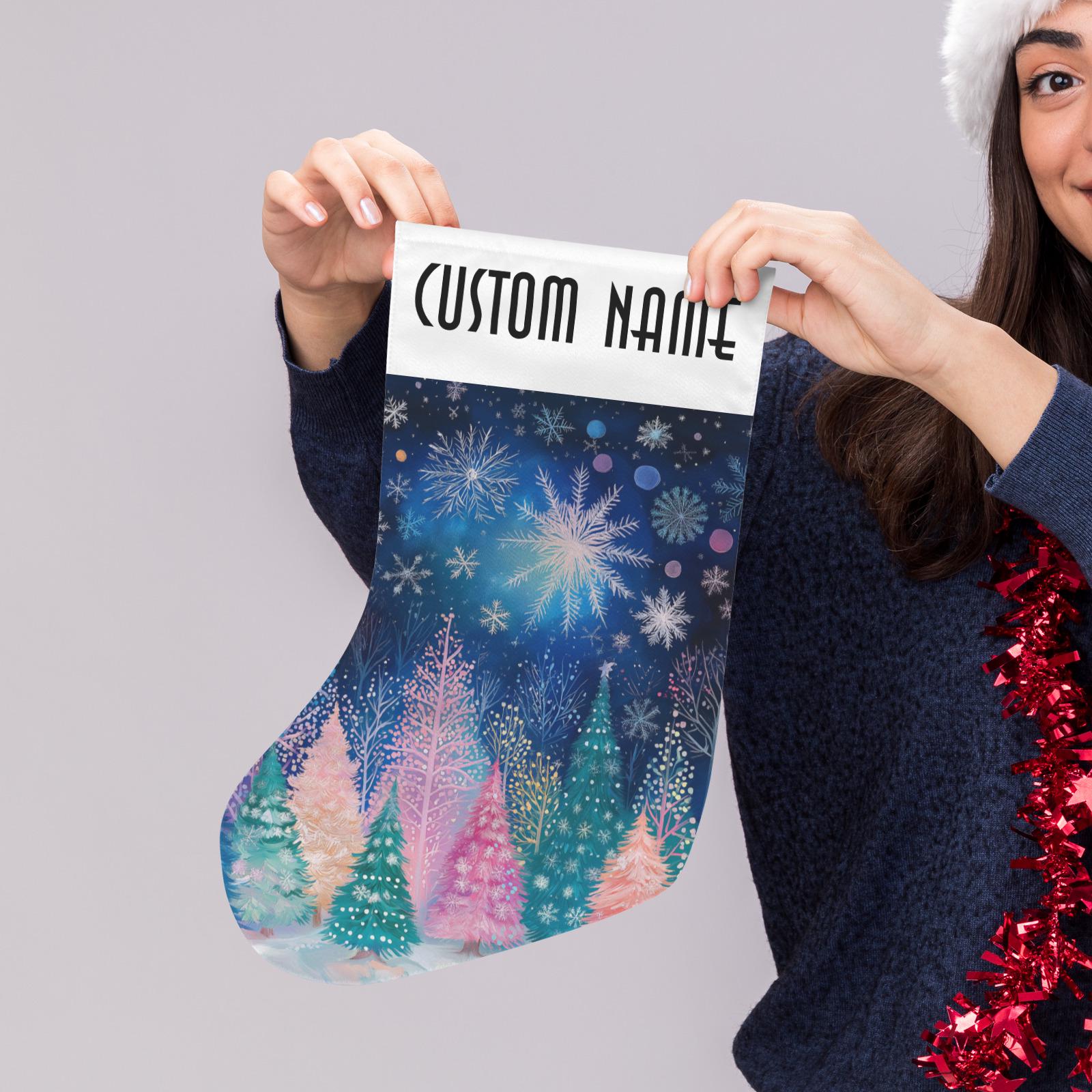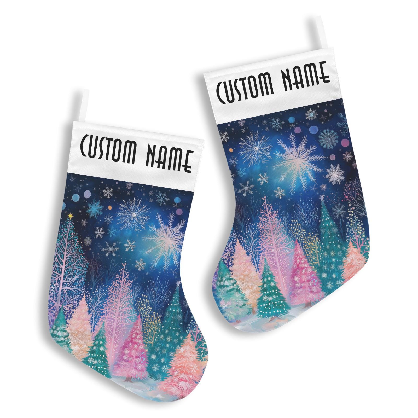 Custom Pine Forest Christmas Stocking, Colorful Christmas Custom Stuffer, Cottagecore Fairycore Christmas Stocking, Kawaii witch xmas gift