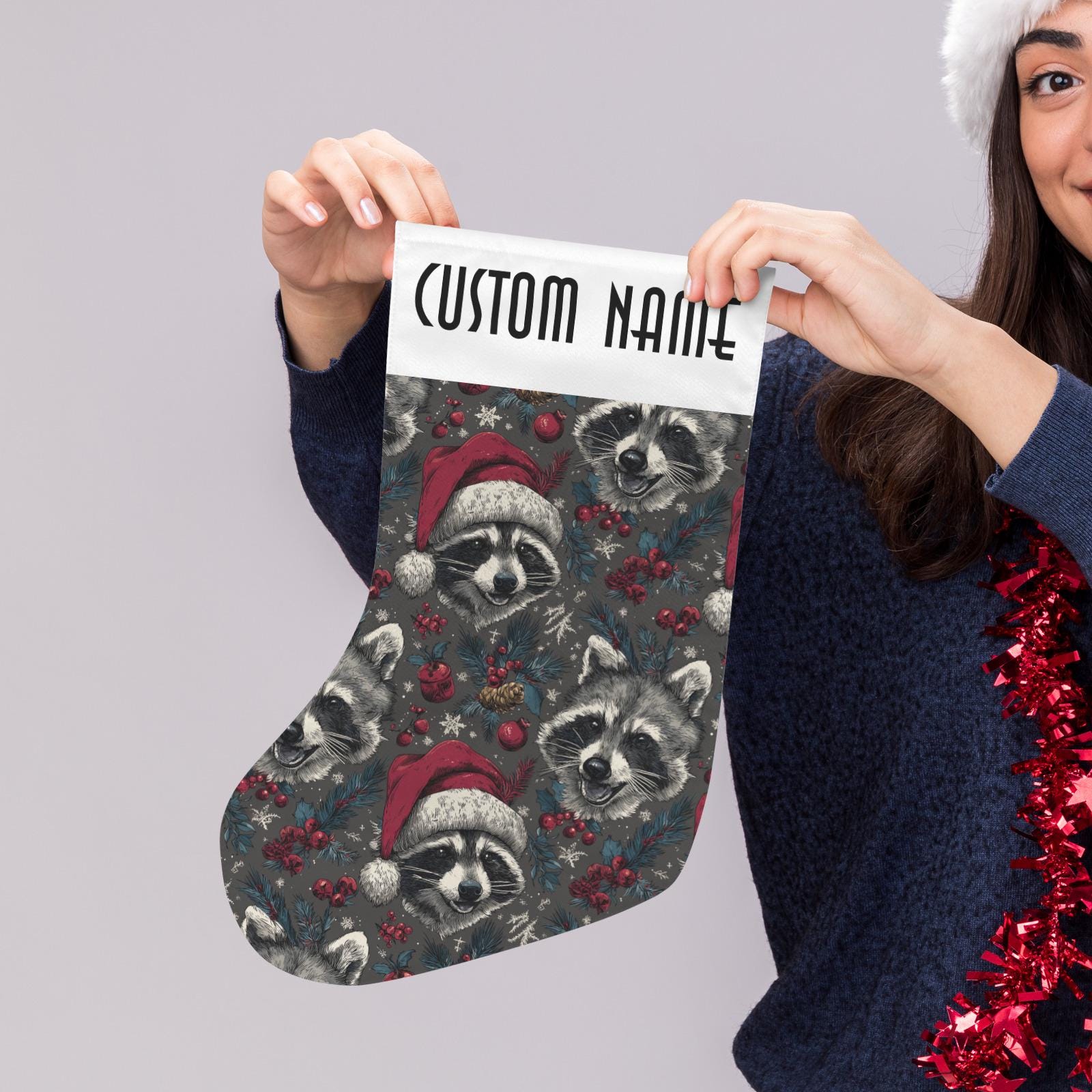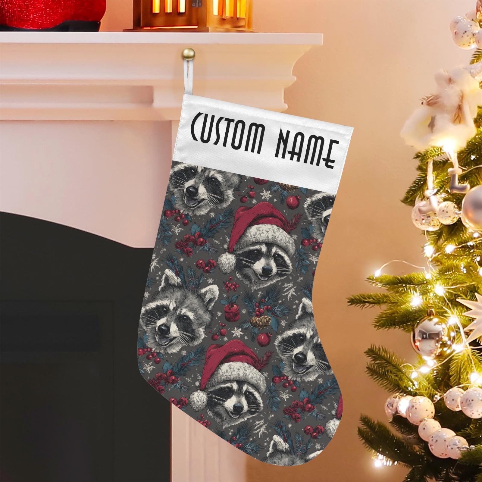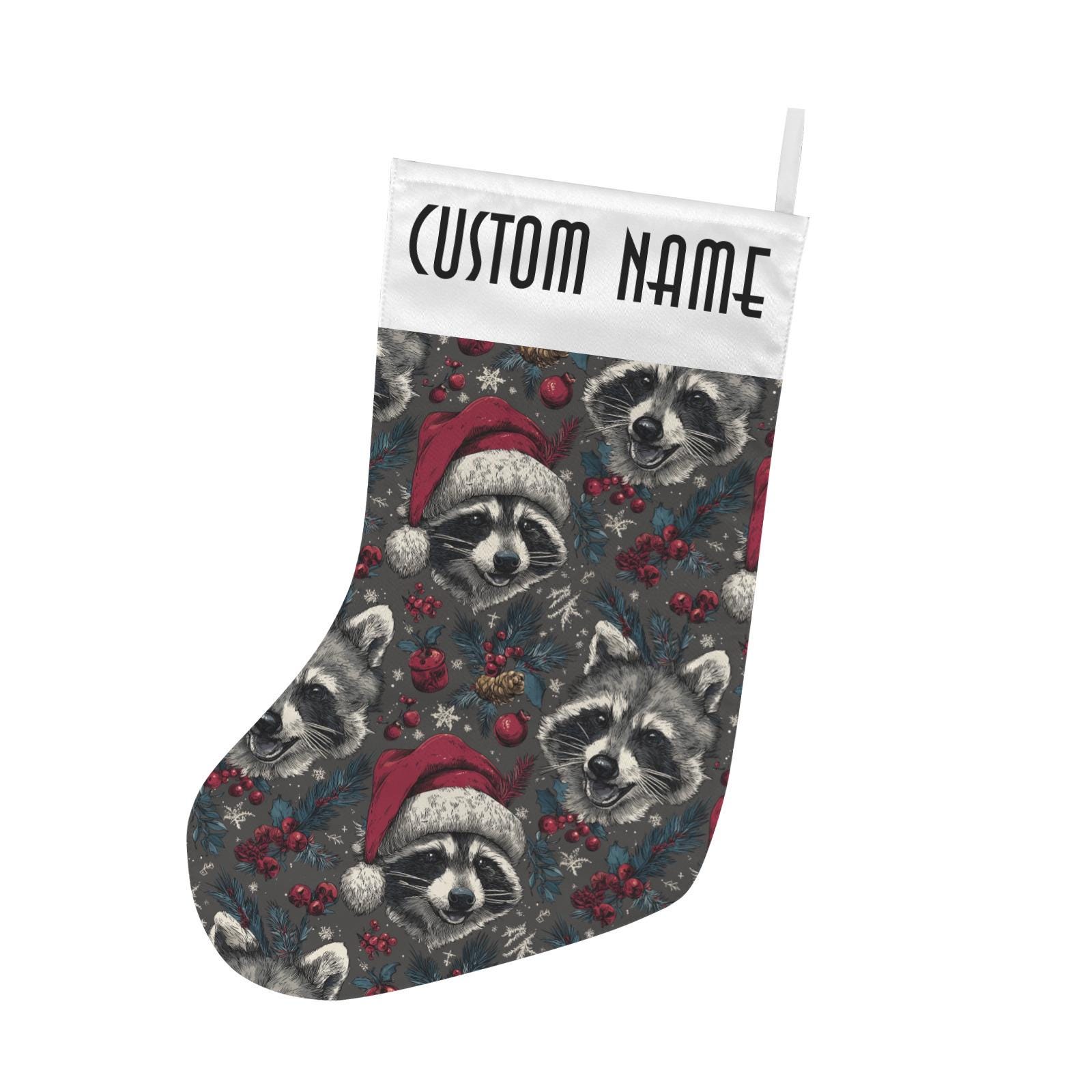 Custom Christmas Stocking, Cute Santa Raccoon Custom Stuffer, Cottagecore Goblincore Christmas Stocking, dark academia witchy gift