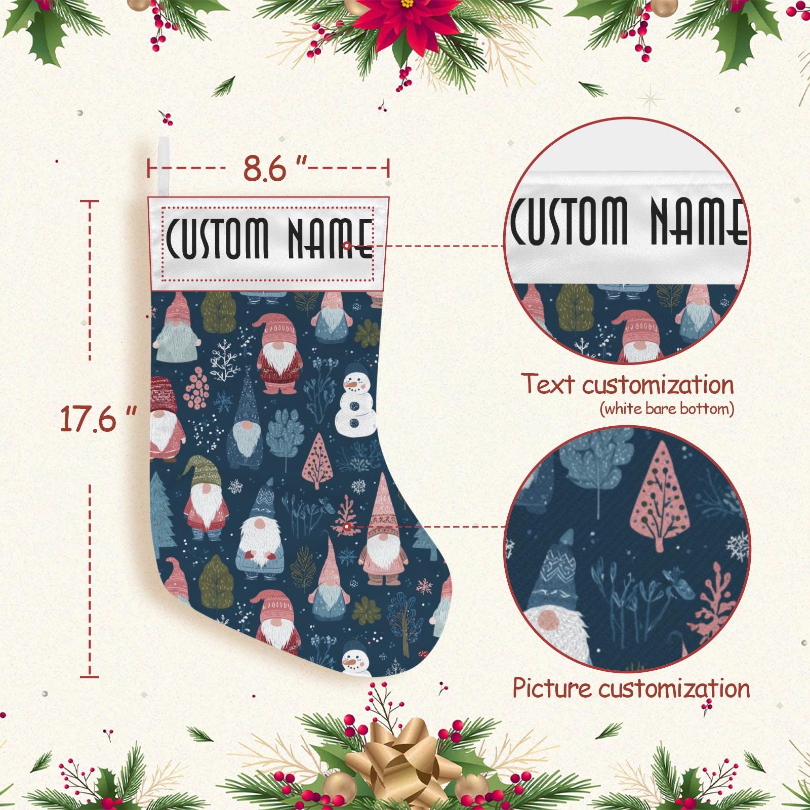 Dimensions: 18.9"(L) × 9"(W) with a 4.3" high white area at the top of the stocking.