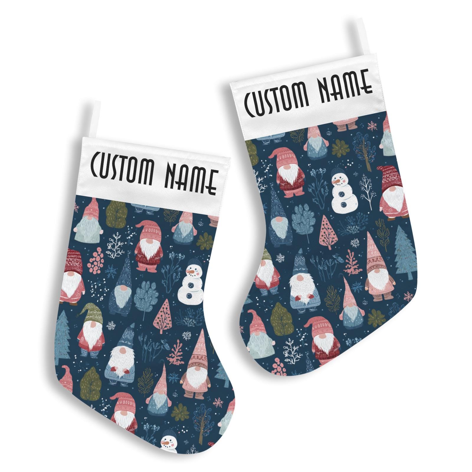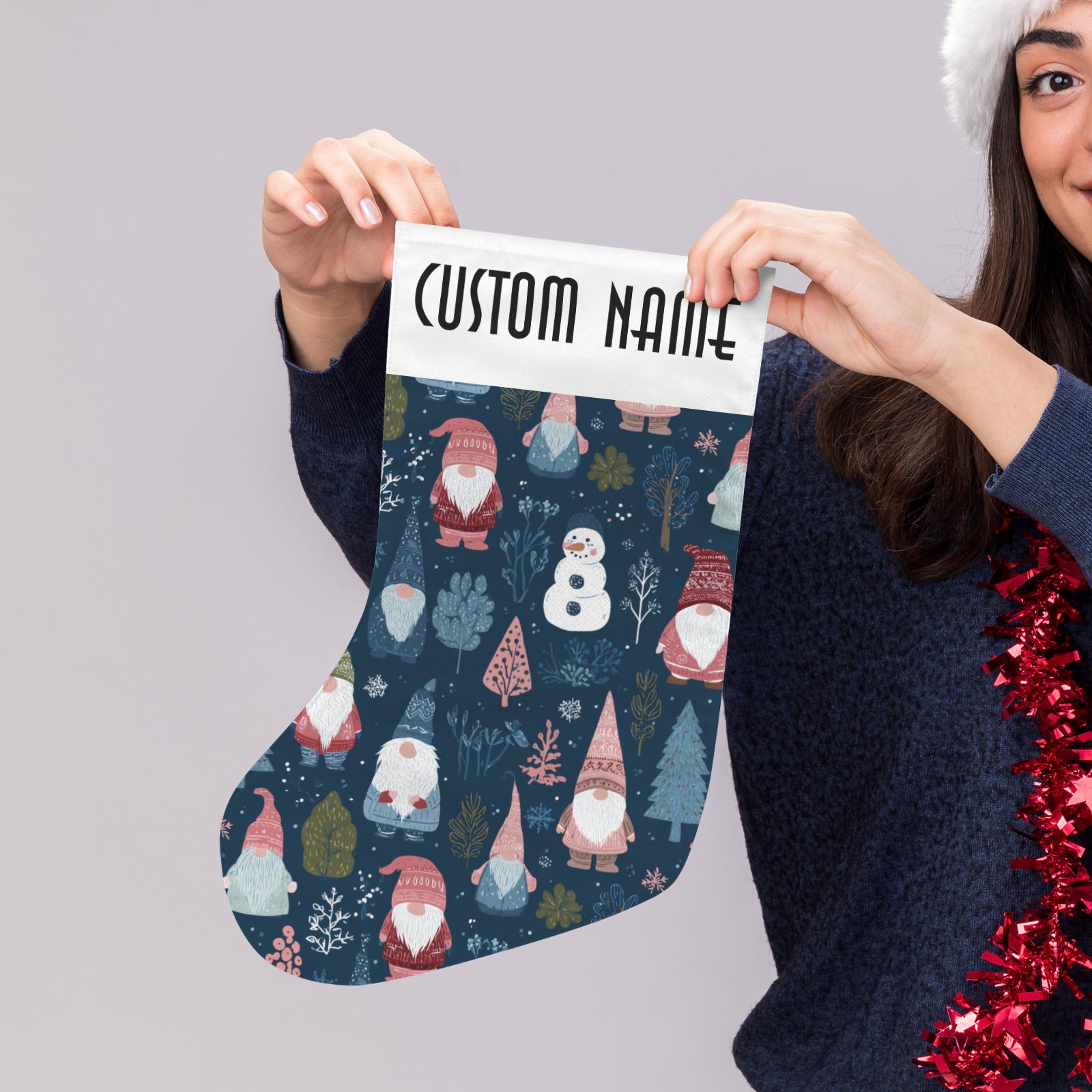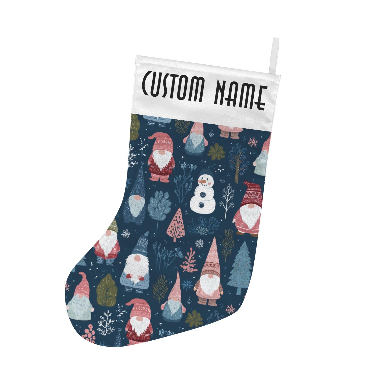 Scandinavian Gnomes and Snowman Christmas Stocking, Cute Custom Stuffer, Xmas Goblincore Christmas Stocking, boho christmas home gift
