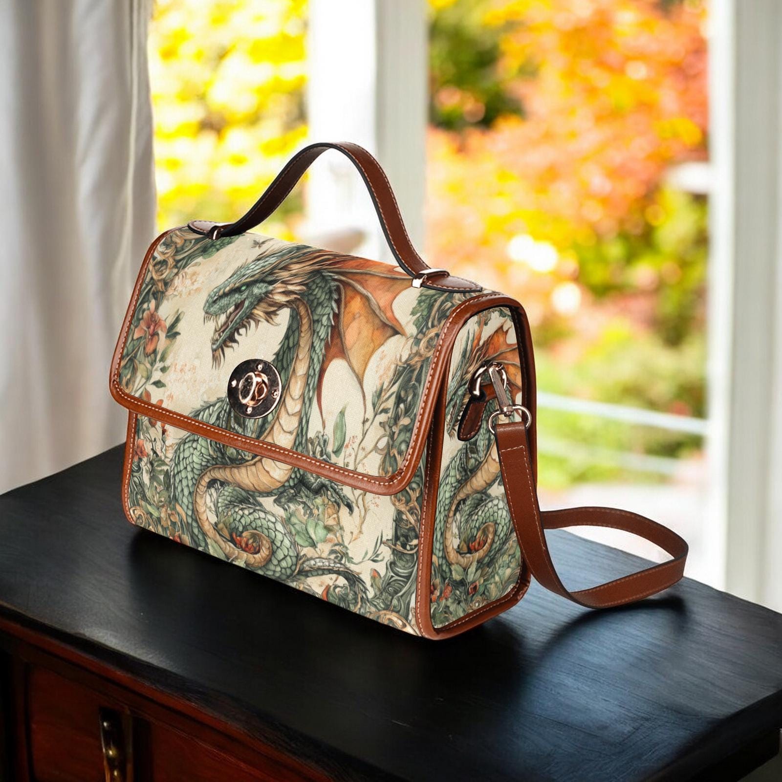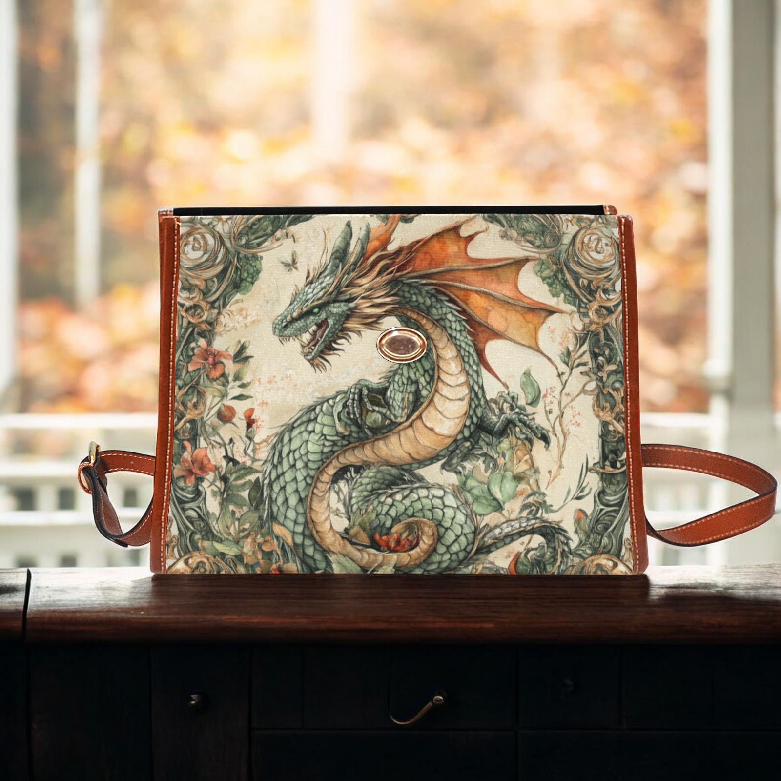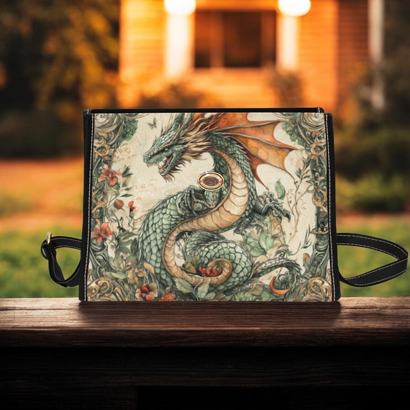 Medieval Green Dragon Satchel, Boho Mystical Dragon Crossbody bag, Enchanted Dragon Goblincore Handbag, Ren Faire Dragon Aesthetic Purse