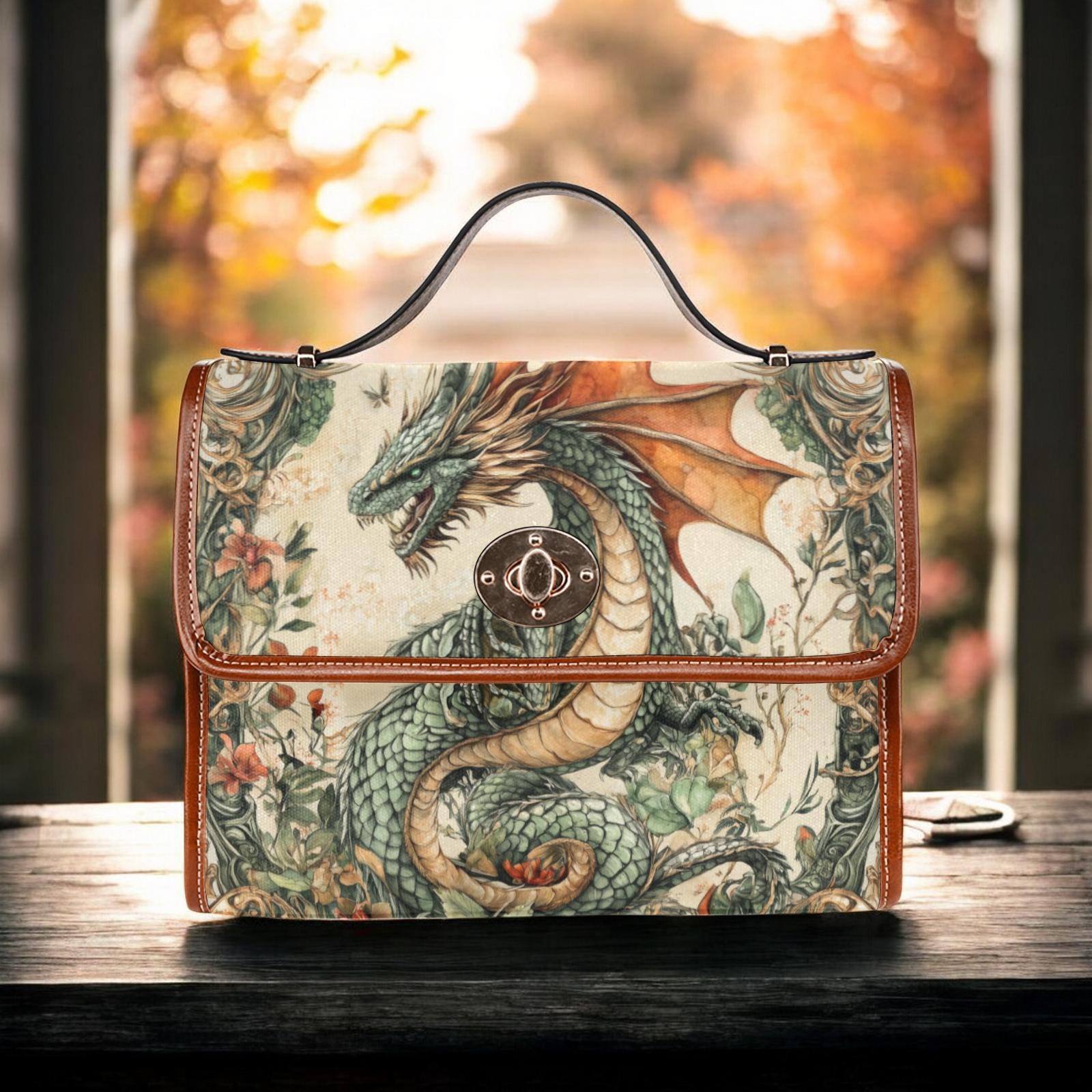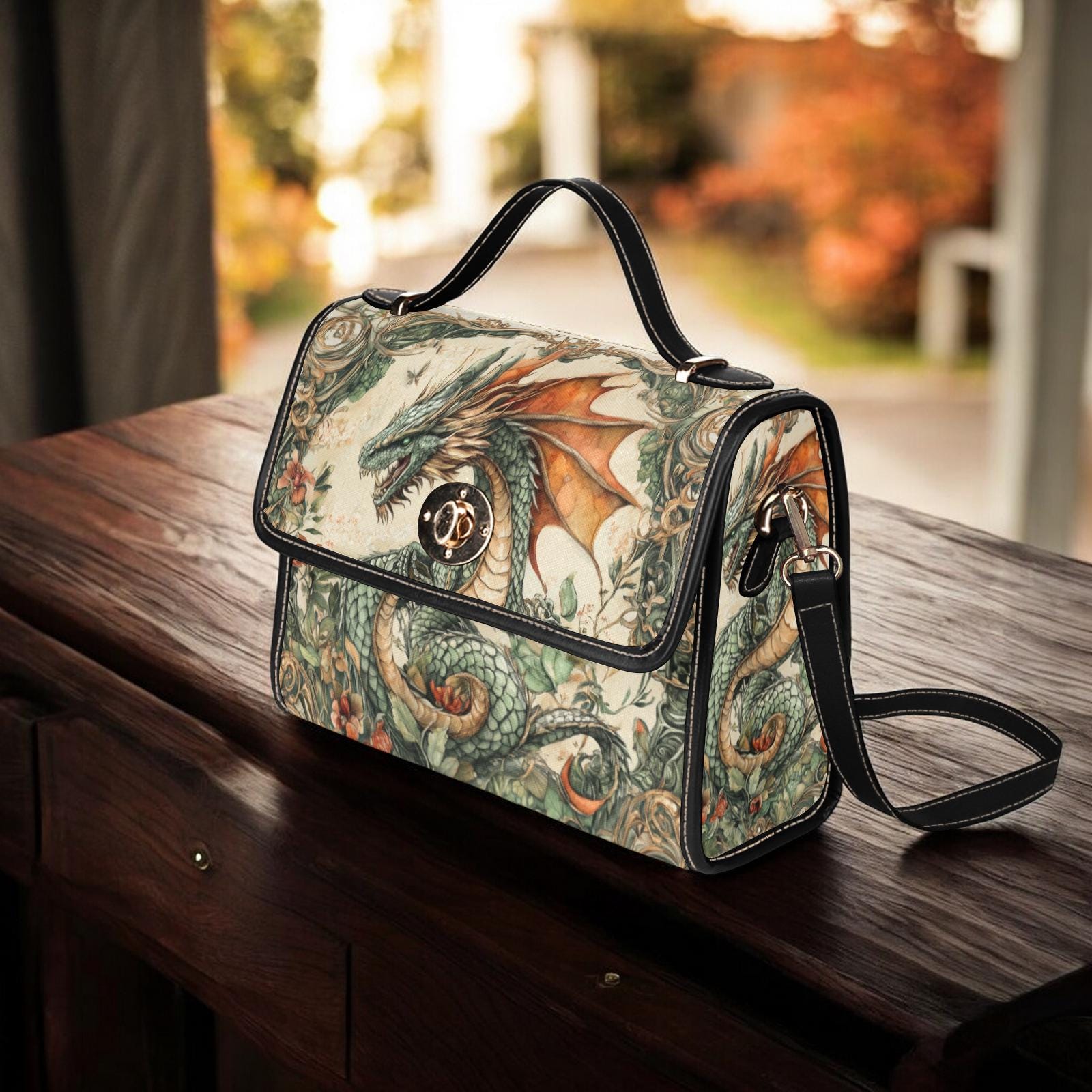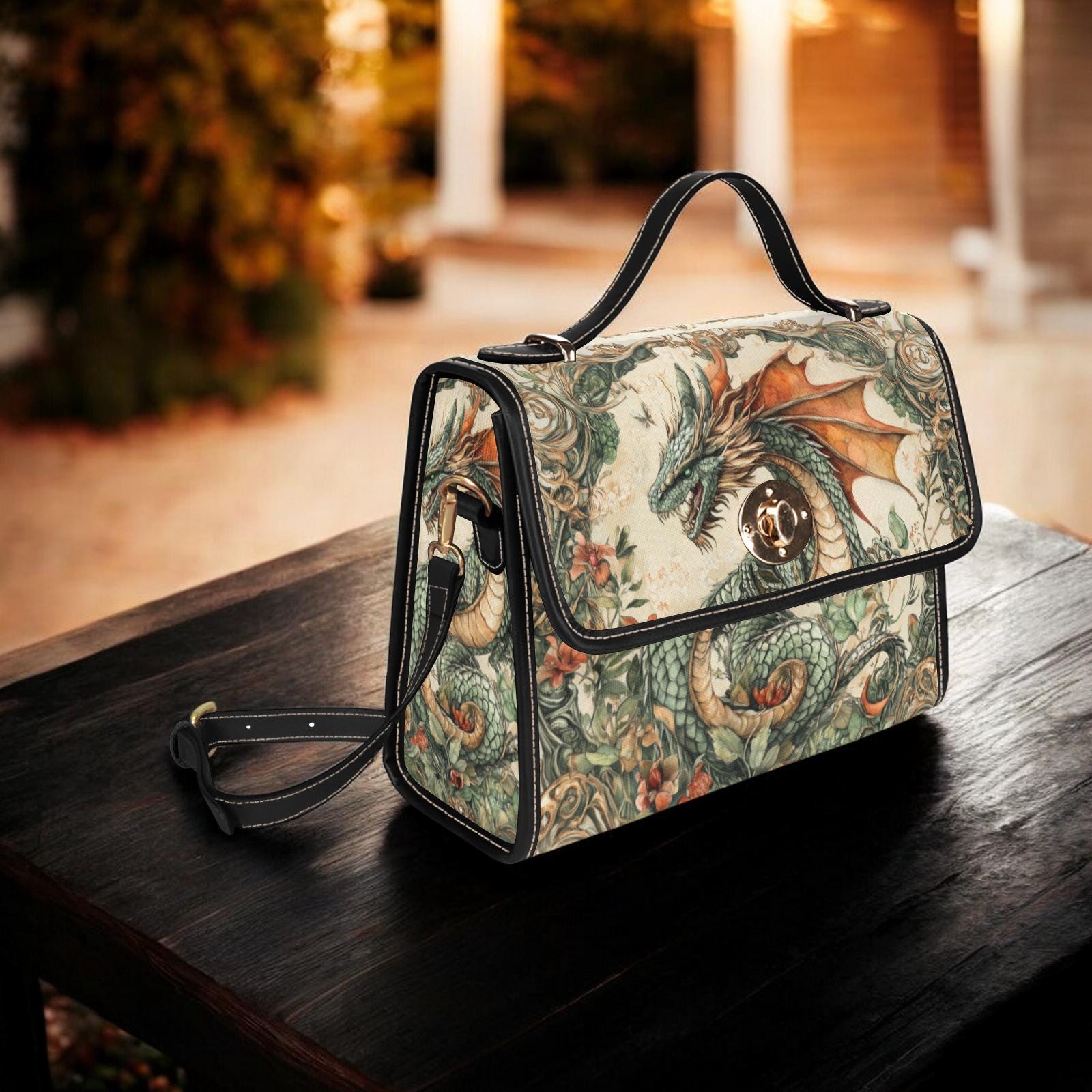 Medieval Green Dragon Satchel, Boho Mystical Dragon Crossbody bag, Enchanted Dragon Goblincore Handbag, Ren Faire Dragon Aesthetic Purse