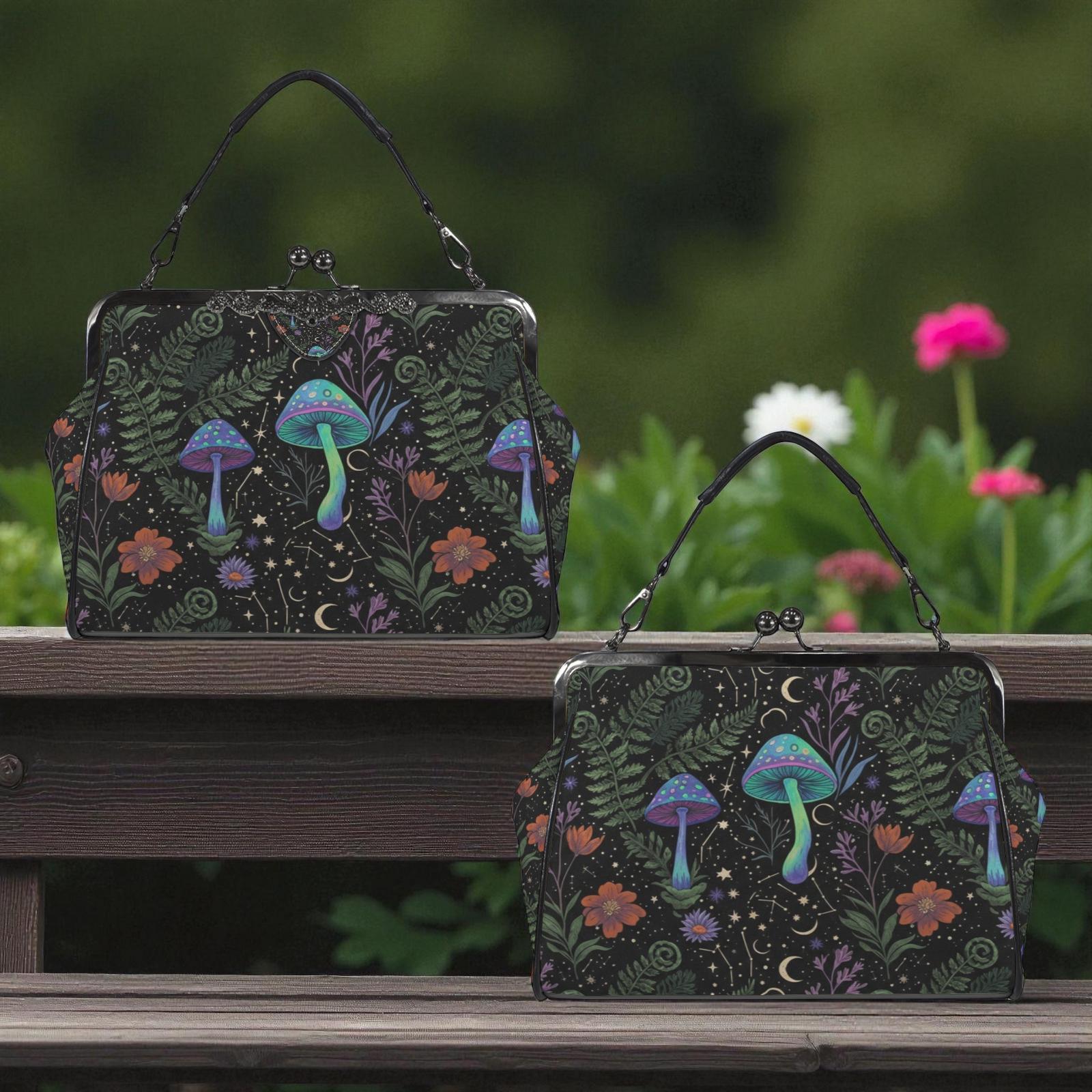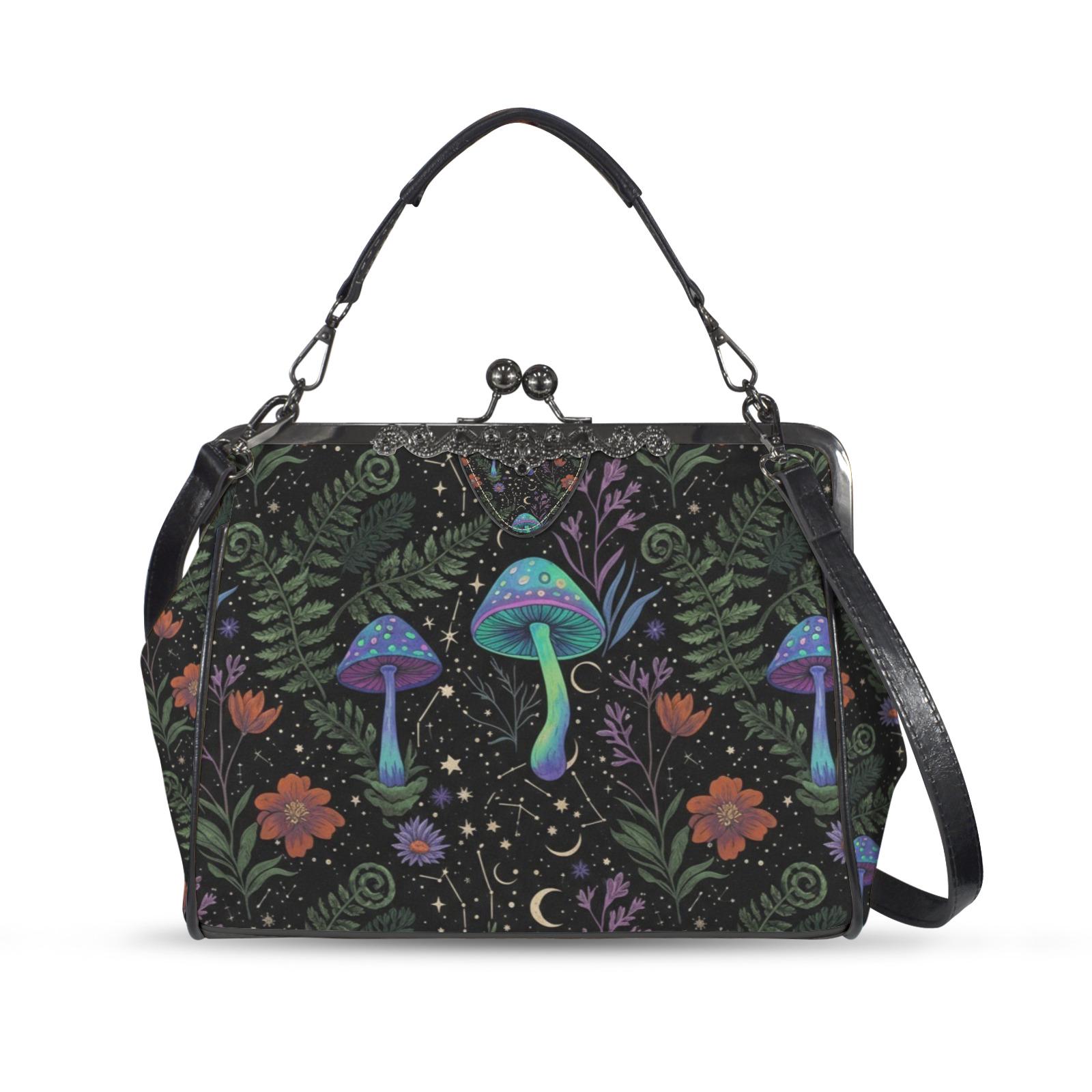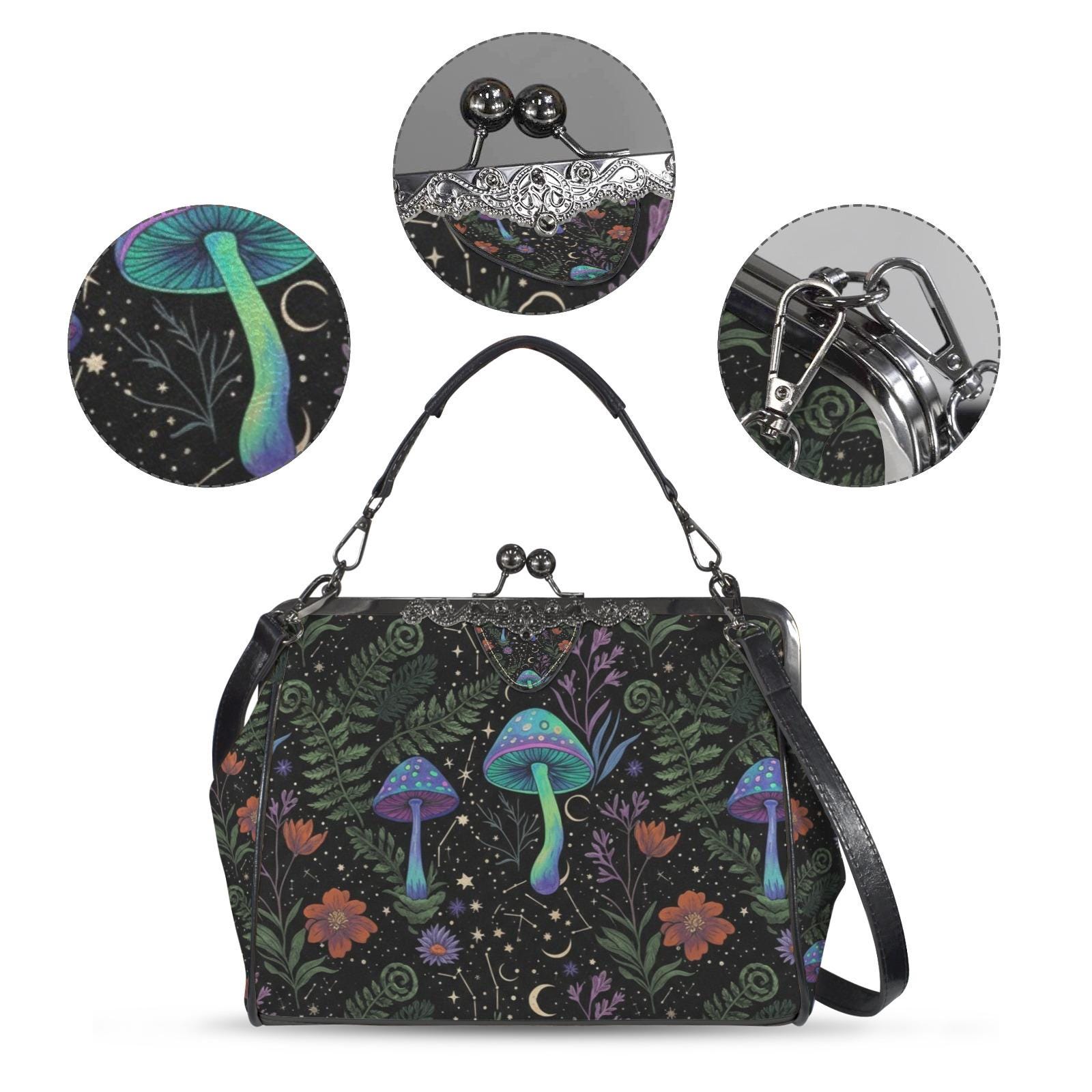 Cottagecore Mushroom Kisslock Bag - Vegan Leather Witchy Kisslock Purse, Witchy Crossed body Mushroom purse, goth bag, hippies boho gift