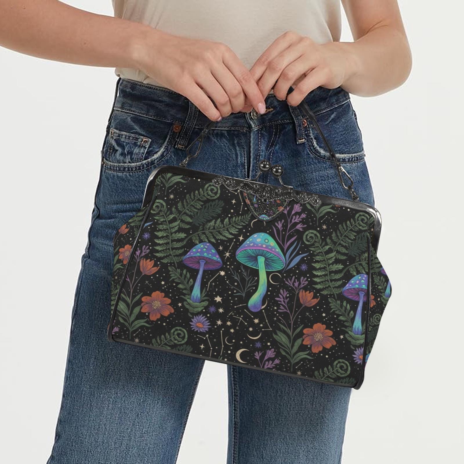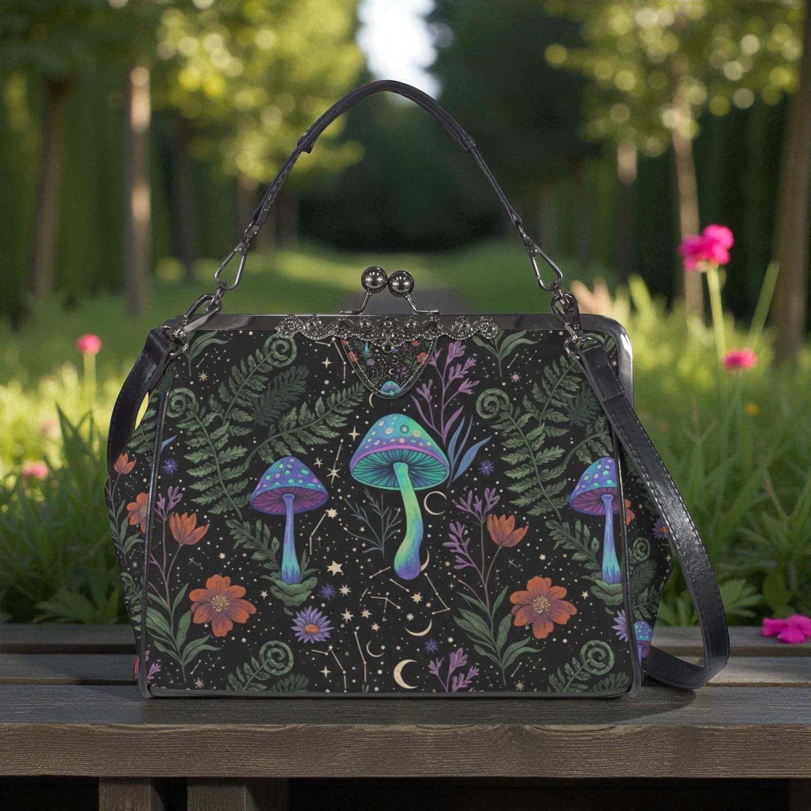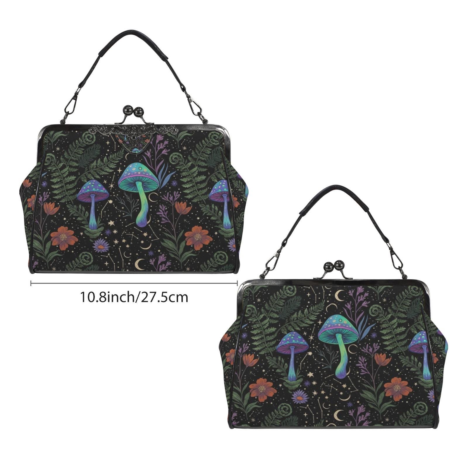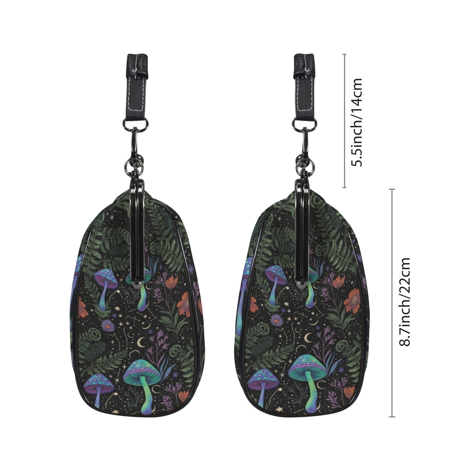 Cottagecore Mushroom Kisslock Bag - Vegan Leather Witchy Kisslock Purse, Witchy Crossed body Mushroom purse, goth bag, hippies boho gift