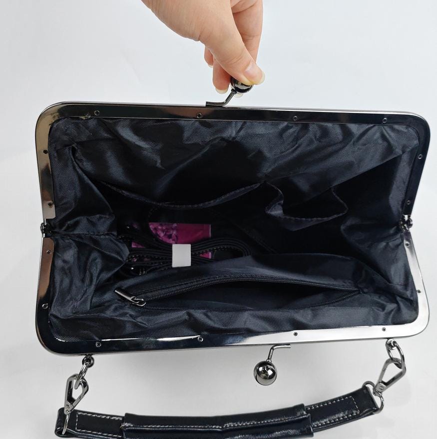 This stylish kisslock bag is the perfect accessory for a variety of occasions, from elegant evening events and weddings to formal gatherings and vintage-themed parties. Its timeless design also makes it a chic choice for casual day outings, adding a touch of sophistication to any look.