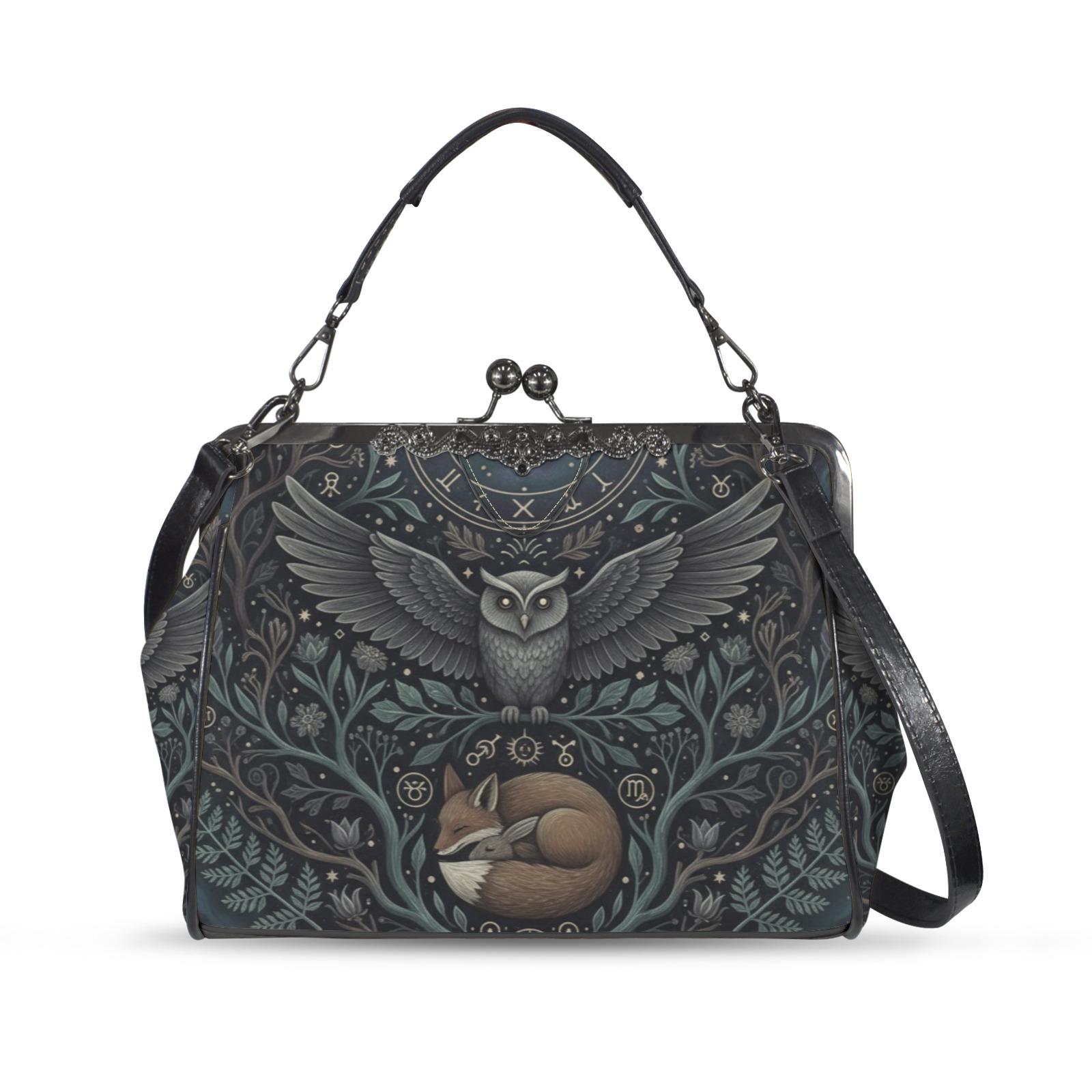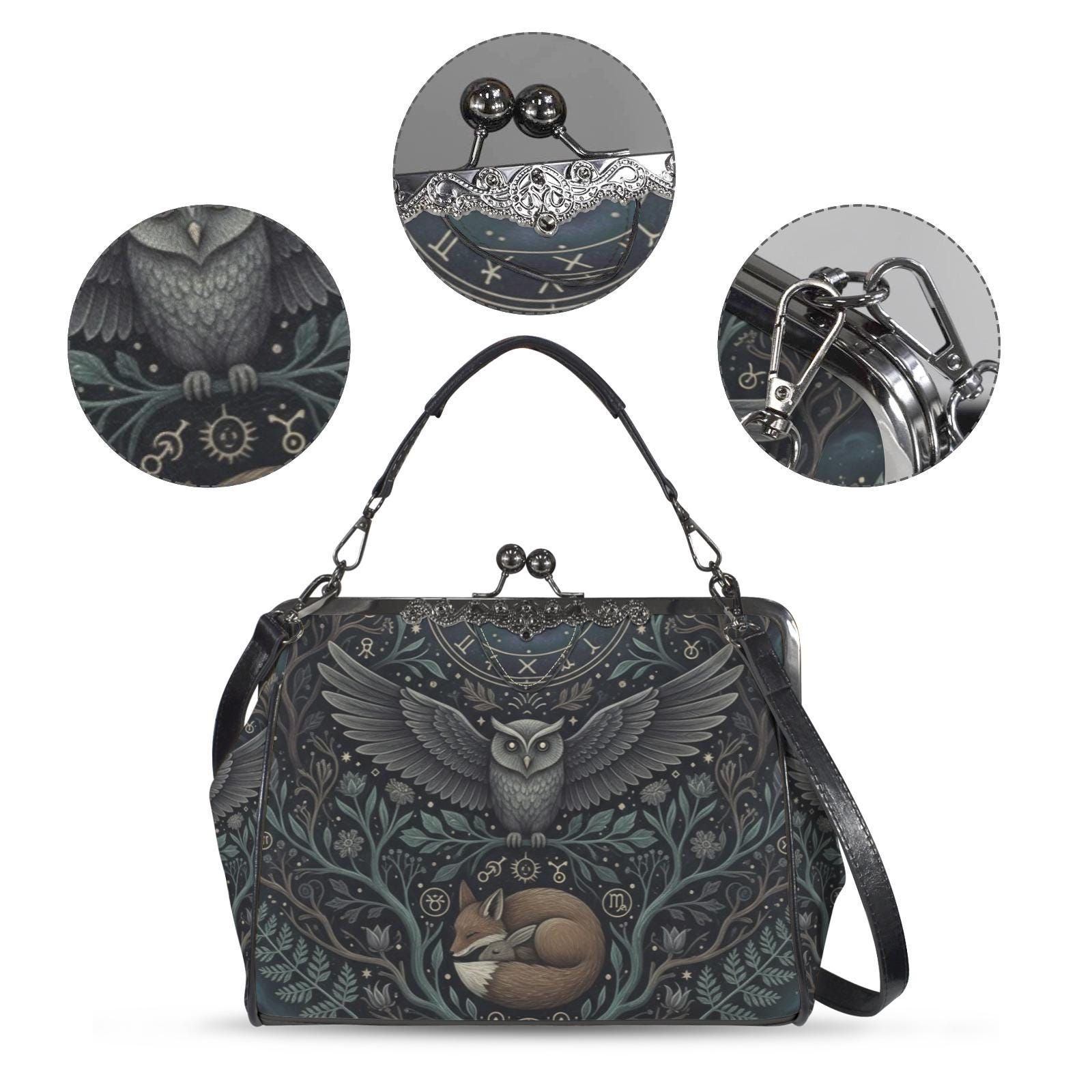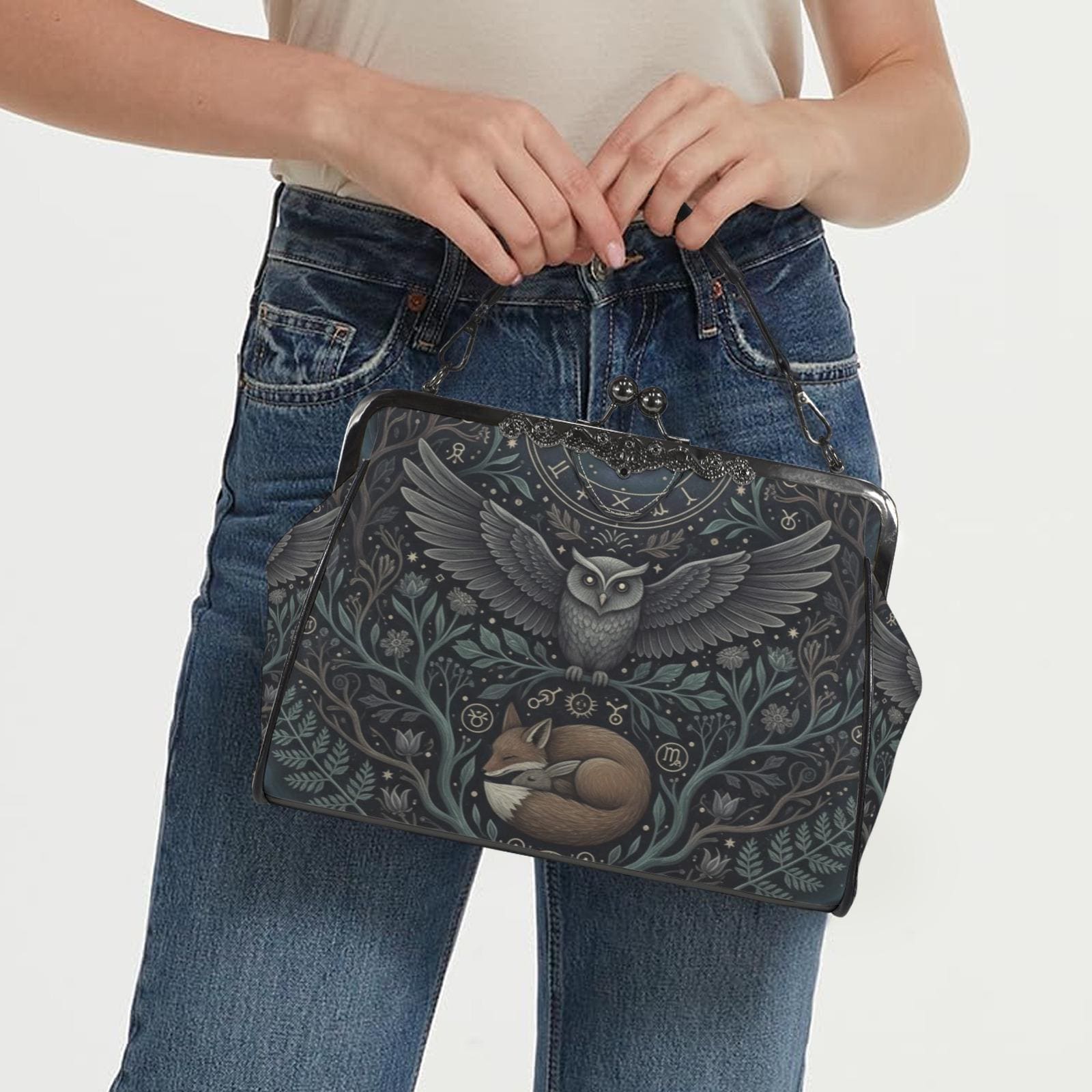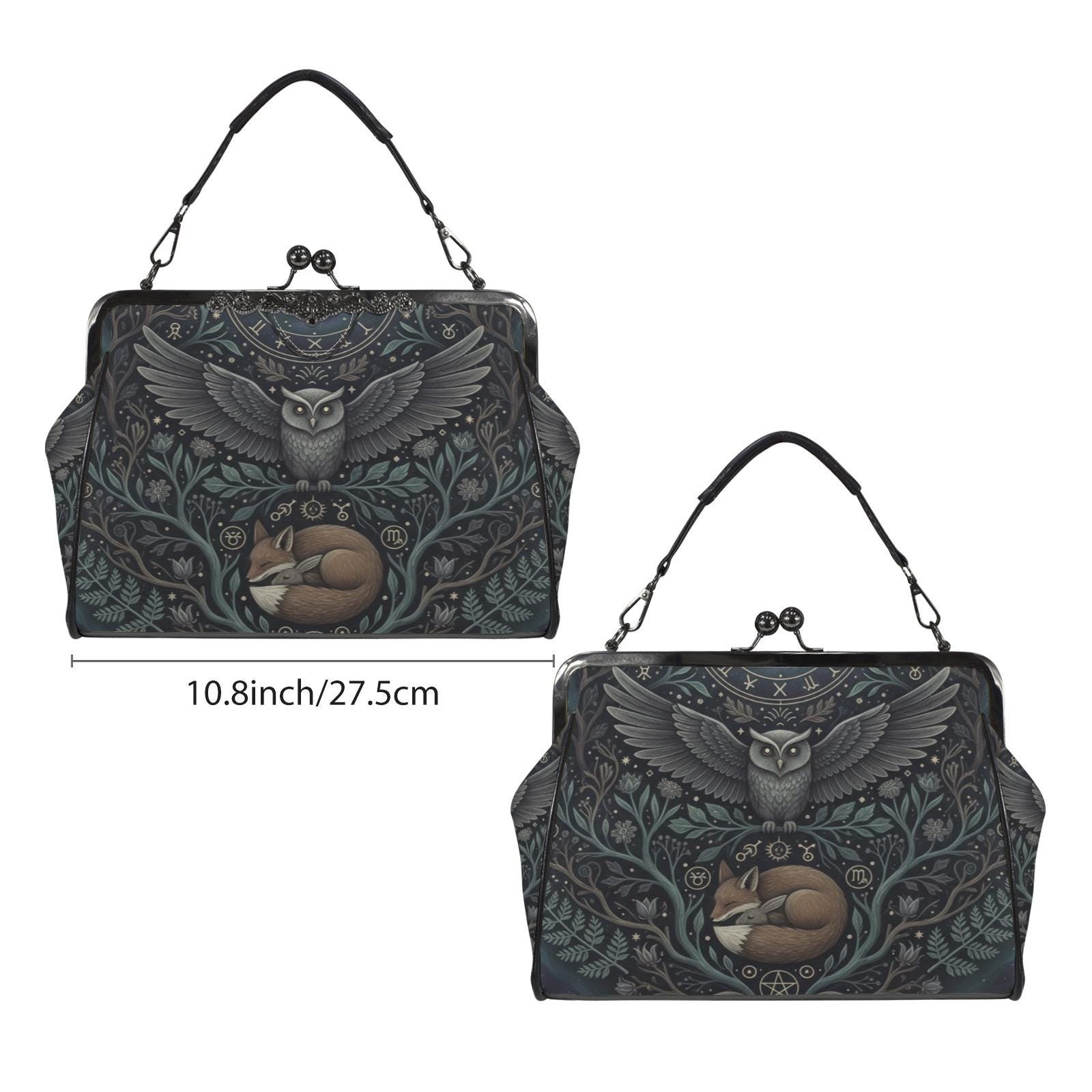 Magic Owl Fox Kisslock Bag, Mystical Forest Crossbody bag, Enchanted Fox Goblincore Handbag, Cottagecore Aesthetic Purse, Boho Gift Purse