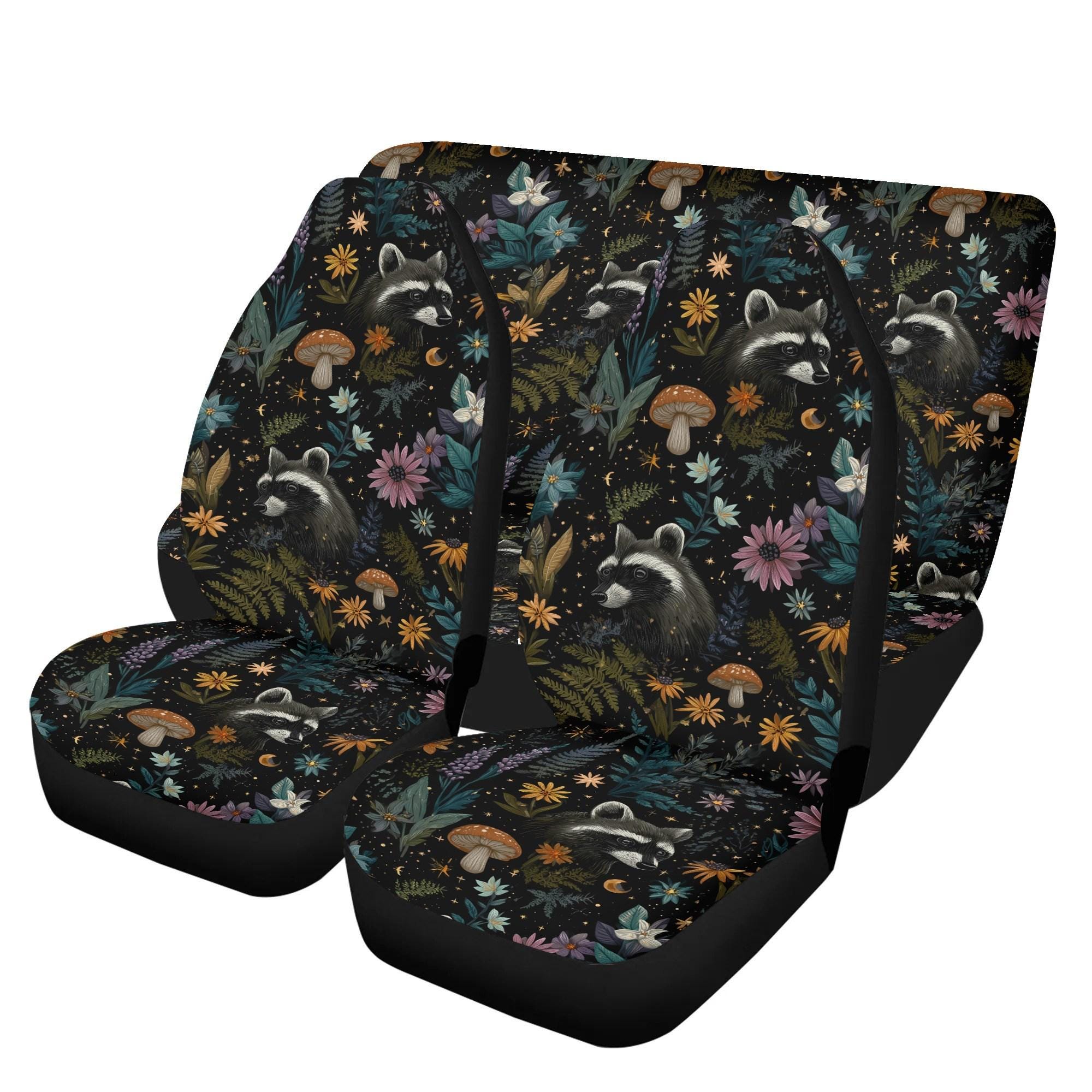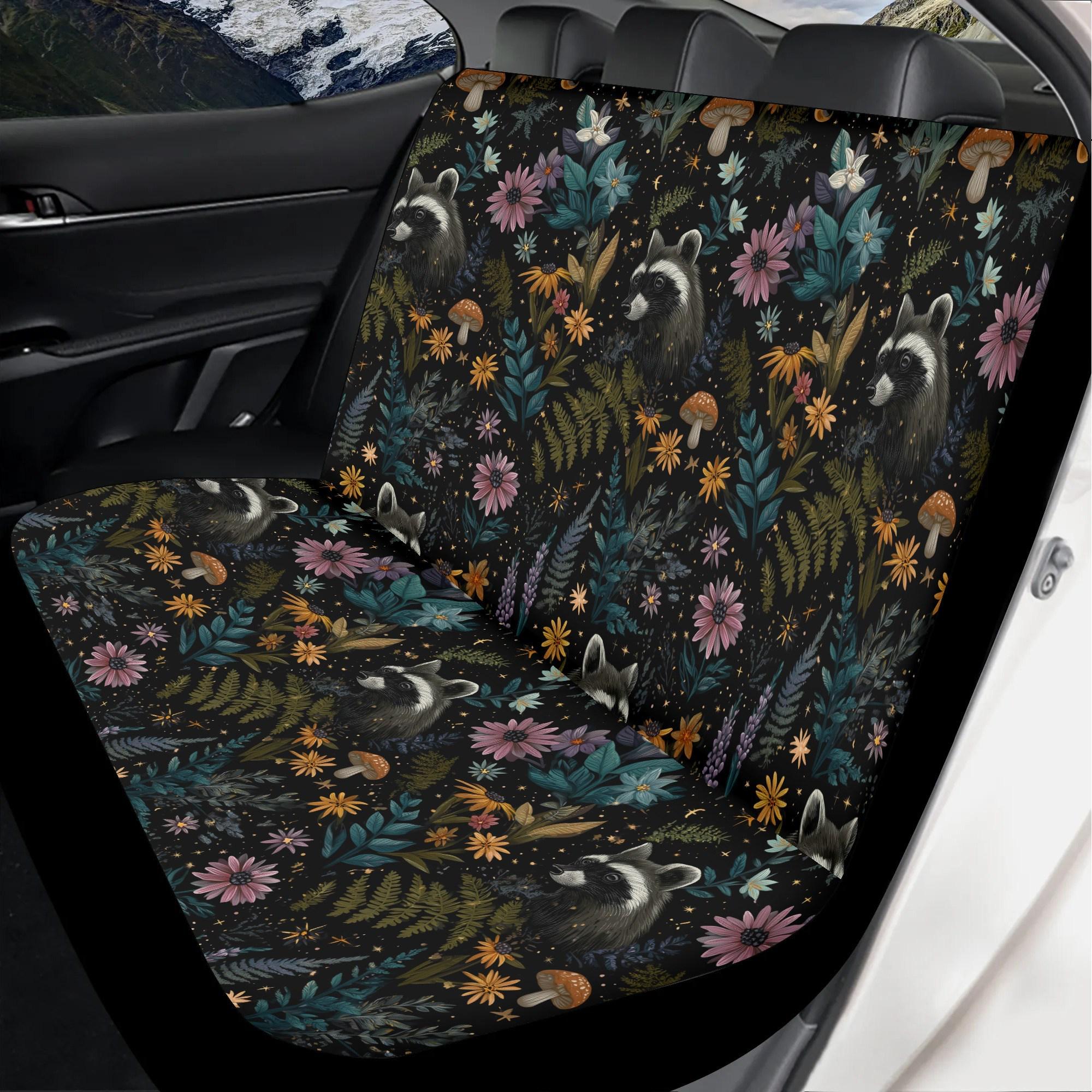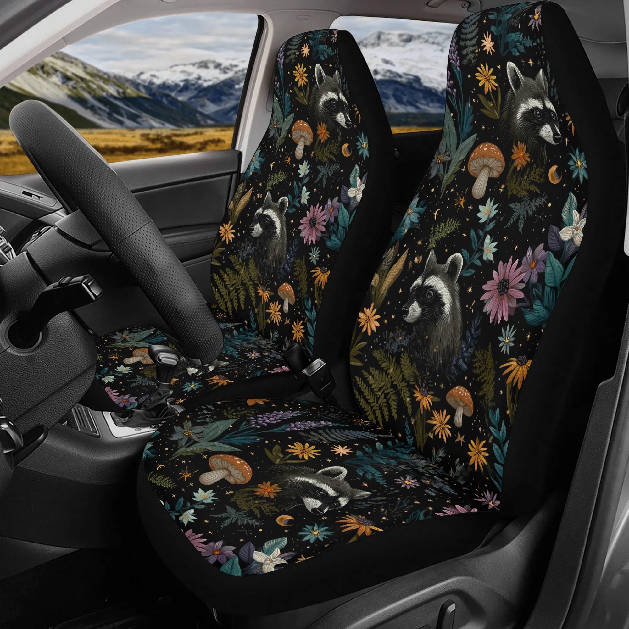 Witchy Raccoon Forest Car Seat Cover For Women, Cottagecore Witchy Ferns Front Bucket Seat Cover For Car Vehicle, Boho Mushroom seat cover