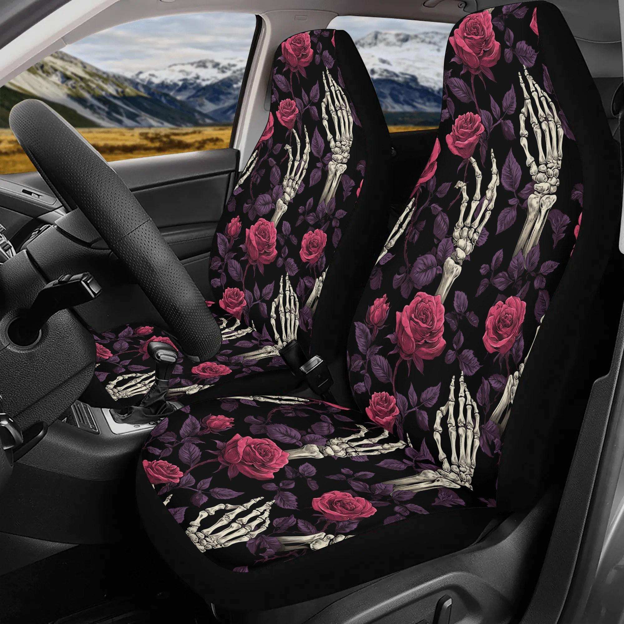 Skeleton Hands and Roses Boho Car Seat Cover For Women, Cottagecore Witchy Rose Front Bucket Seat Cover For Car Vehicle, Nature seat cover