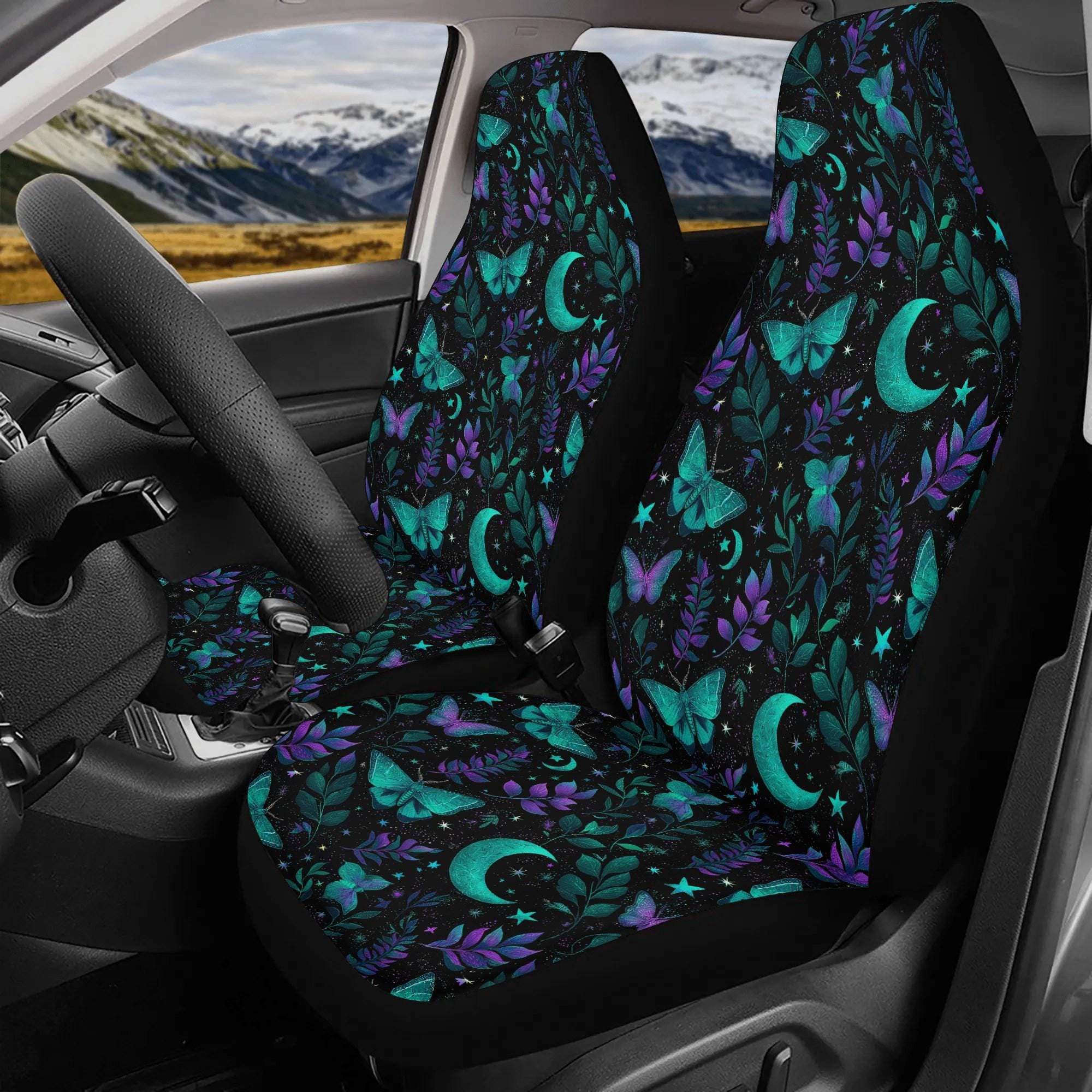 Witchy Moth Moon Celestial Car Seat Cover For Women, Cottagecore Witchy Fern Front Bucket Seat Cover For Car Vehicle, Goblincore seat cover