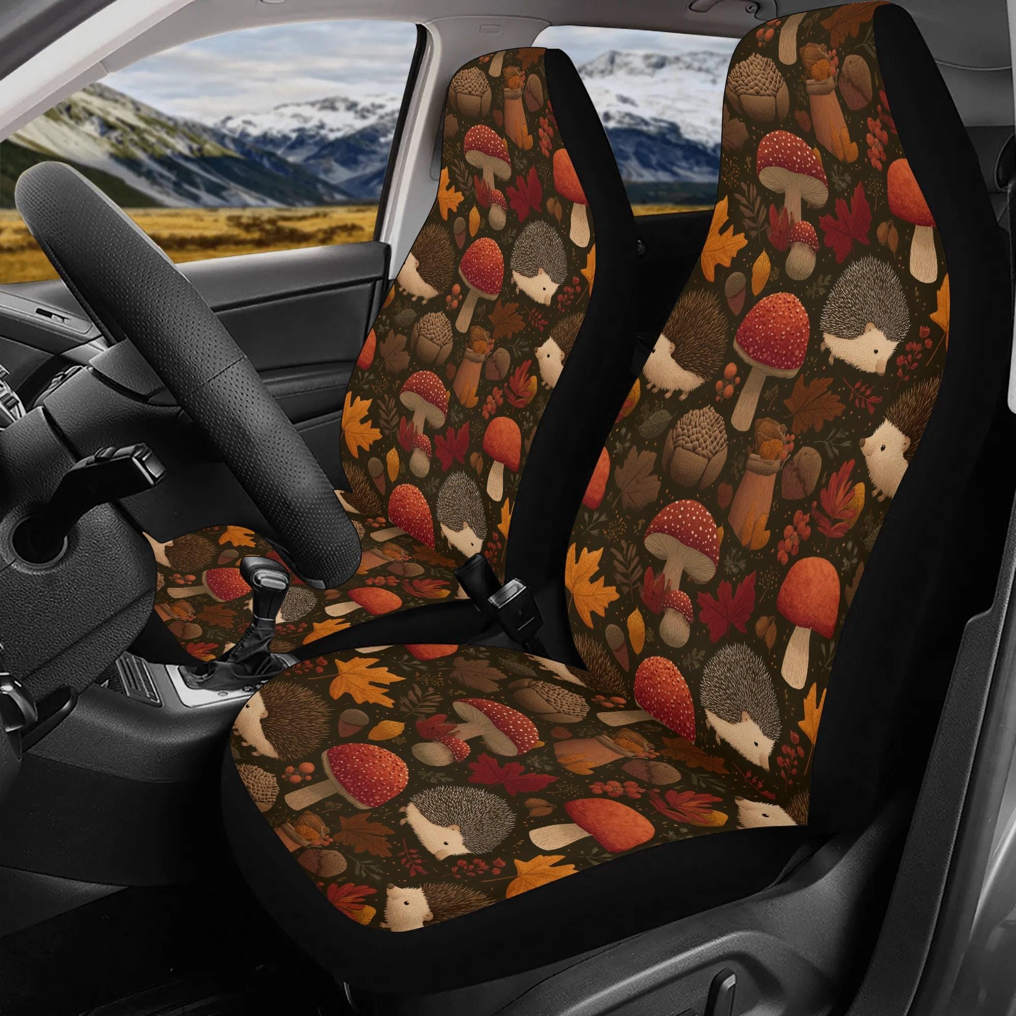 Hedgehog Autumn Leaves Car Seat Cover, Cute Seat Cover , Car Interior Decor, Mushroom Car Decor, Cute Car Accessories, Car Seat Cover Gift