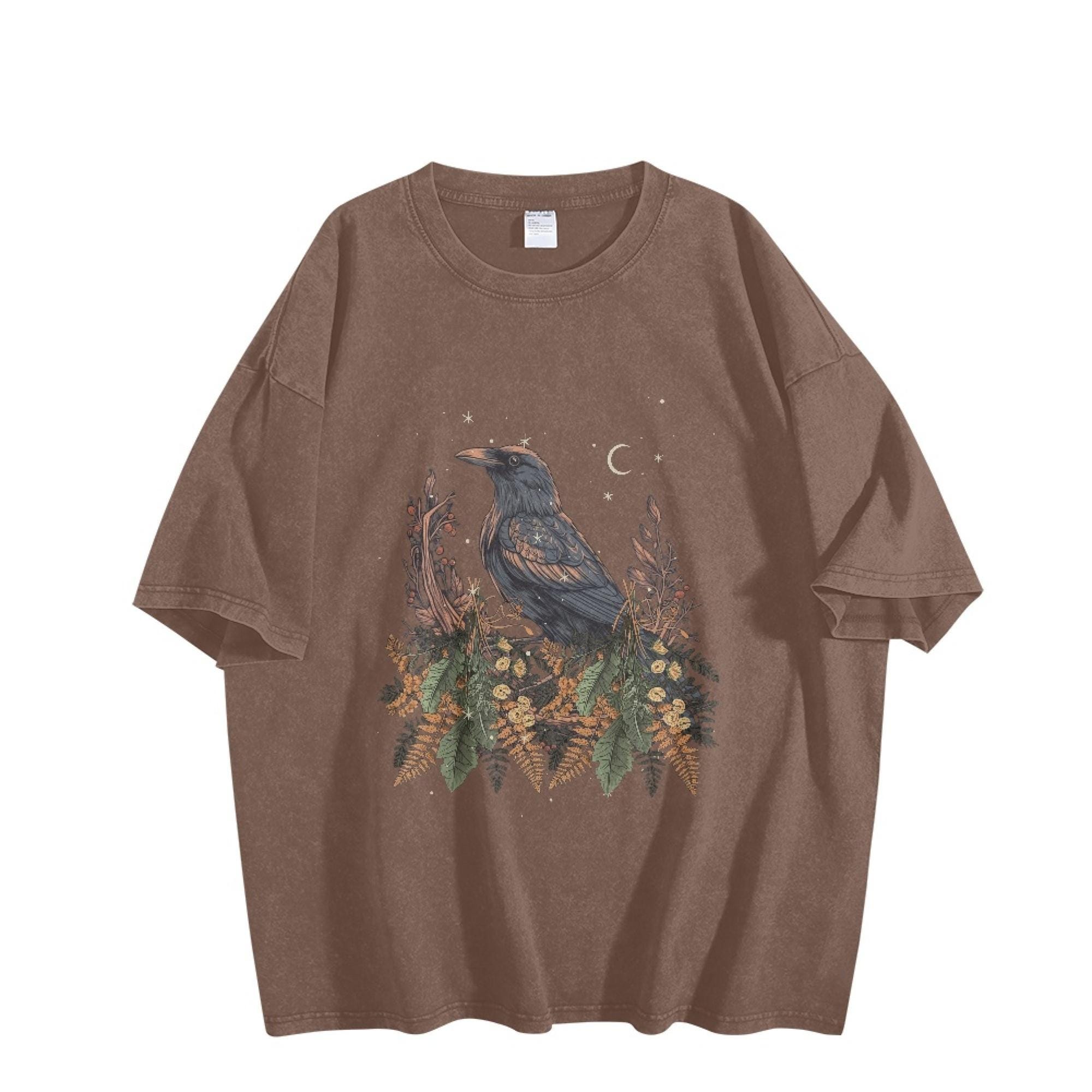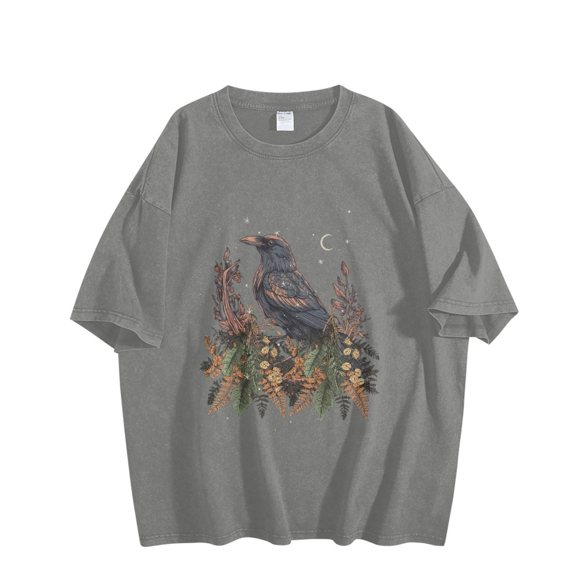 Made from 100% premium cotton (230g/m²), this heavyweight t-shirt is garment dyed for a soft, vintage feel and rich color depth. The crow graphic is DTG printed on the front, delivering crisp details and long-lasting color. Its oversized unisex fit makes it ideal for layering or relaxed everyday wear.