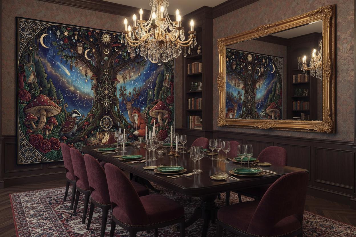This high-resolution art brings a captivating narrative to your home or office, perfect for lovers of vintage art, cottagecore aesthetics, and witchy decor. Elevate your space with this enchanting blend of nature, celestial wonder, and sophisticated design.