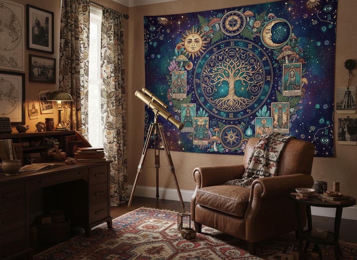 This tapestry is a versatile decor piece, ideal for hanging indoors in living rooms, bedrooms, or offices. It's also suitable for outdoor use as a unique backdrop, a beach towel, a picnic mat, or even a statement tablecloth.