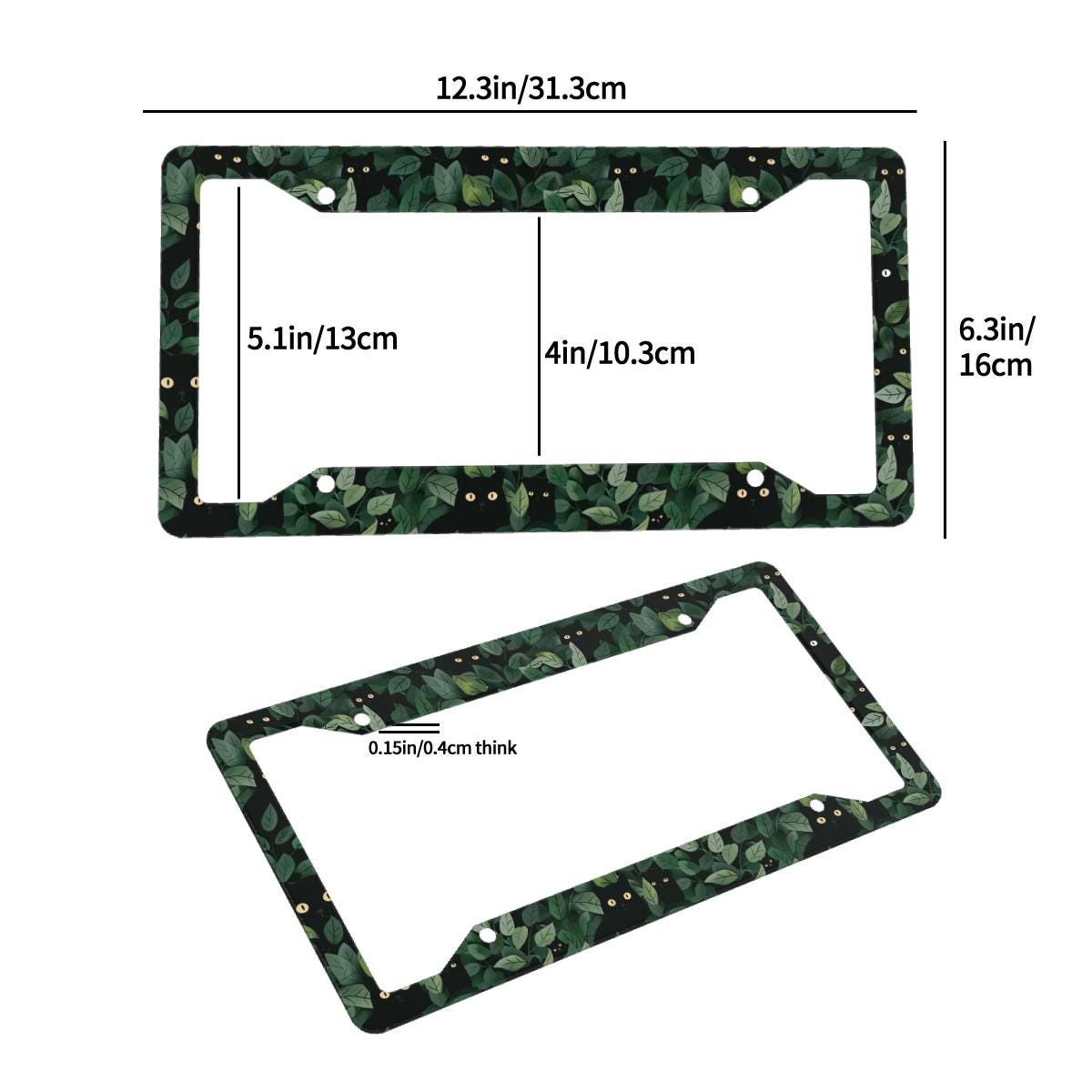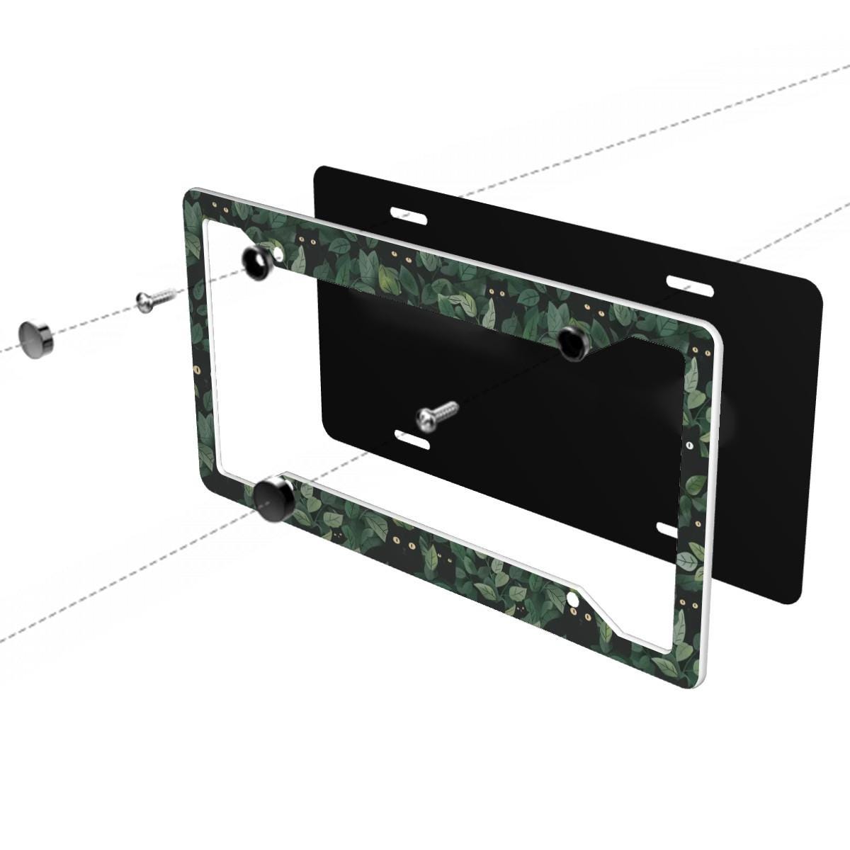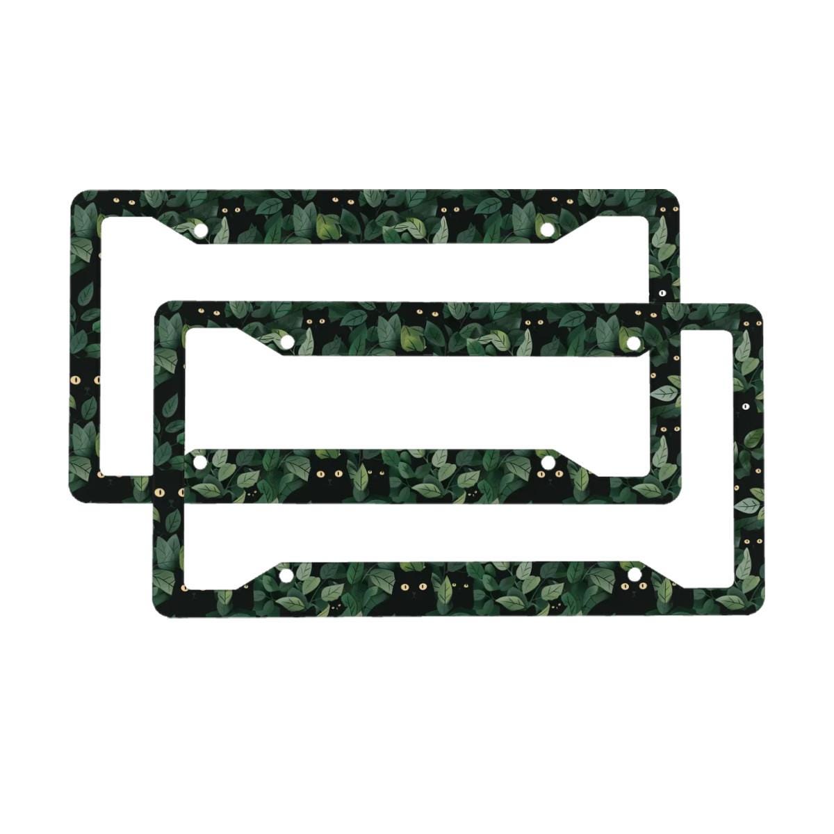Black Cat License Plate Frame, Hidden Kitten in Green Leaves Botanical Car Accessory, Cute Floral Auto Decor, Plant and Cat Lover Gift