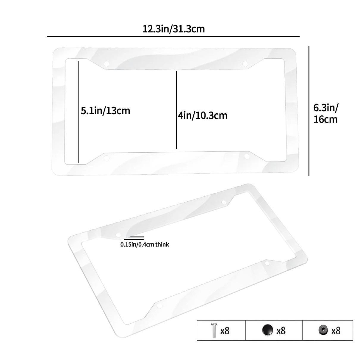 Upgrade your vehicle's aesthetic and protect your tags with our premium Custom Aluminum License Plate Frames. Whether you want to showcase your personality, promote a business, or add a sleek touch to your car's exterior, these frames are the perfect canvas. Made from high-quality, durable aluminum and featuring vibrant UV printing, they are designed to withstand the elements while keeping your car looking sharp.