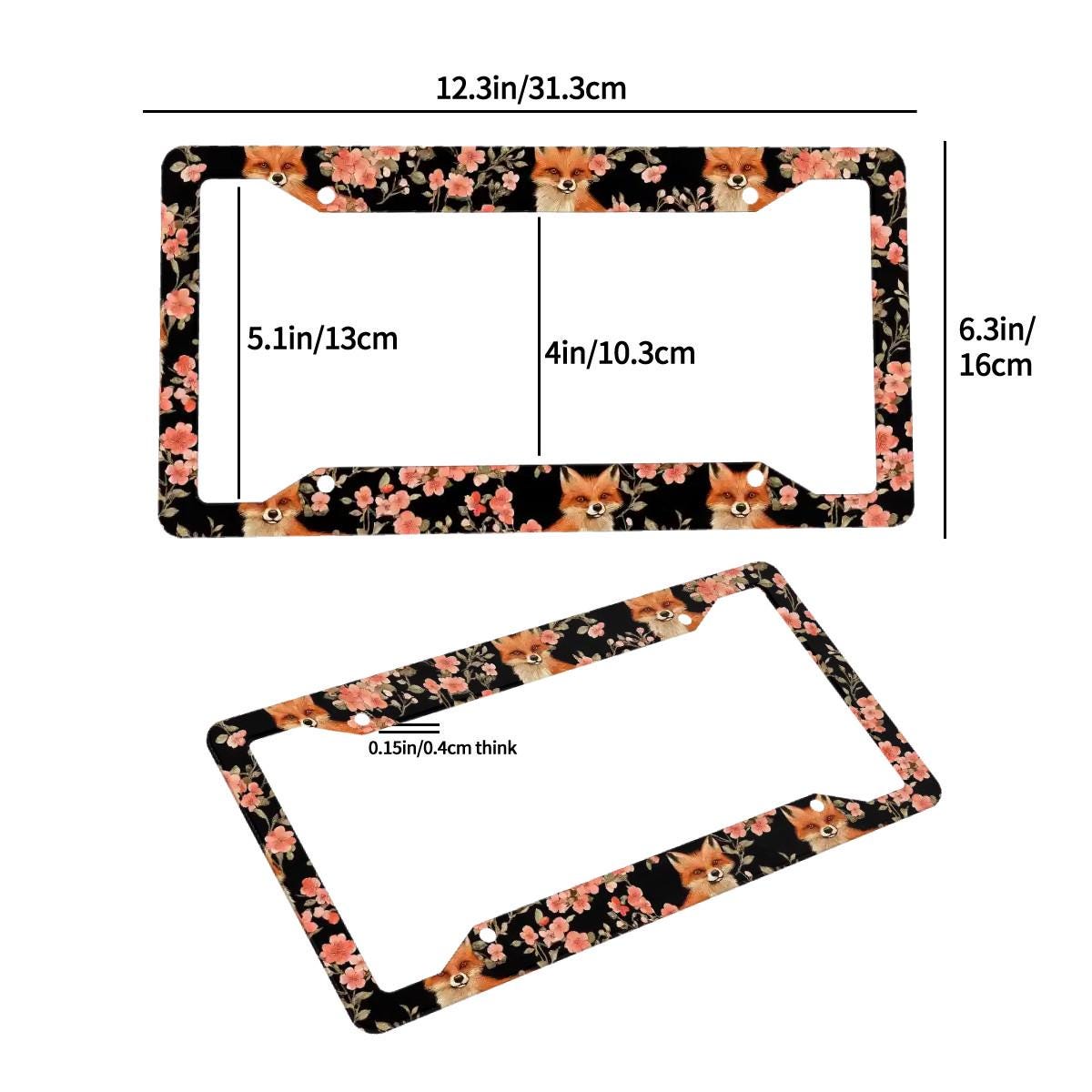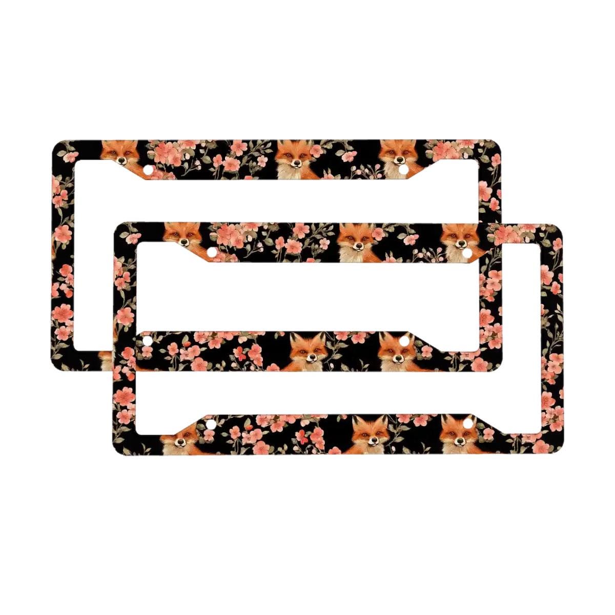Cottagecore Fox and Cherry Blossom License Plate Frame, Boho Nature Car Decor, Aluminum Plate Cover, Nature Number Plate frame, Car exterior