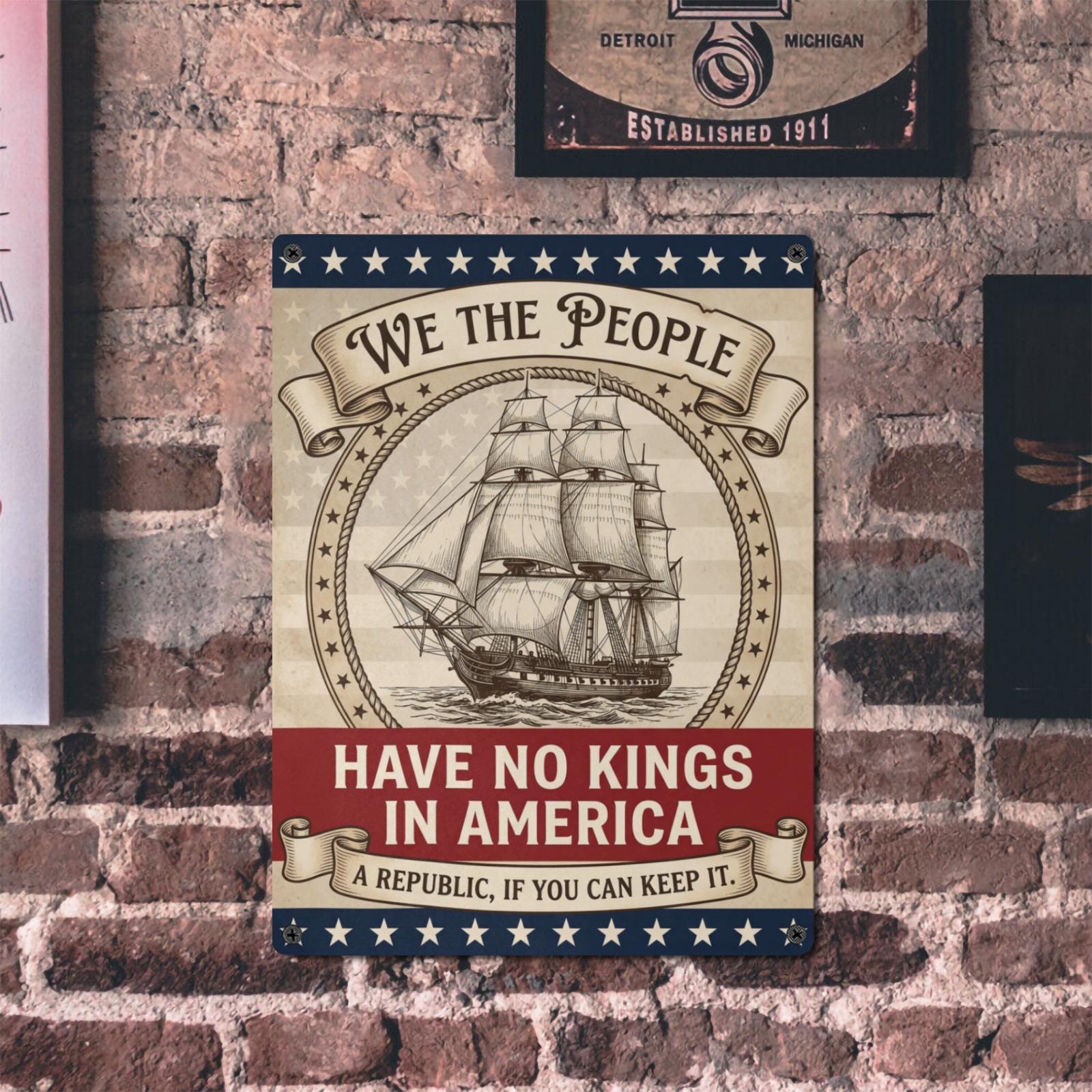 USA Semiquincentennial Sign, We The People Have No Kings in America Metal Sign, Patriotic Wall Decor, Unique Metal Sign, Vintage Metal Sign