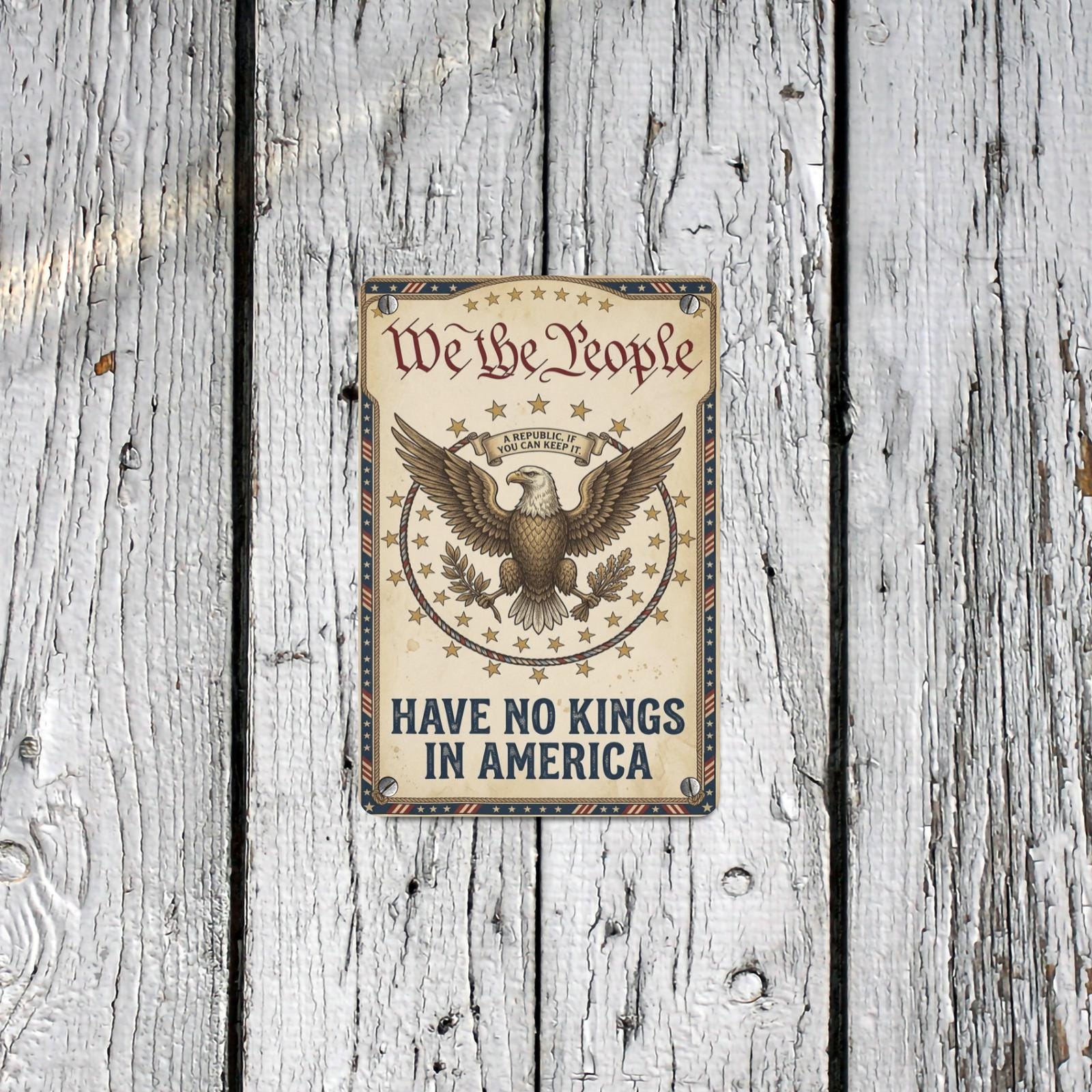 USA Semiquincentennial Sign, We The People Have No Kings in America Metal Sign, Patriotic Wall Decor, Unique Metal Sign, Vintage Metal Sign