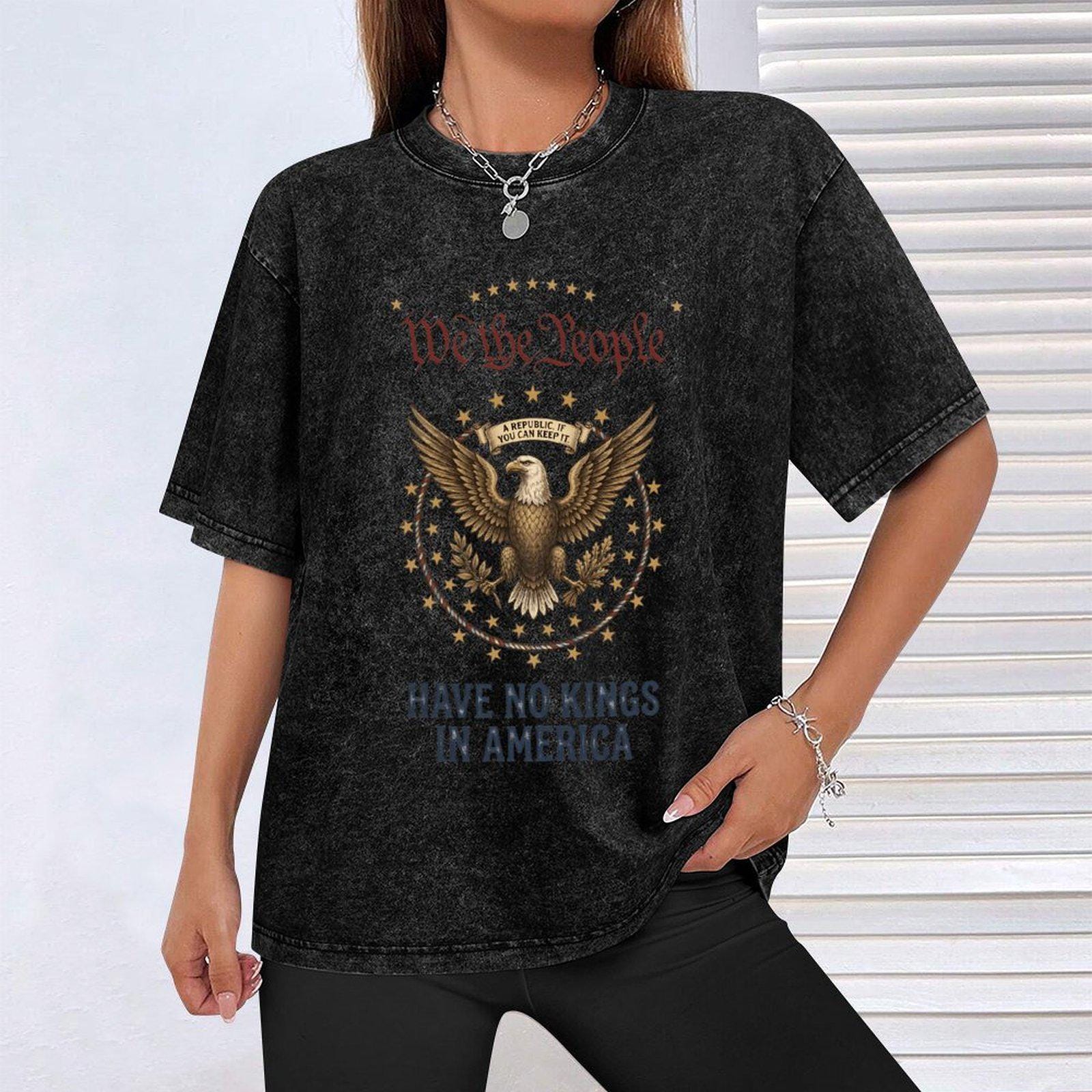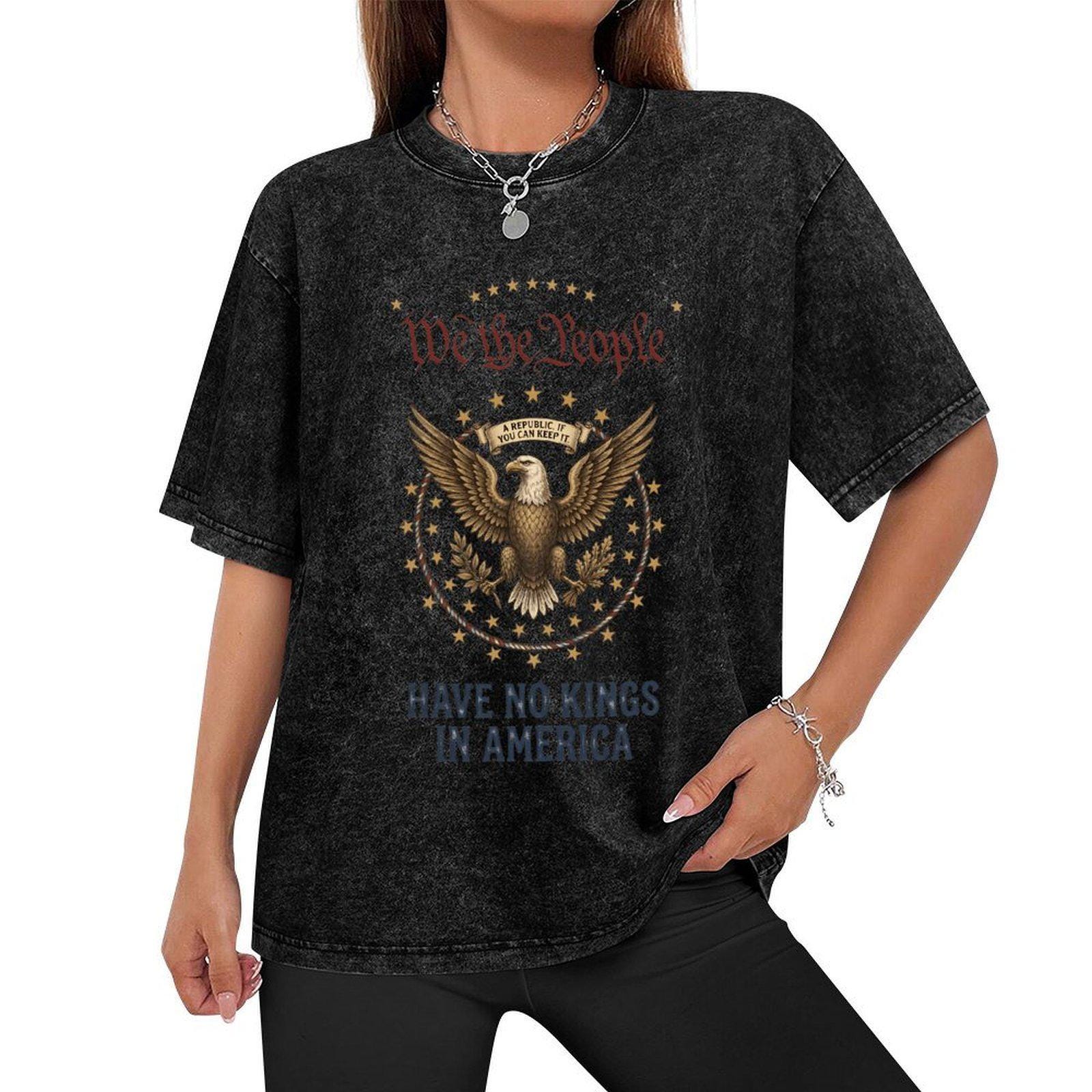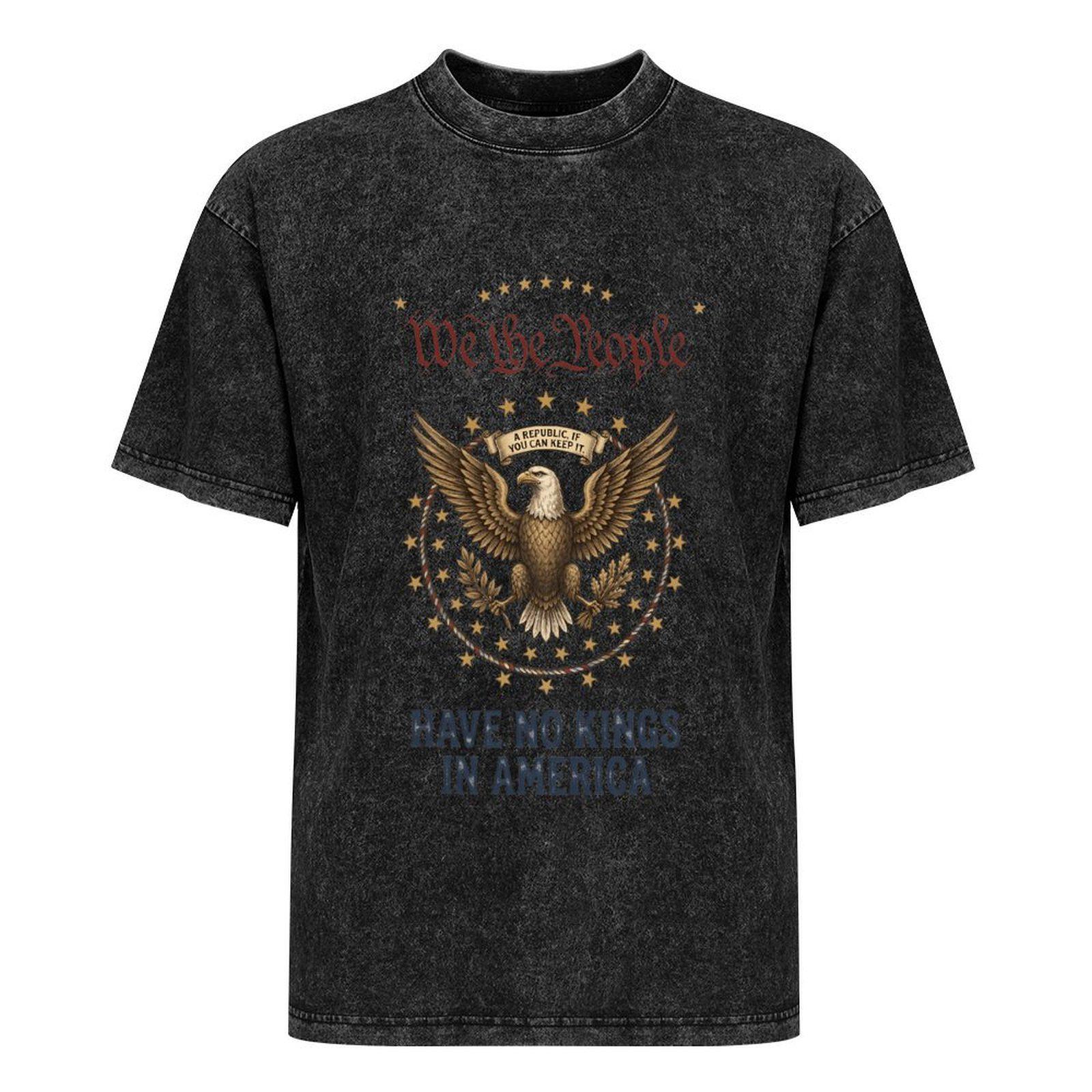 Celebrate American heritage and constitutional values with our "We The People" Graphic T-shirt. Featuring a striking American Bald Eagle and the powerful reminder that we "Have No Kings in America," this shirt is designed for those who value liberty, history, and high-quality style.