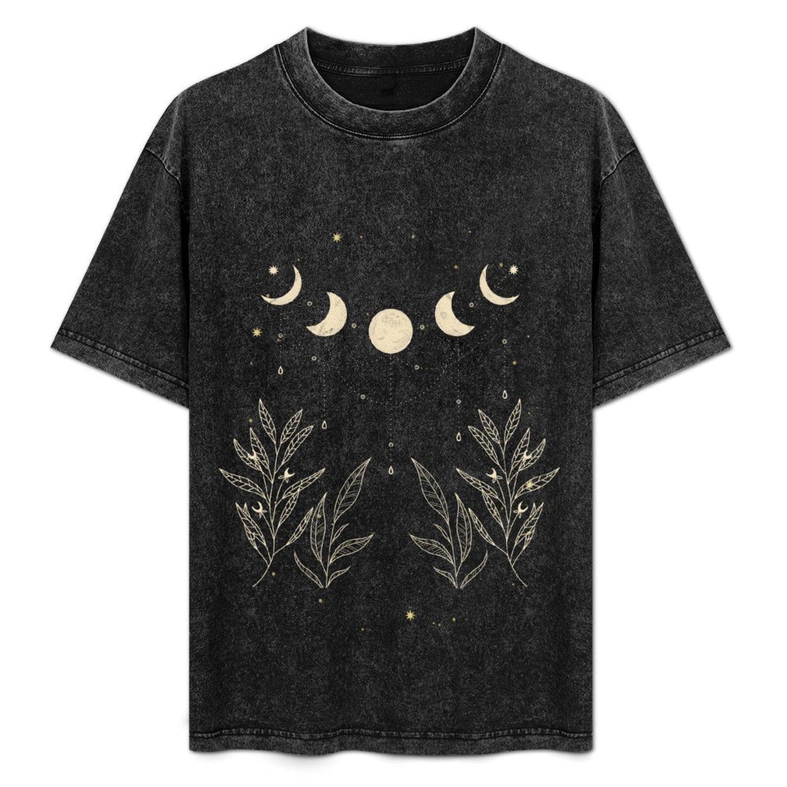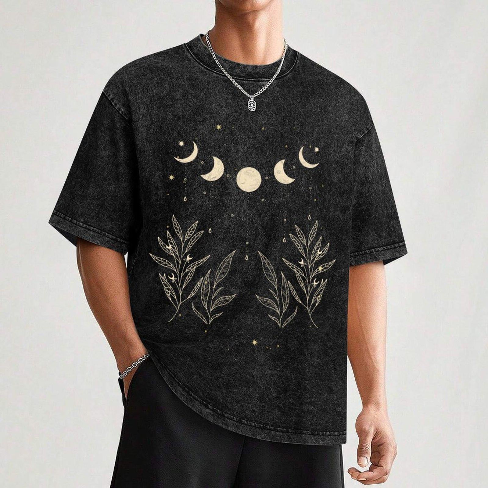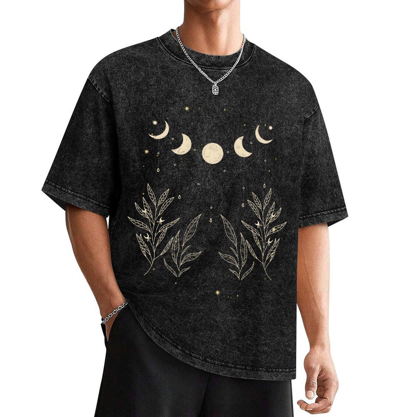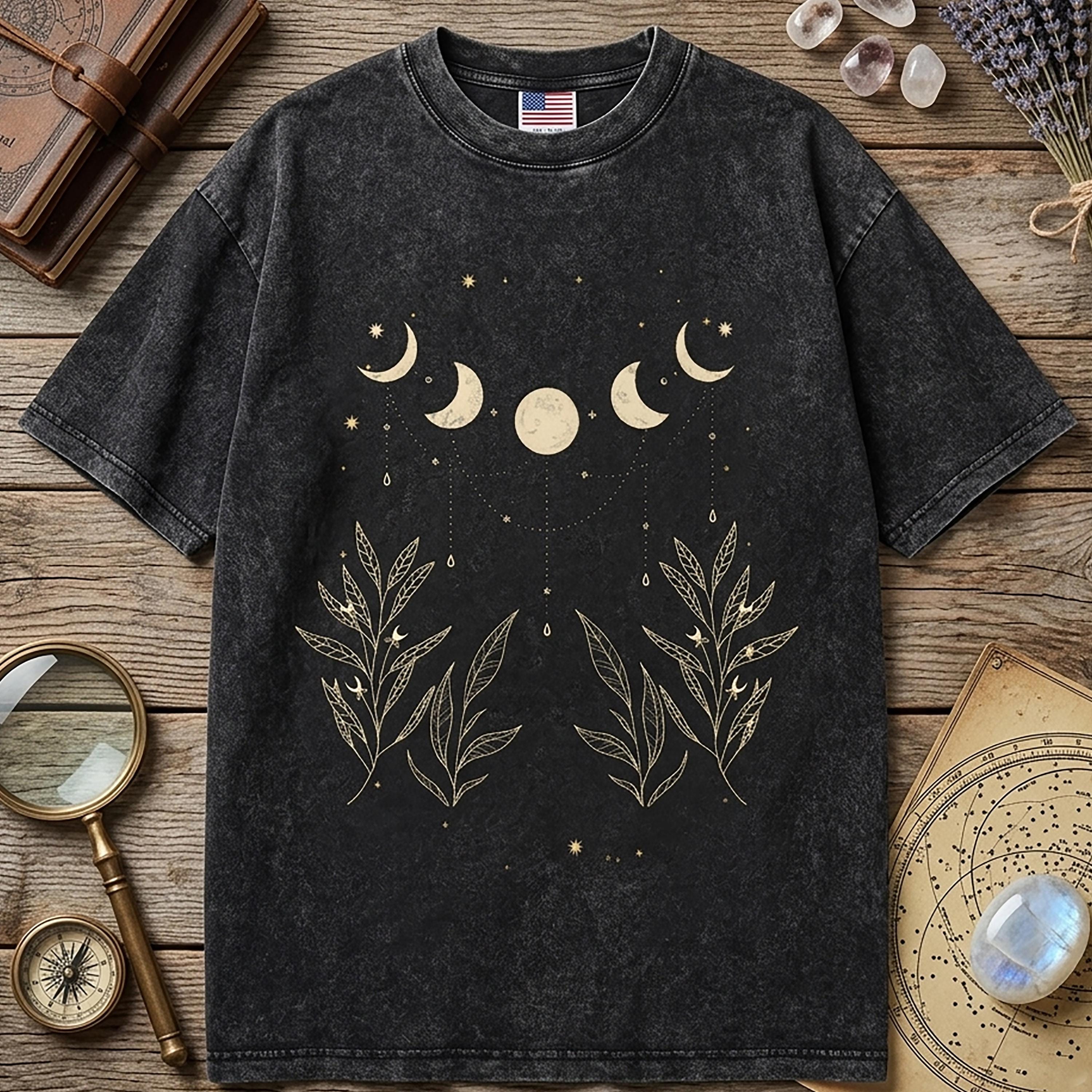 Celestial Moon Phase Shirt, Boho Botanical Graphic Tee, Witchy Moon and Leaves T-shirt, Dark Academia Clothing, 100% Cotton Oversized Top